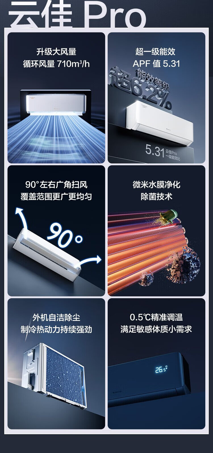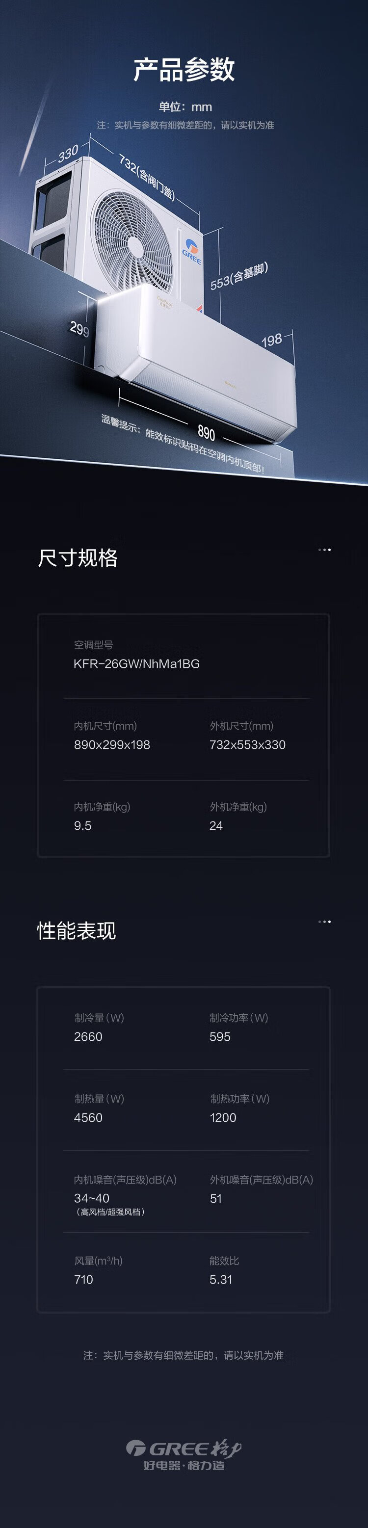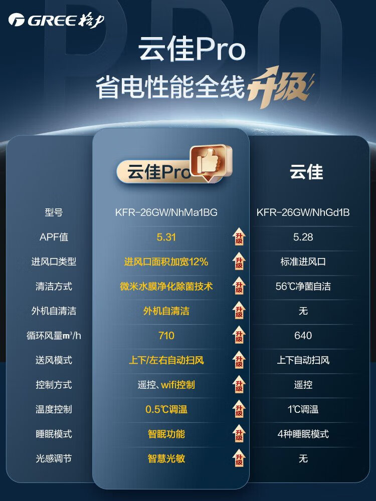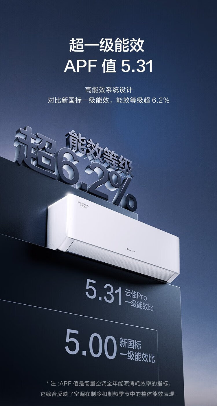 Gree air conditioner Big 1 Yunjia pro new level of energy efficiency Frequency conversion wall-mounted bedroom unit New product upgrade Energy-saving air conditioner KFR-26GW/NhMa1BG National subsidy