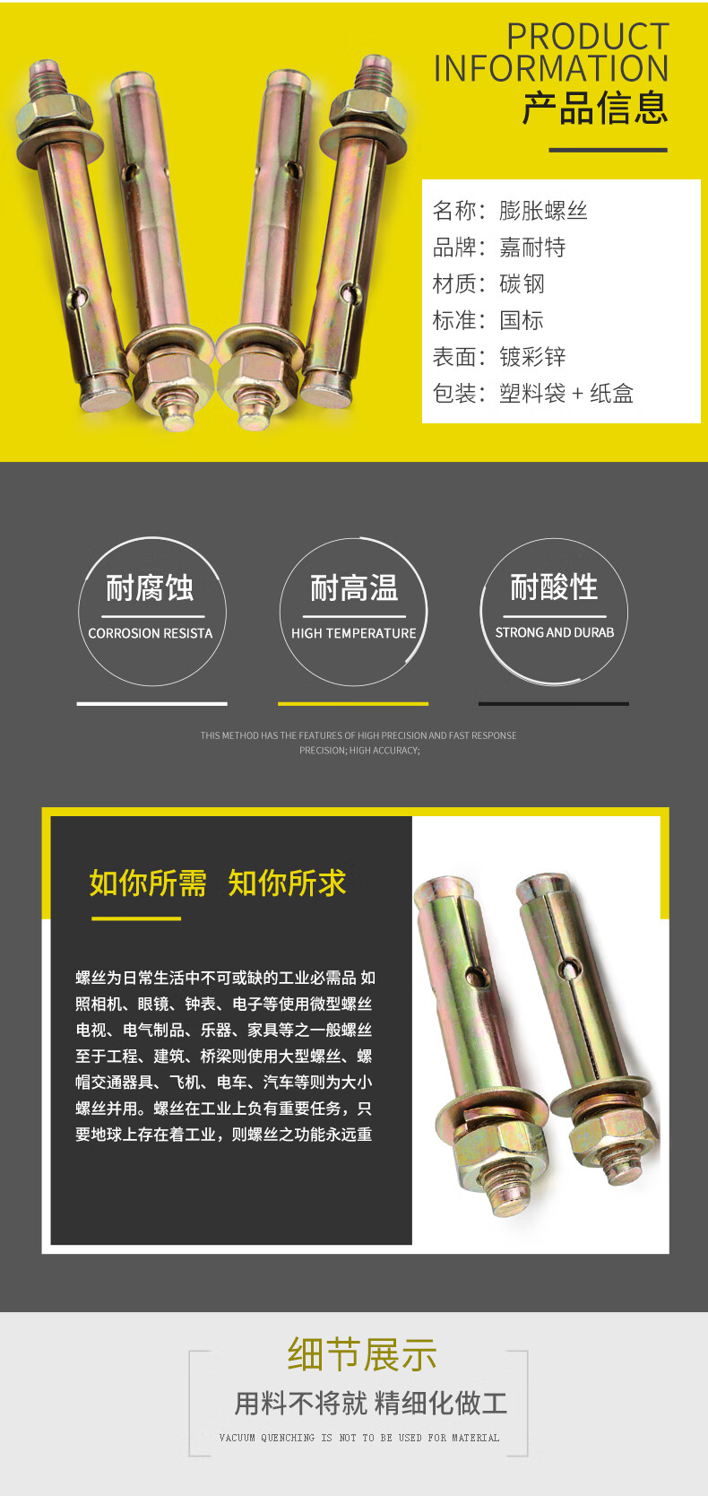National standard M6 expansion screw M8 explosion bolt M10 external expansion screw M12 explosion bolt M14M16 iron color zinc M8*80 (Quantity 5)