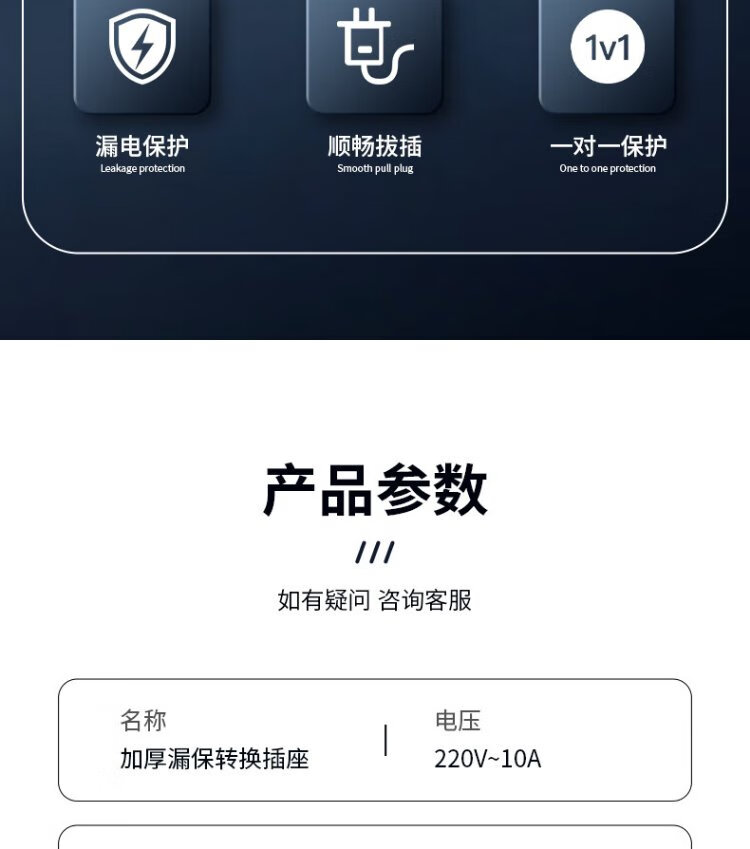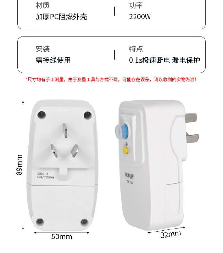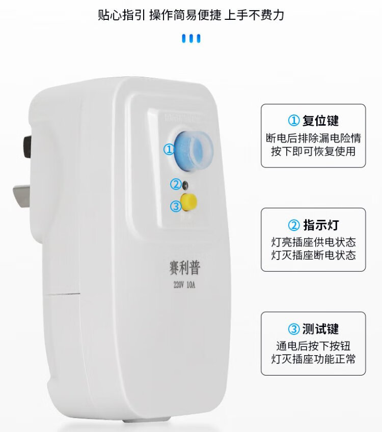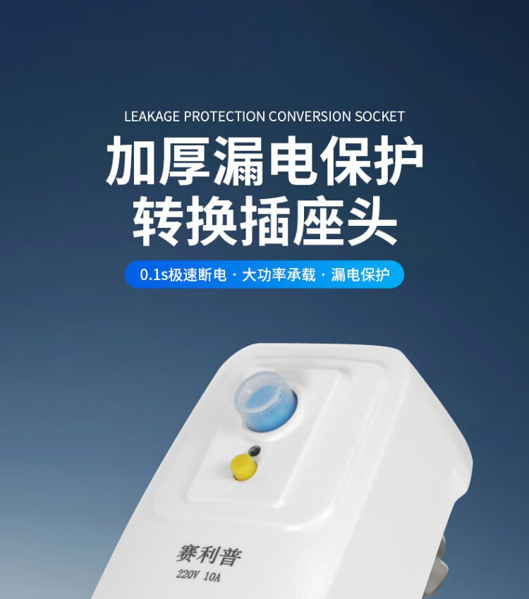 SAILiPU leakage protection plug, electric water heater anti-shock protector, conversion anti-leakage conversion socket thickened plug, 10A wiring type, power 2200W