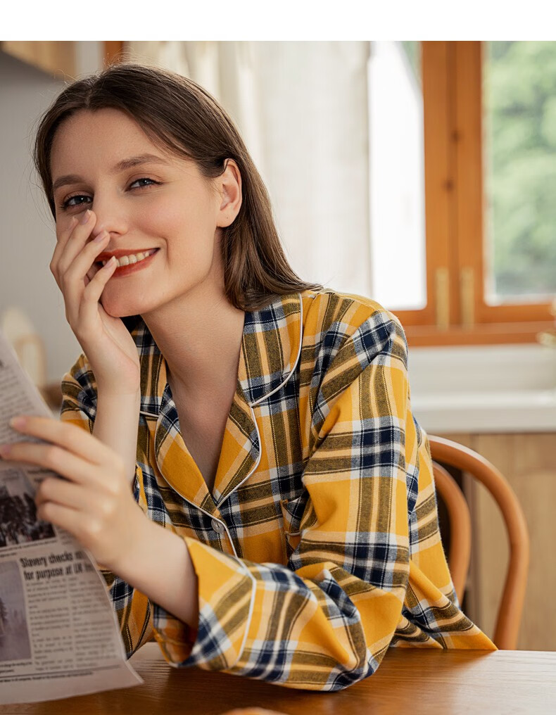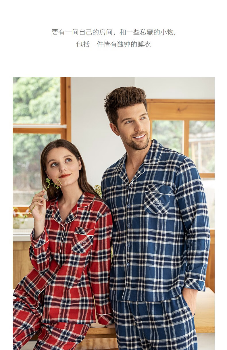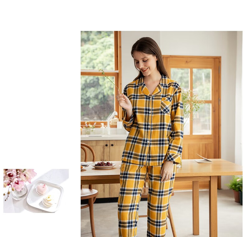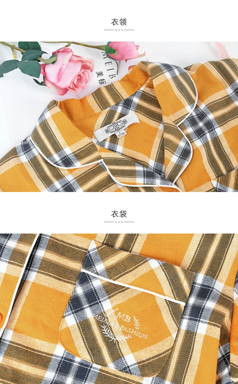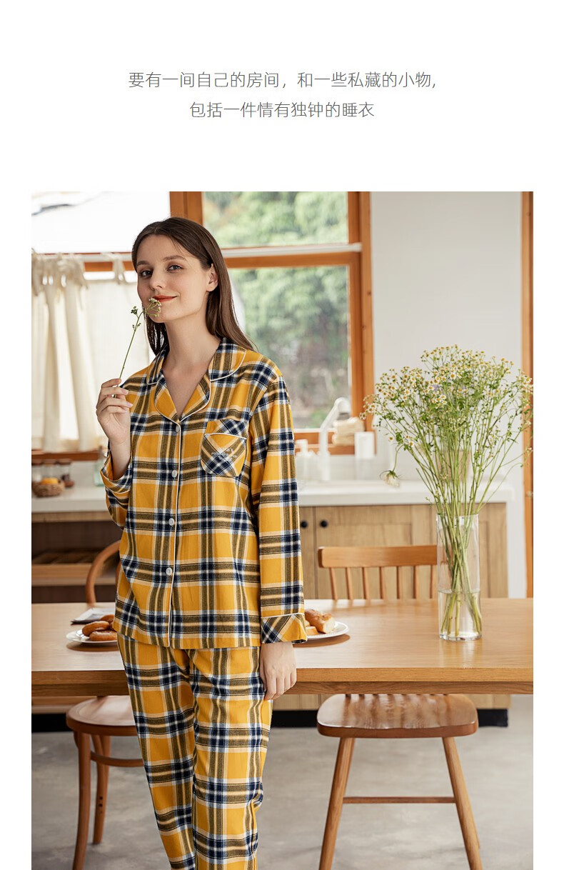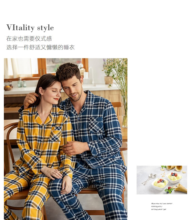 American Standard Cotton Pajamas Men's Autumn Woven Cotton Brushed Couple's 100% Cotton Long Sleeve Women's Home Clothes Yellow XL
