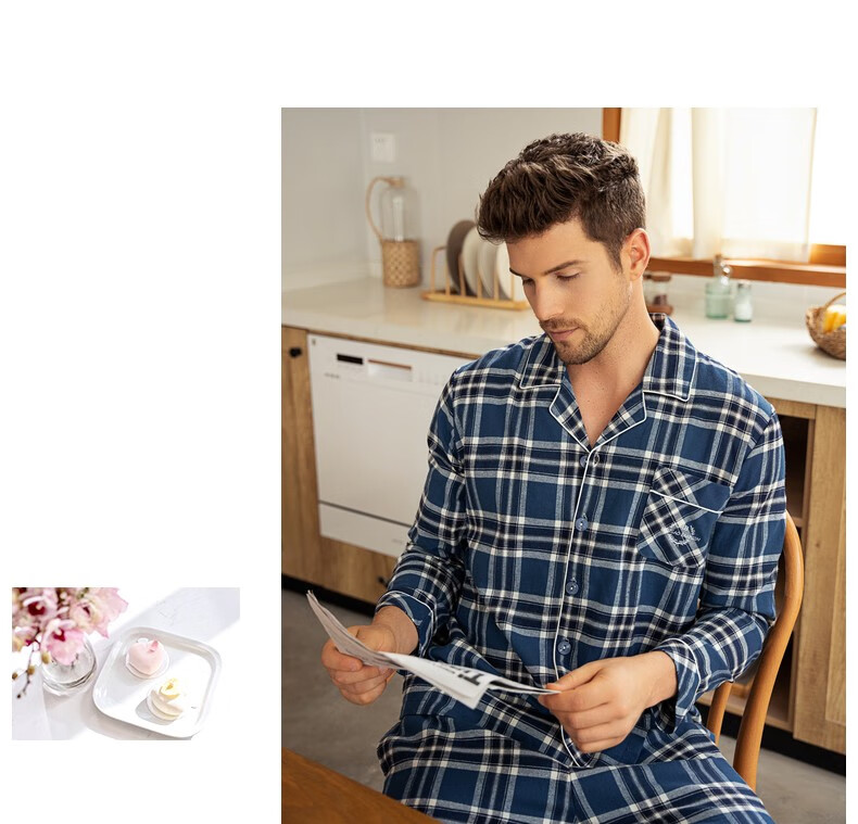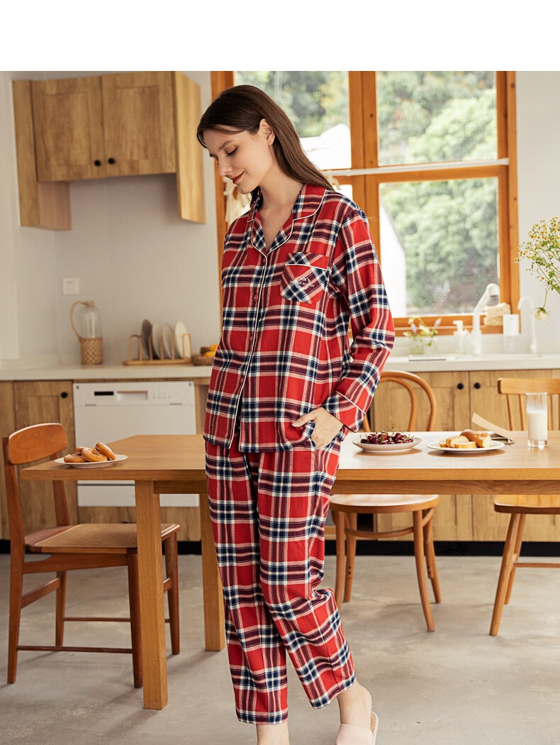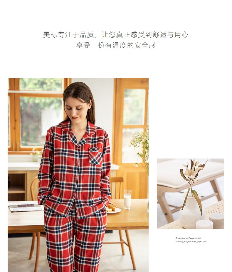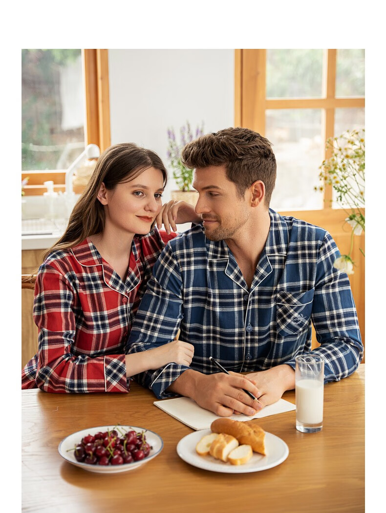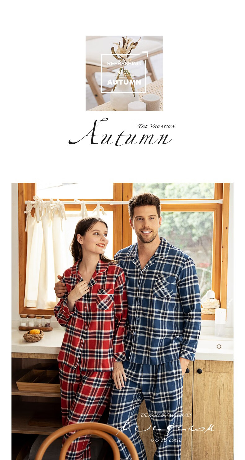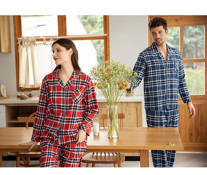 American Standard Cotton Pajamas Men's Autumn Woven Cotton Brushed Couple's 100% Cotton Long Sleeve Women's Home Clothes Yellow XL