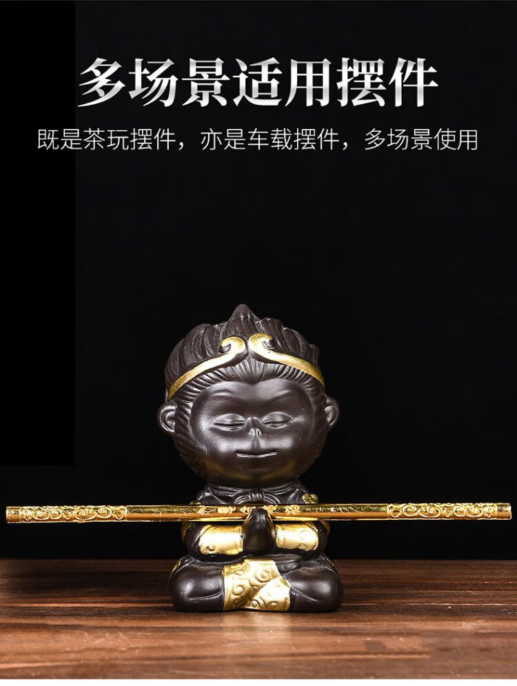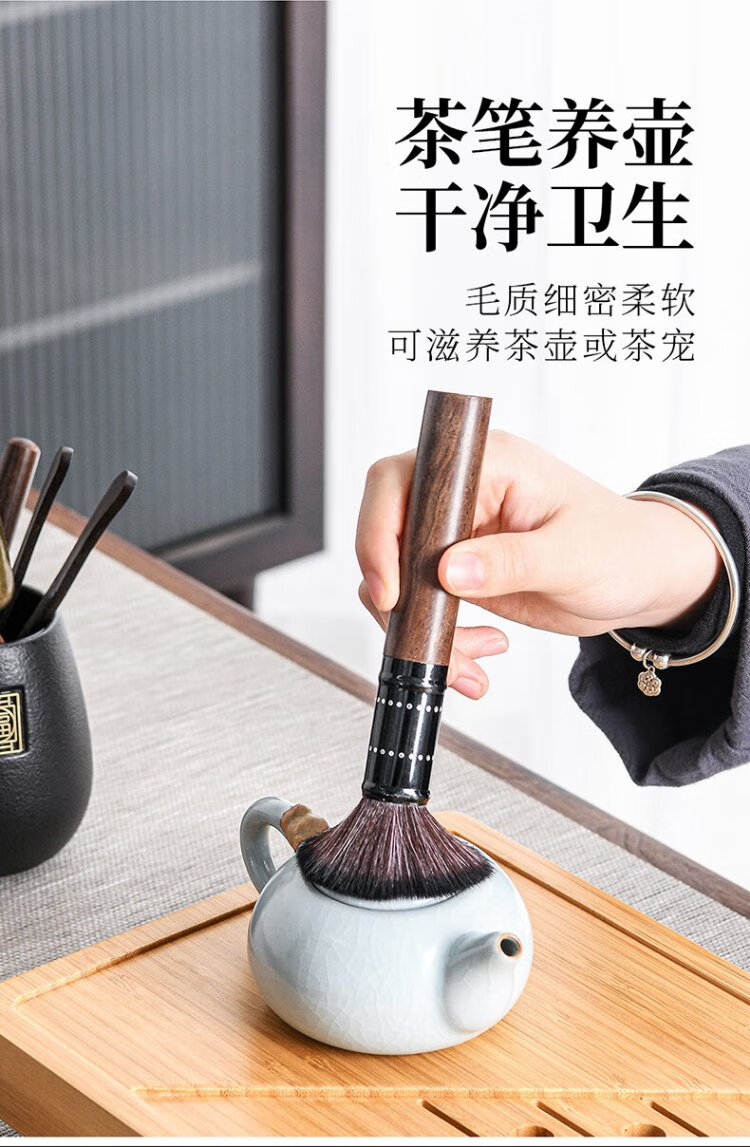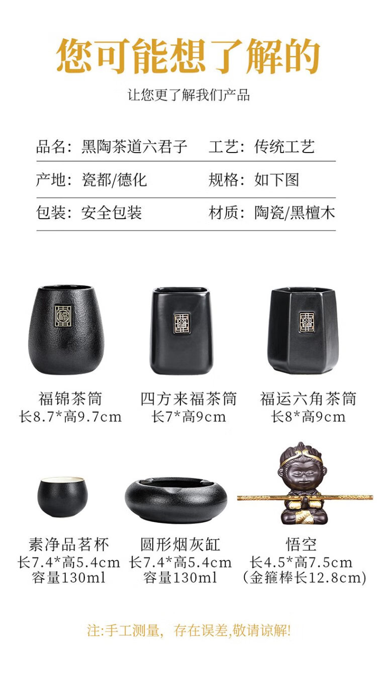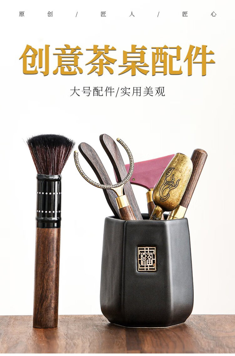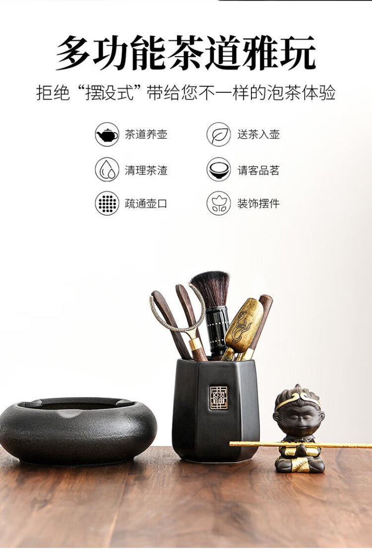 Puqi Black Pottery Sifang Laifu Tea Ceremony Six Gentlemen Round Ashtray Wukong Tea Pet Three-piece Set Tea Clamp Tea Spoon Pot Keeping Pen
