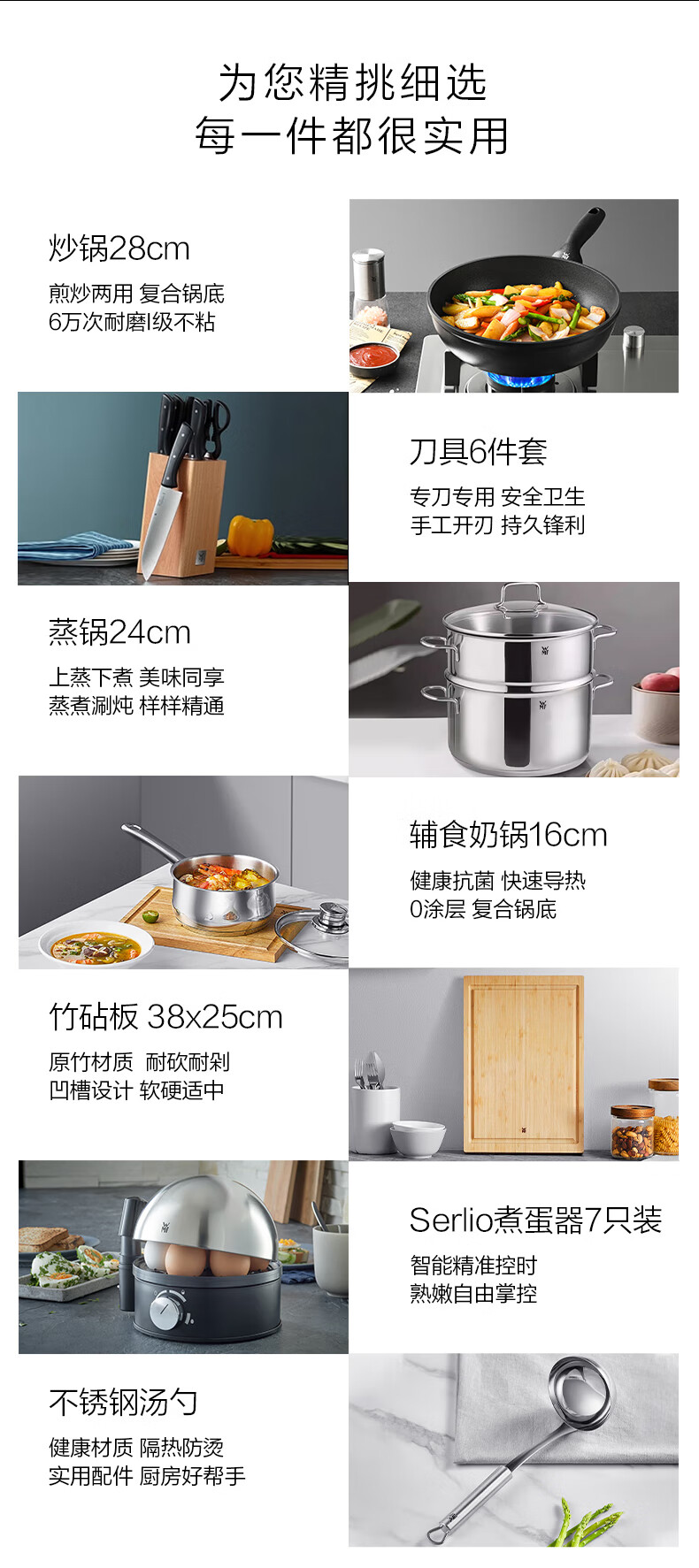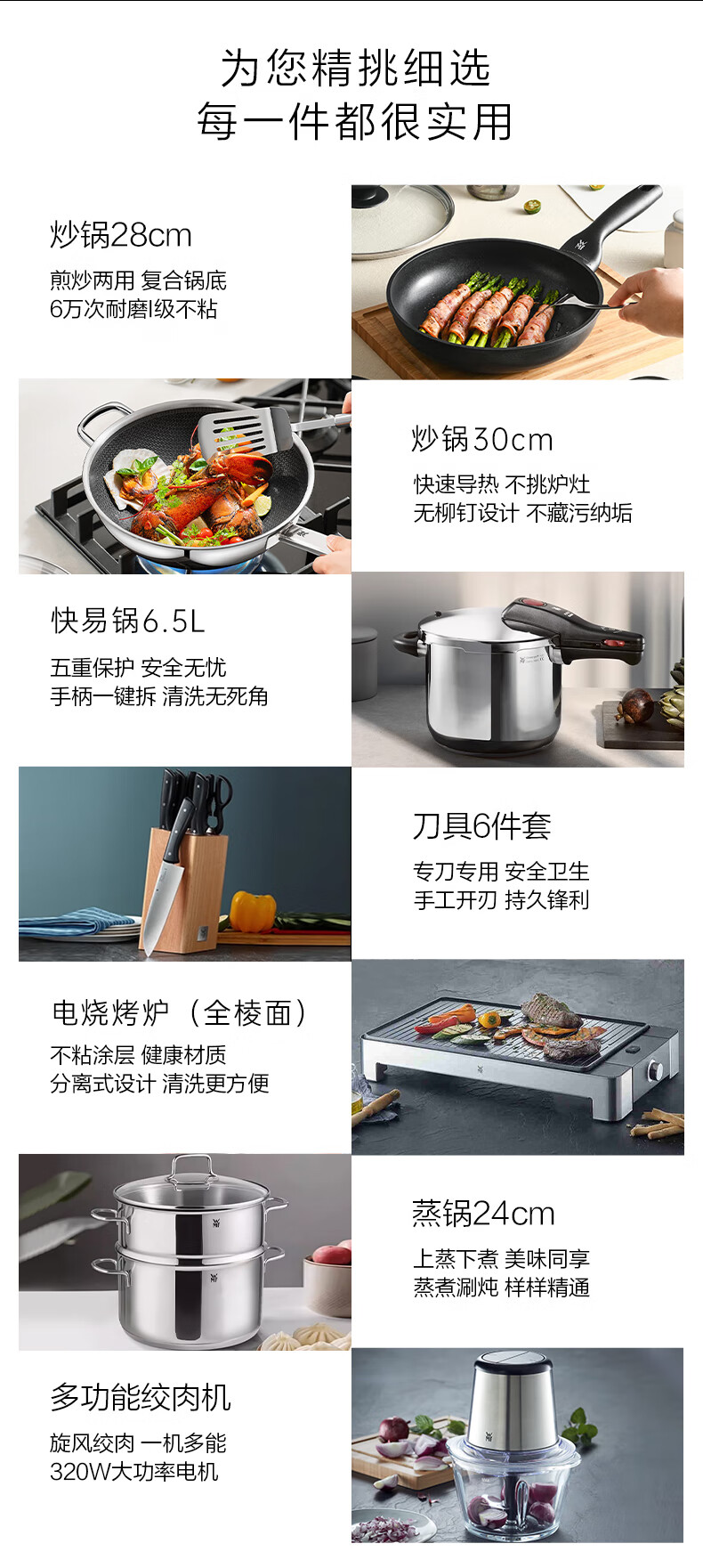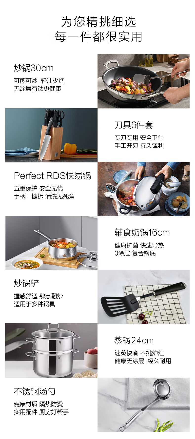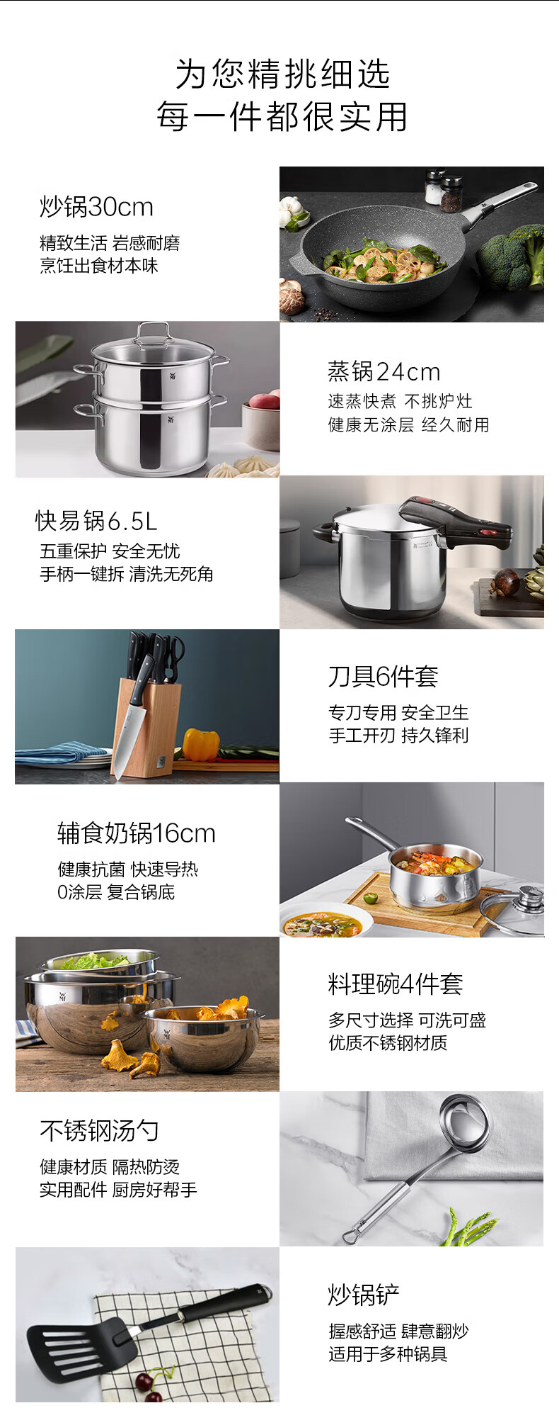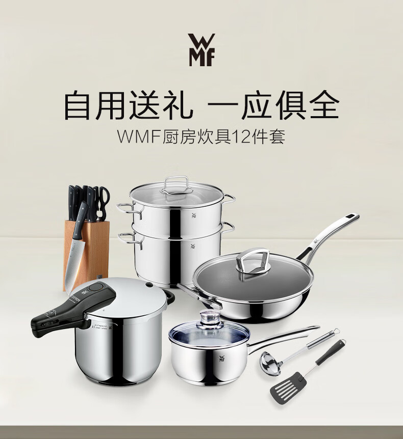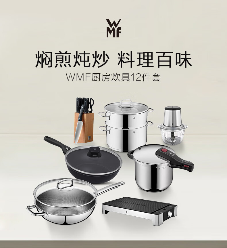WMF Futenbao pot set honeycomb wok non-stick frying pan steamer knife set pressure cooker soup pot pressure cooker titanium wok 12-piece set 30cm wok