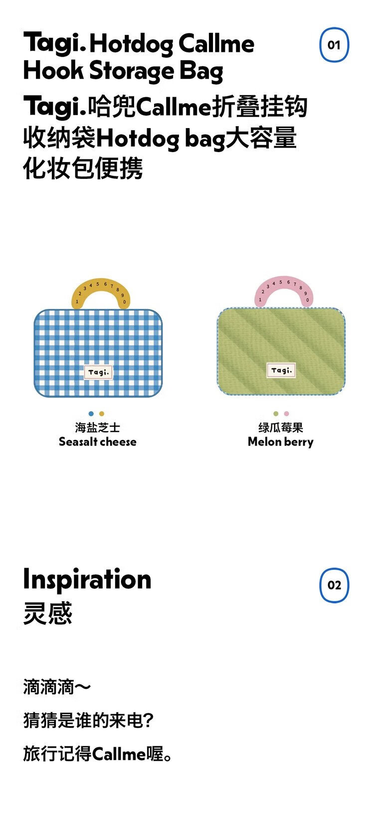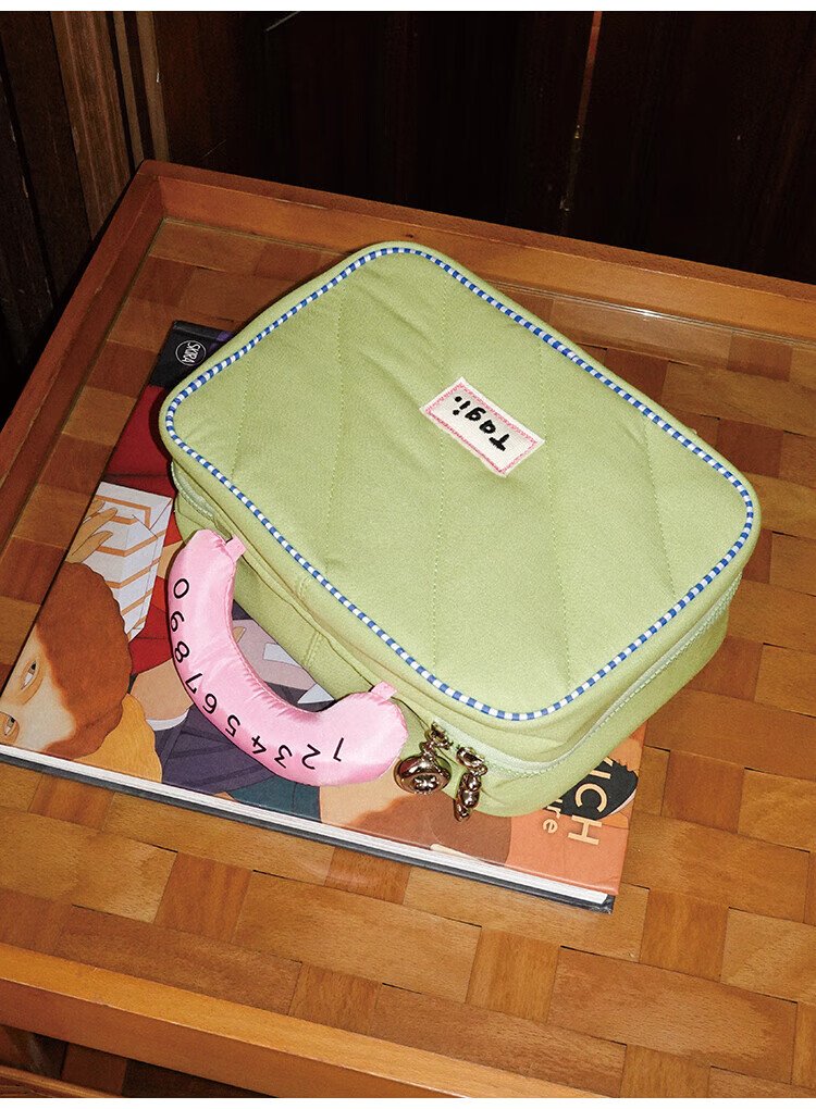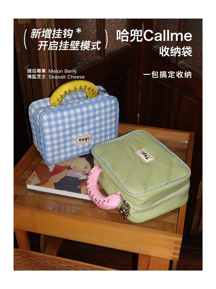 Tagi. Hadou Callme storage bag hotdog double zipper cosmetic bag travel bag storage bag - sea salt cheese