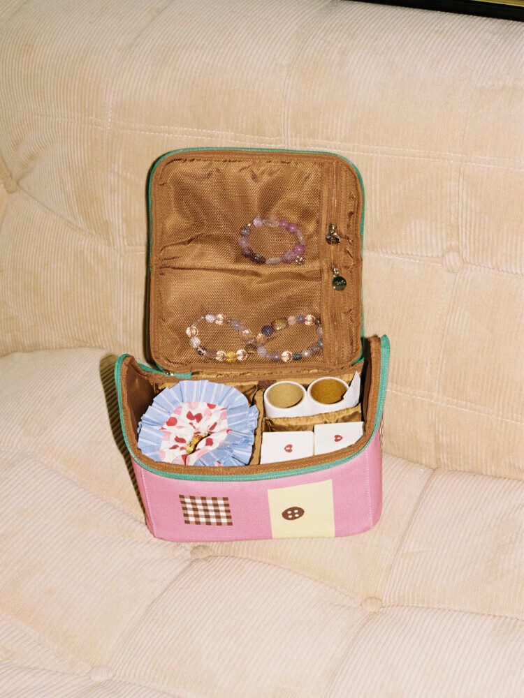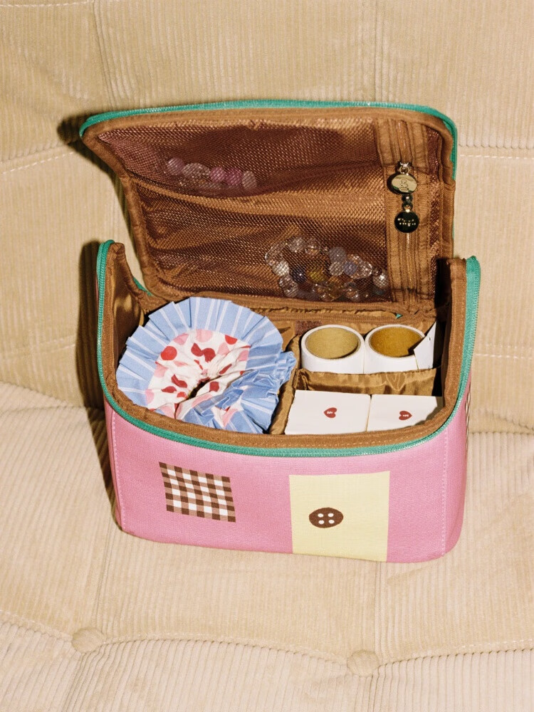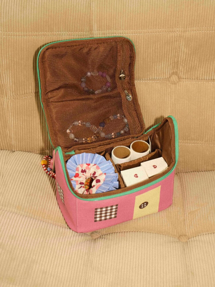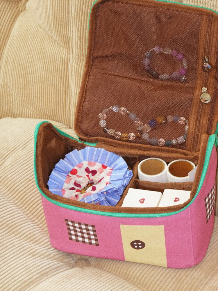 Tagi.Smart little house waterproof portable toiletry bag travel large capacity cosmetic bag storage bag-berry hazelnut