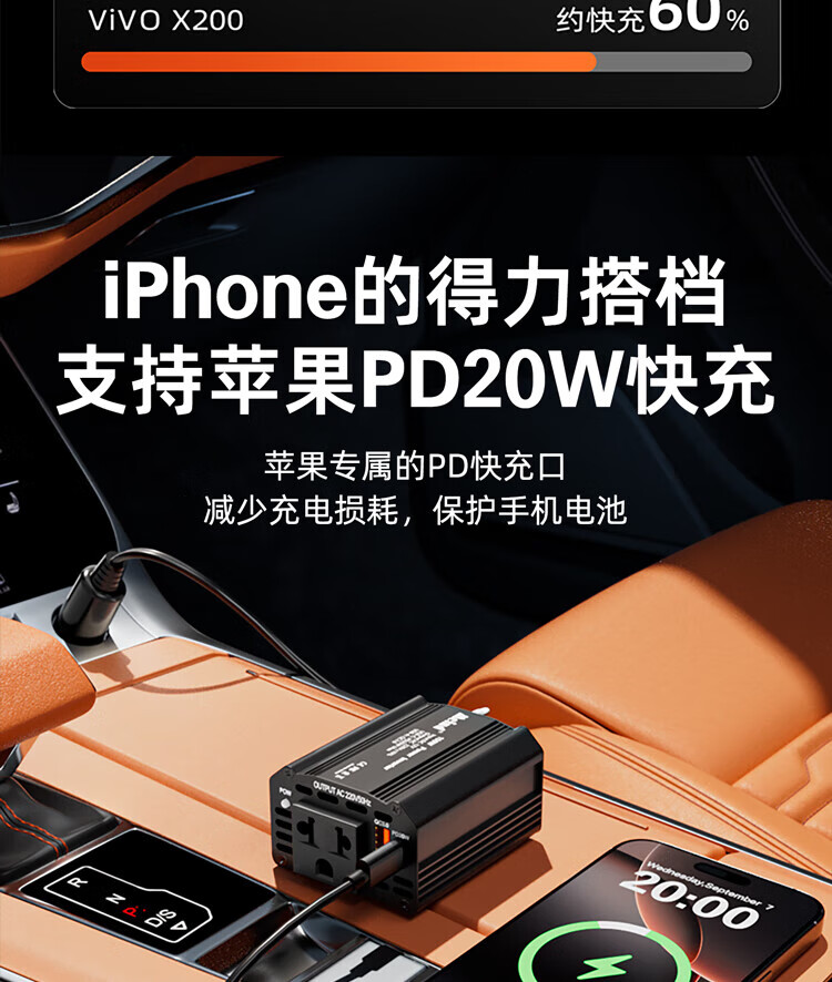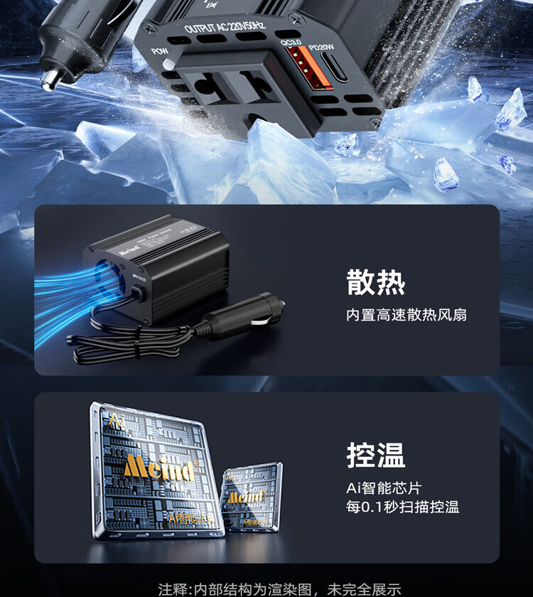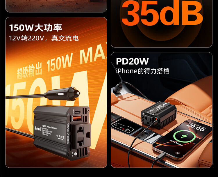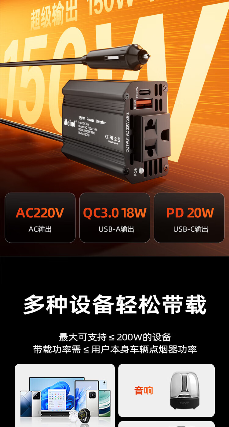 Meind car inverter 12V to 220V charger super fast charging bottle car car cigarette lighter converter 150W