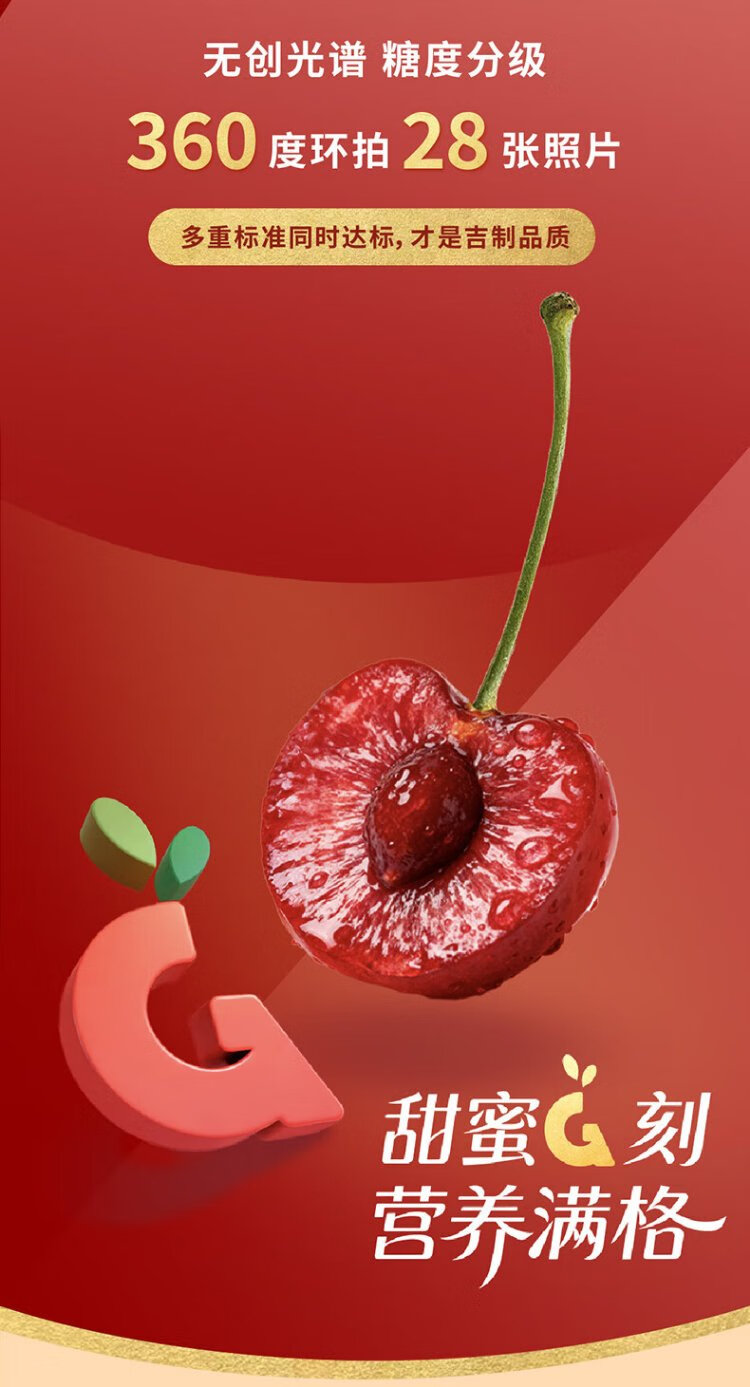 Jingxiansheng GarcesFruit Chilean cherries 3J grade 900g, fruit diameter about 30-32mm, straight from the source