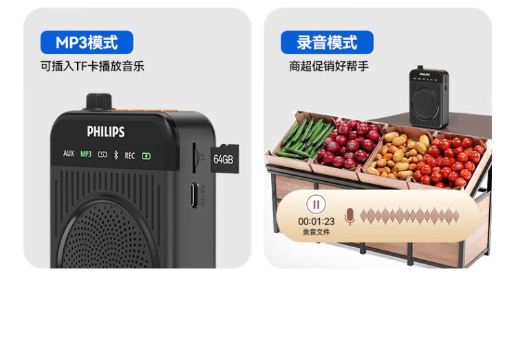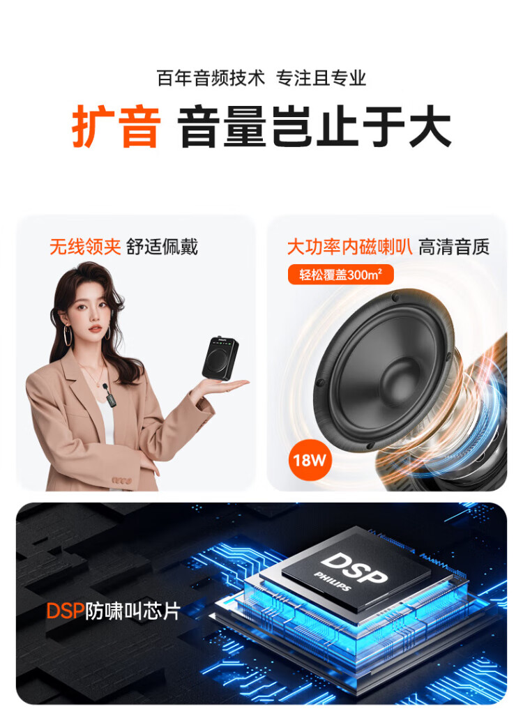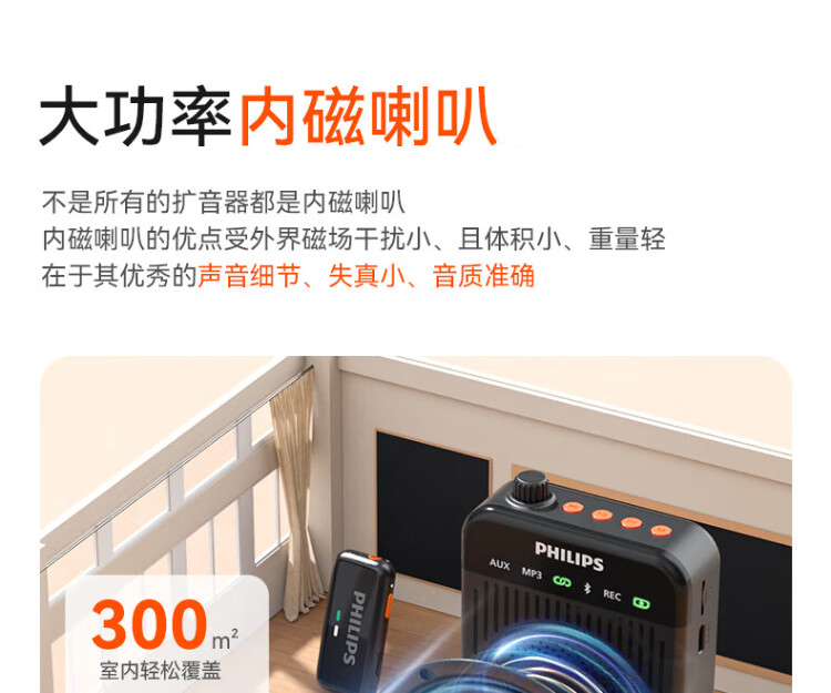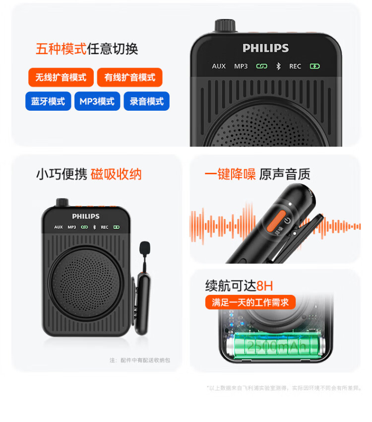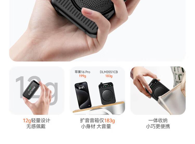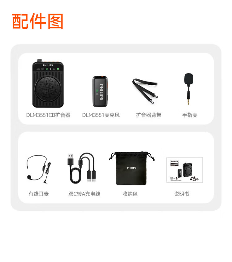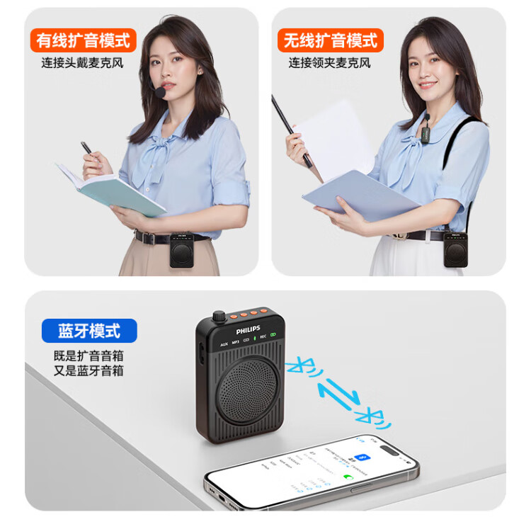 Philips (PHILIPS) national subsidy Lavalier Little Bee loudspeaker for teachers, guide guide, Little Bee Bluetooth wireless loudspeaker microphone DLM3551CB