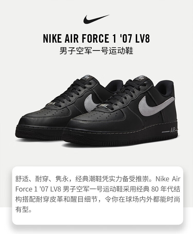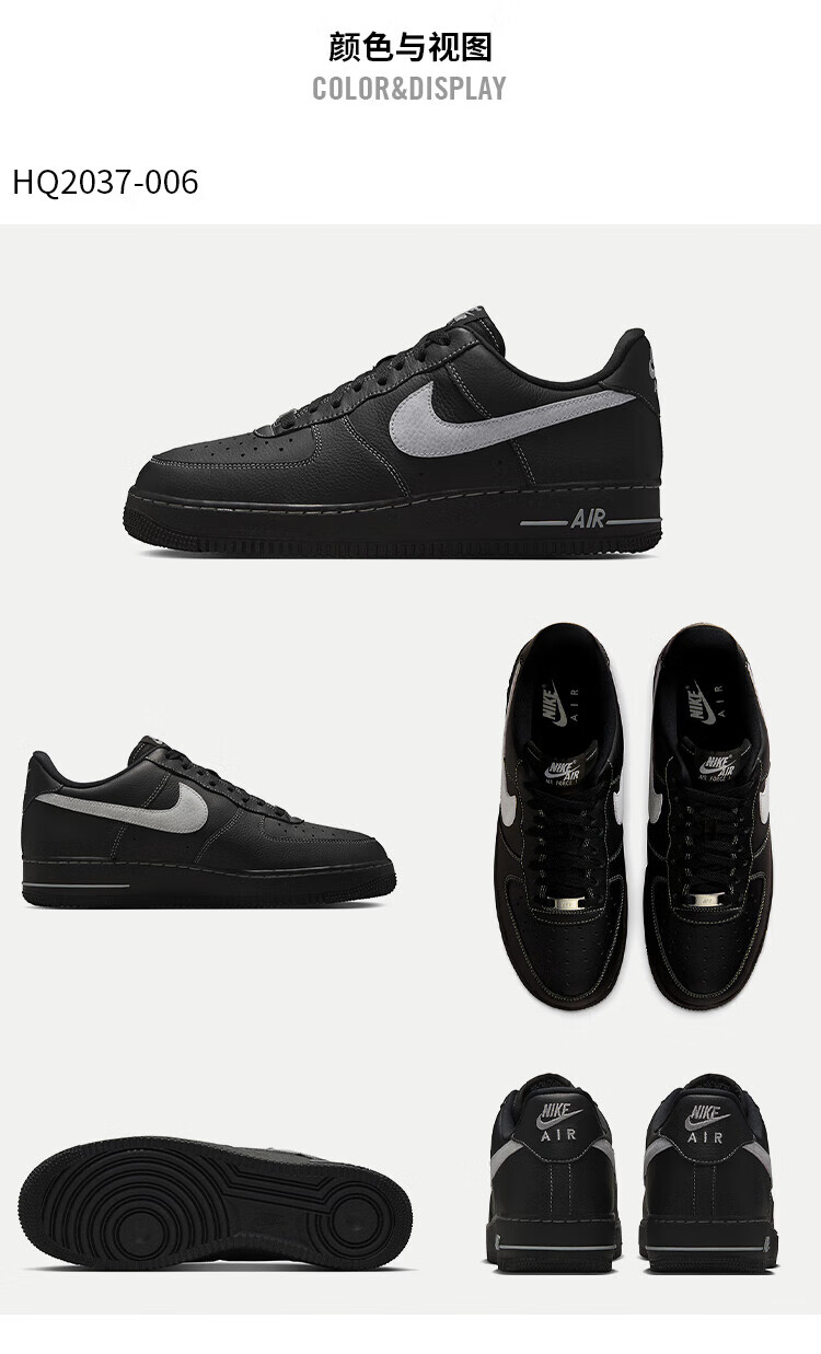 Nike NIKE Men's Air Force 1 AF1 New Year's Gift Sports Shoes HQ2037-006 Black Gray 42