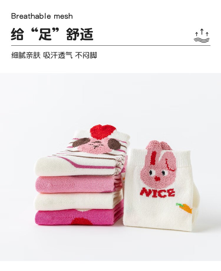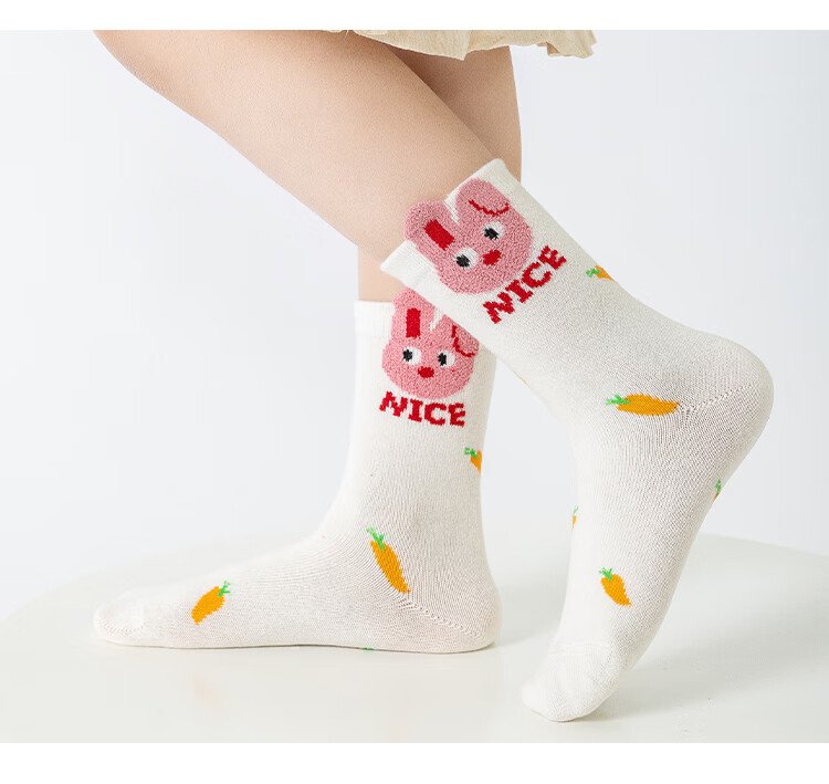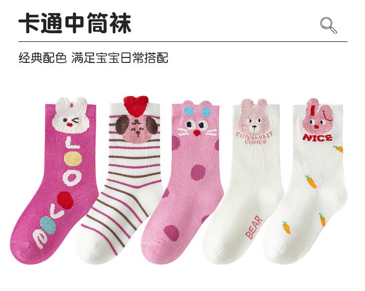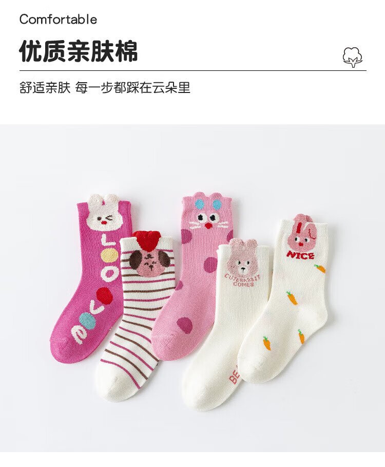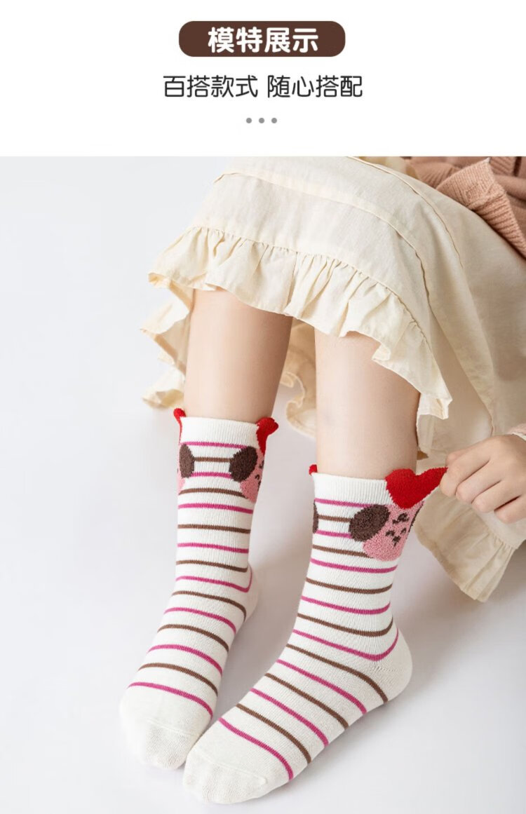 Catman 5 pairs of children's socks, autumn and winter cotton baby girls, medium-sized children, medium-sized little girls, princess, deodorant and sweat-absorbent