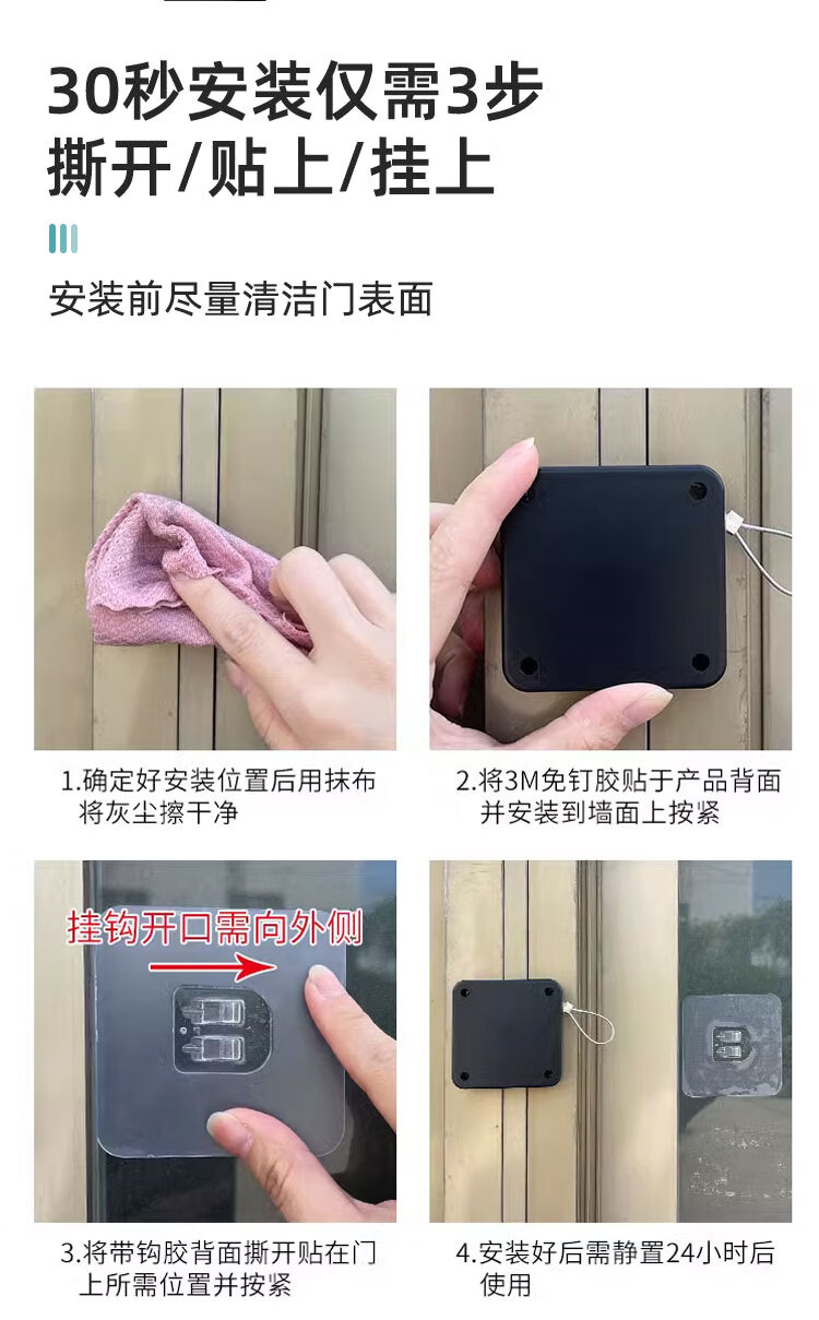 Masifo door closer black 800g pull force punch-free telescopic door slider wooden door push-pull automatic door closer