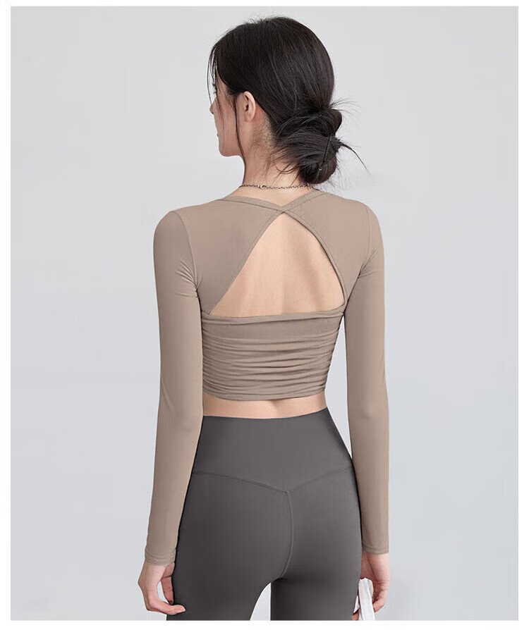 Youyou Yoga Wear Waist Slimming Fitness Long Sleeve Advanced Pilates Training Top J35088Y1U Coffee M