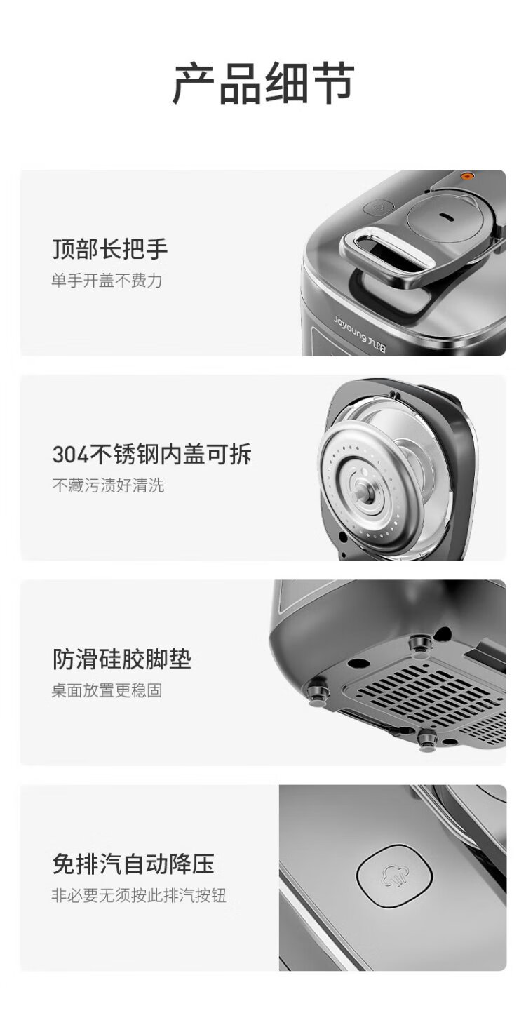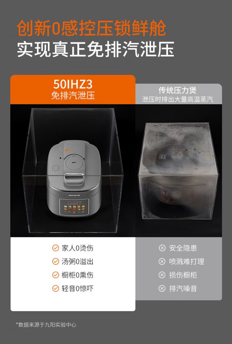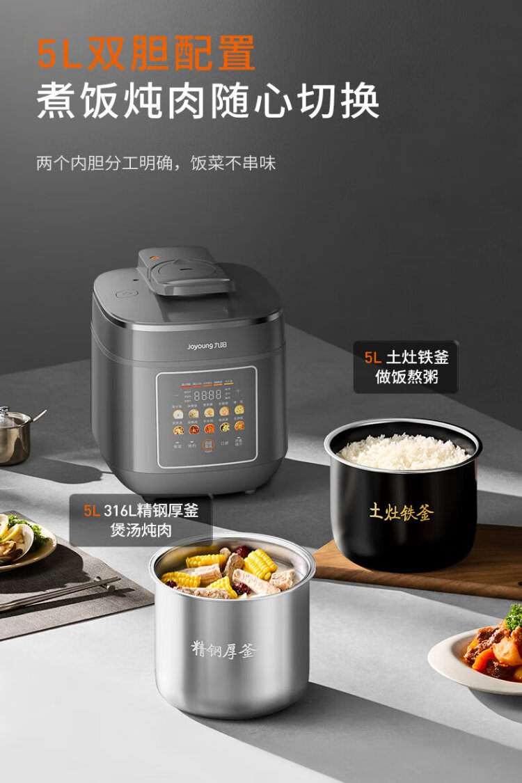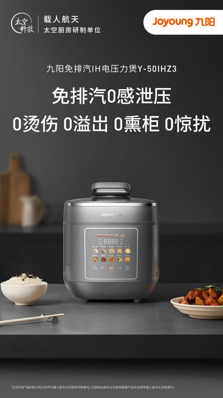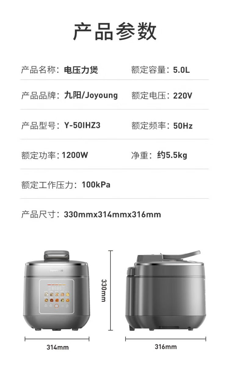 Joyoung national subsidy exhaust-free IH boiling stew electric pressure cooker 5L smart reservation 100kPa household rice cooker pressure cooker 4-6 people 0 coating 316 steel kettle Y-50IHZ3