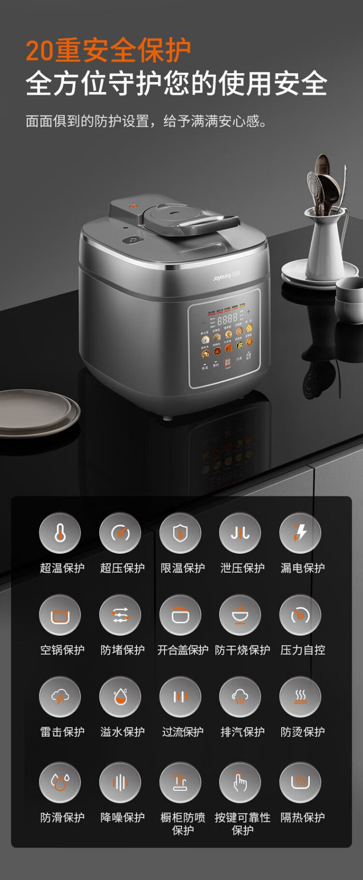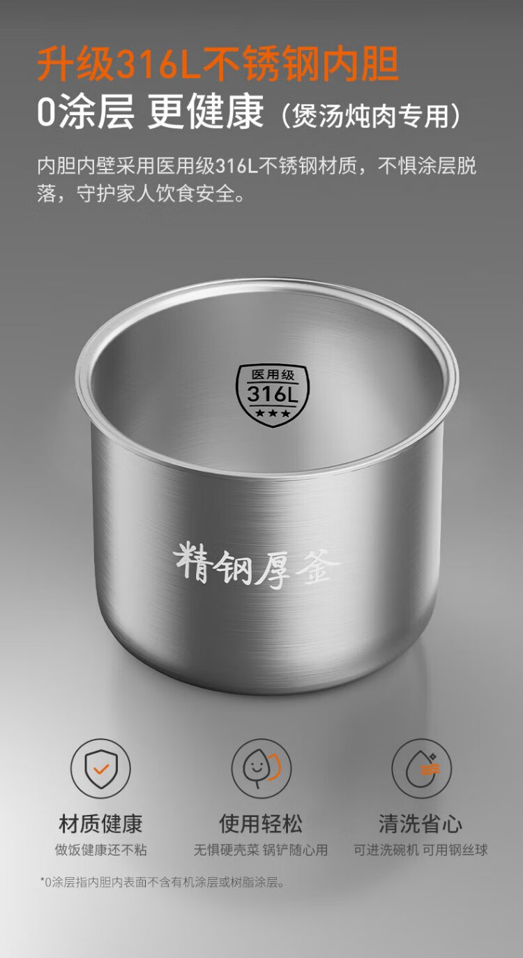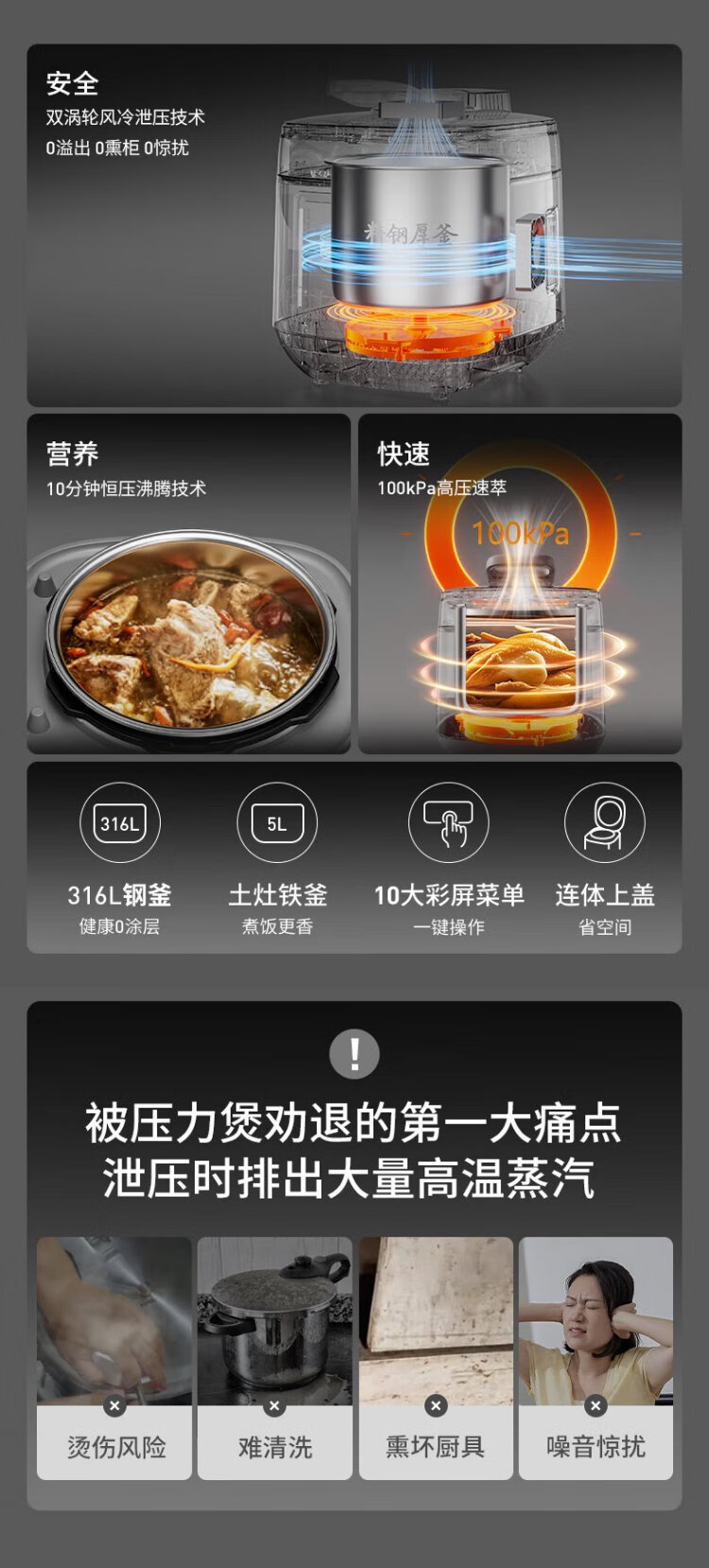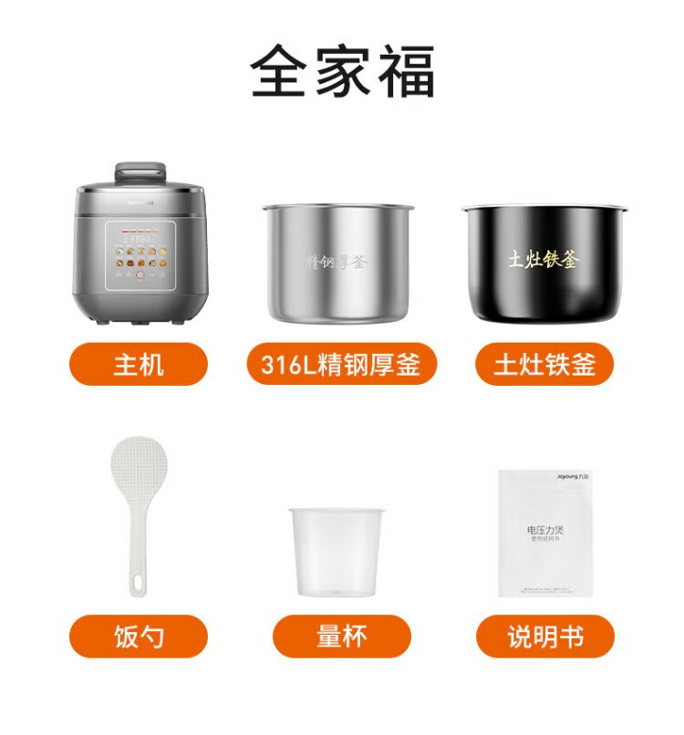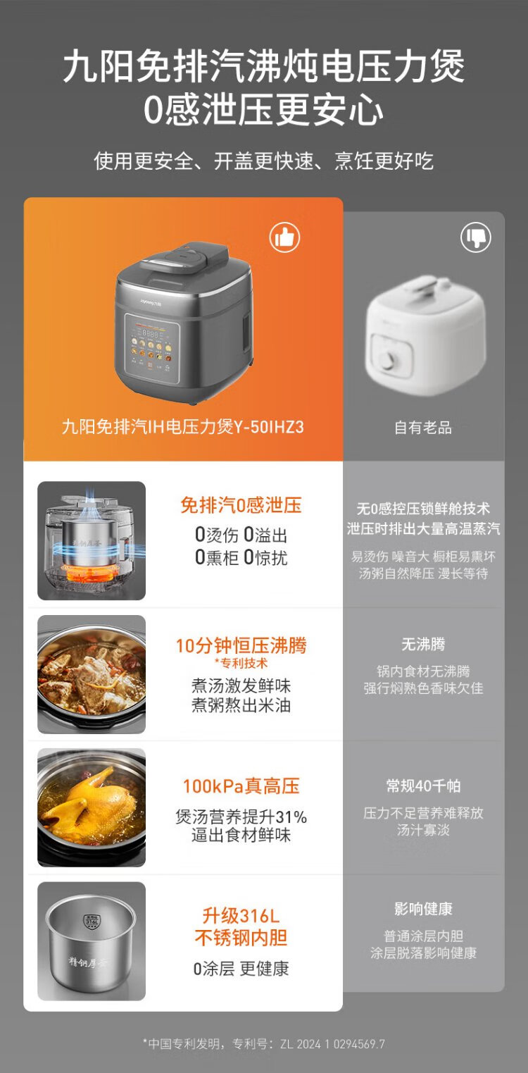 Joyoung national subsidy exhaust-free IH boiling stew electric pressure cooker 5L smart reservation 100kPa household rice cooker pressure cooker 4-6 people 0 coating 316 steel kettle Y-50IHZ3