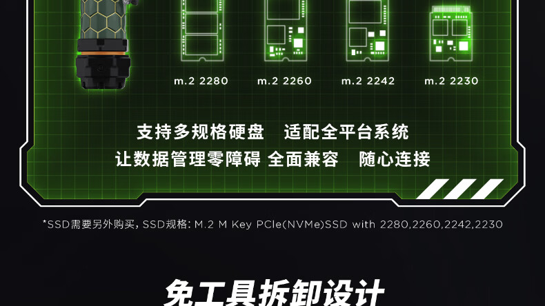 联想(Lenovo)拯救者战术硬盘盒 手雷造型 M.2 NVMe固态移动硬盘盒 文创/礼品 蛟龙行动联名款