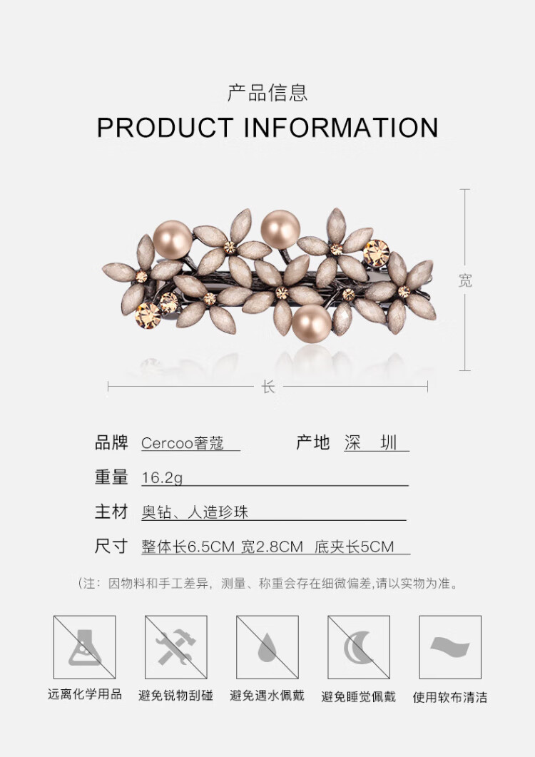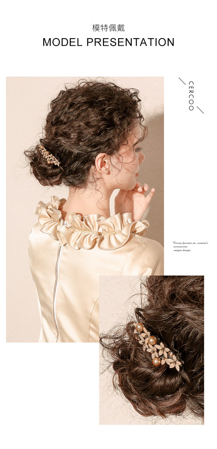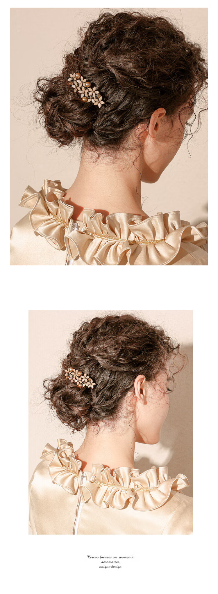 Cercoo hairpin, rhinestone and pearl clip, headwear, back of head gift for mother, one-word clip, horizontal clip, spring clip, champagne color