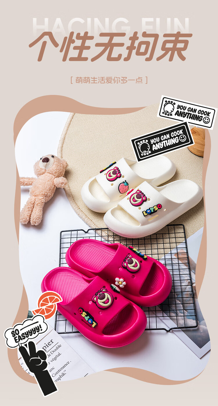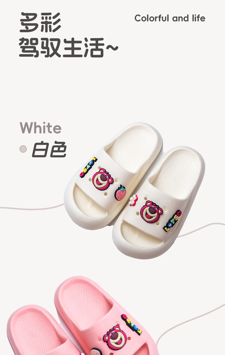 Disney Slippers Strawberry Bear Cartoon Cute Children's Slippers White Strawberry Bear 22.5