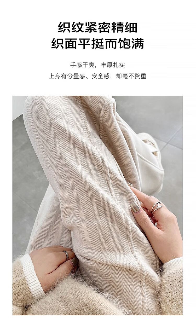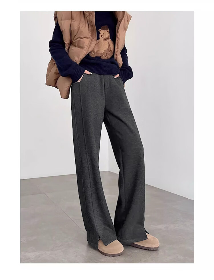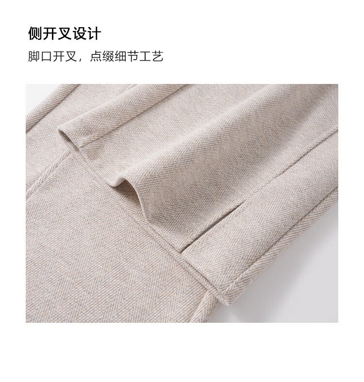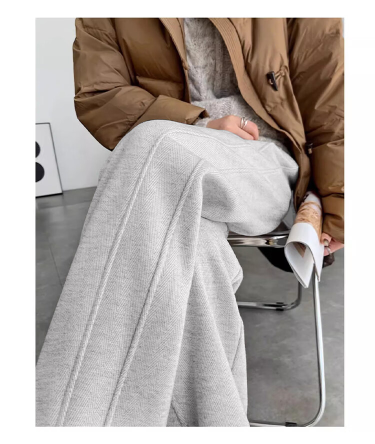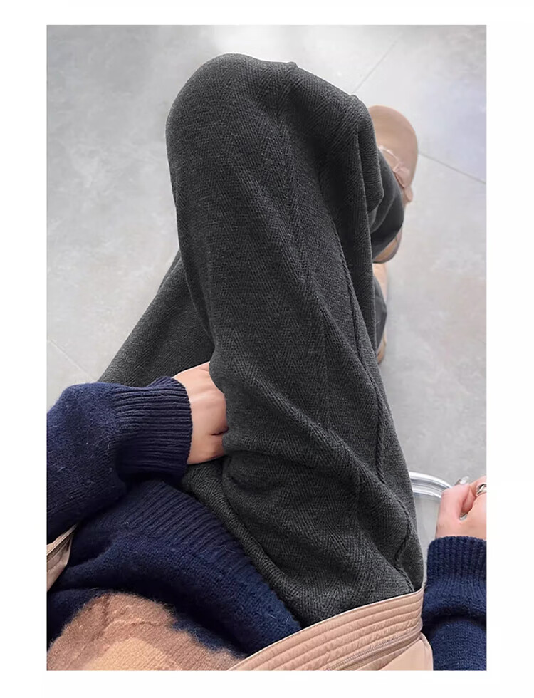 Baleno herringbone wide-leg pants for women spring and autumn 2026 new woolen slit pants for women with versatile straight narrow version casual trousers