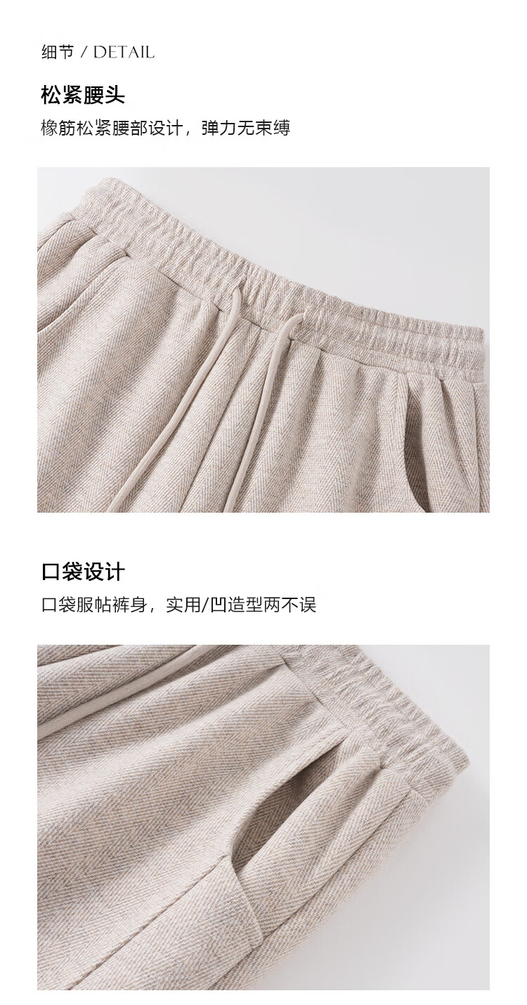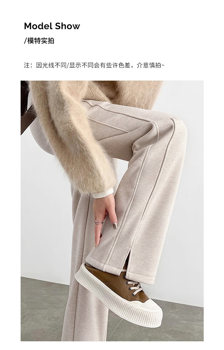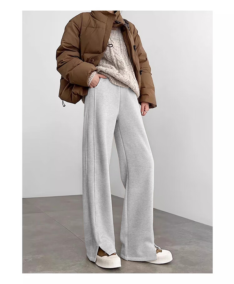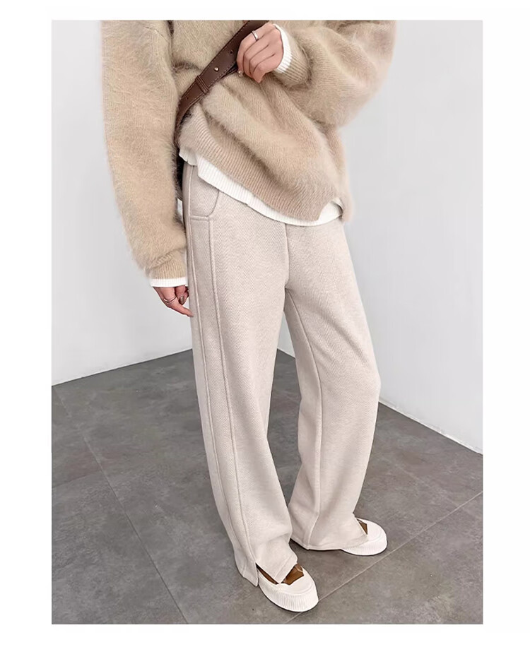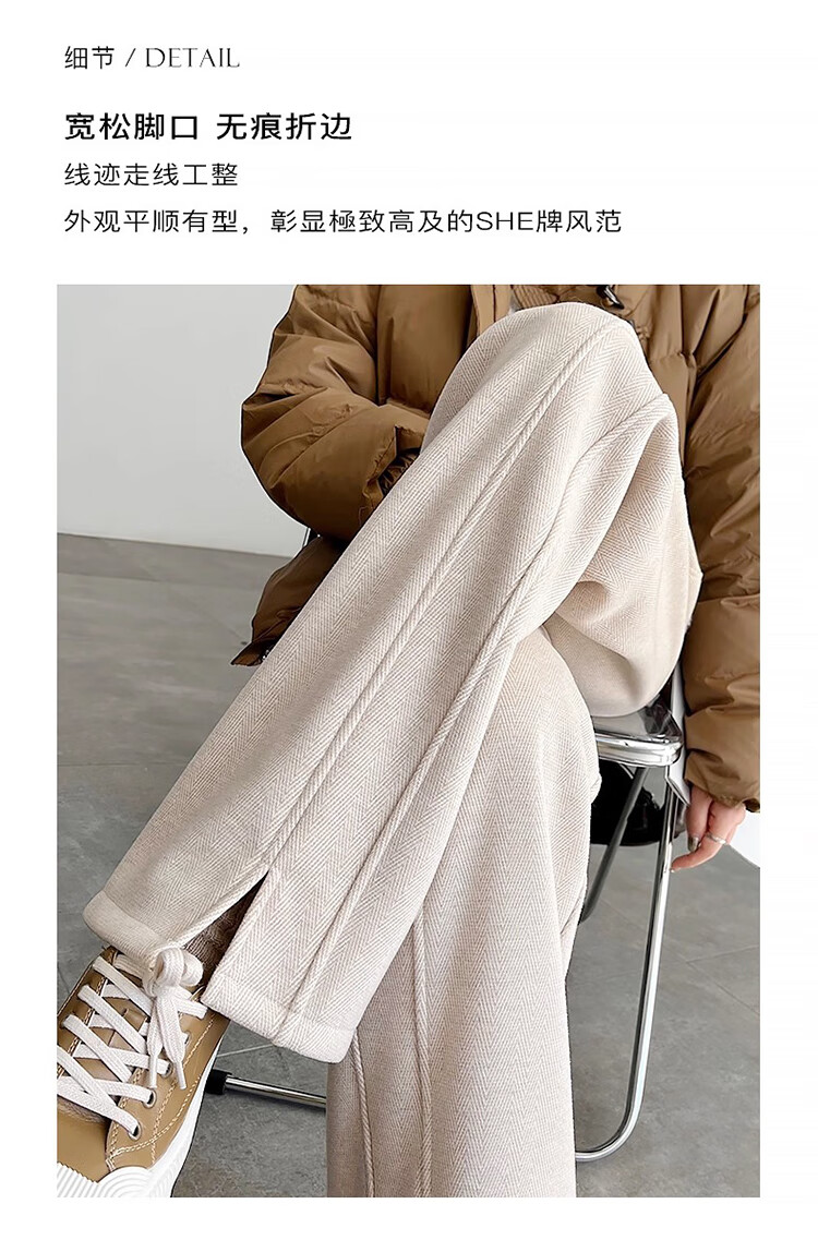 Baleno herringbone wide-leg pants for women spring and autumn 2026 new woolen slit pants for women with versatile straight narrow version casual trousers