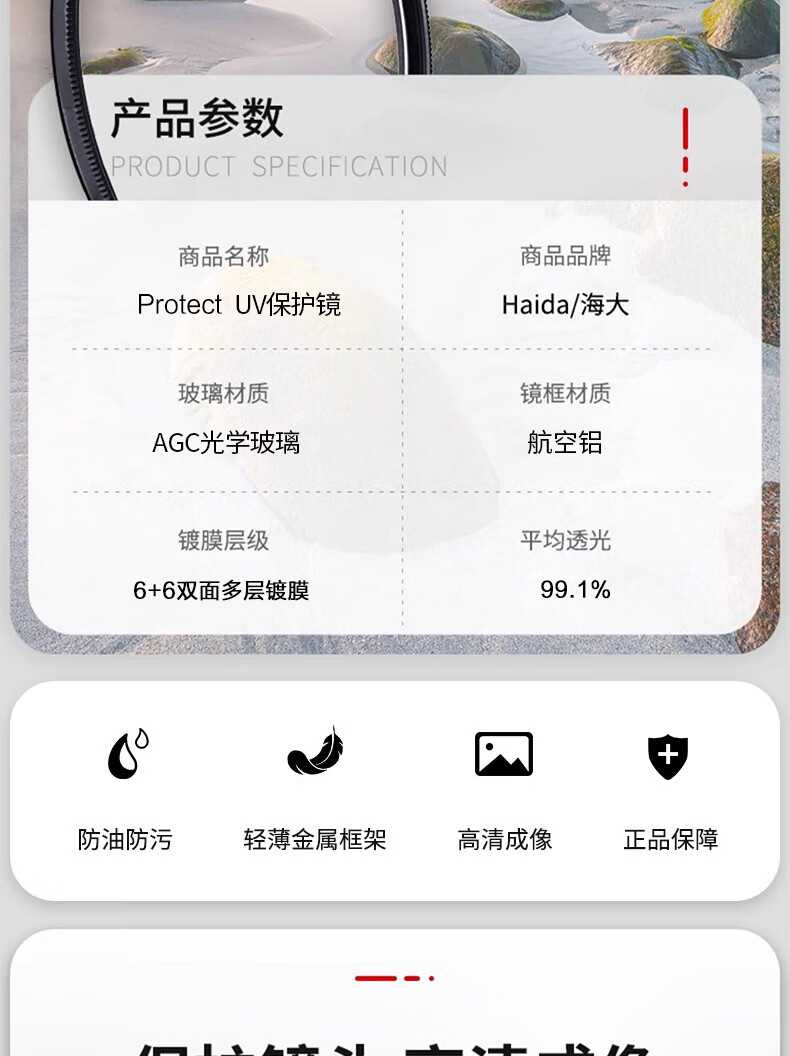 Haida海大UV镜55mm滤镜12层纳米双面镀膜99.1%高透光滤光镜保护镜适用于佳能索尼富士等微单单反镜头