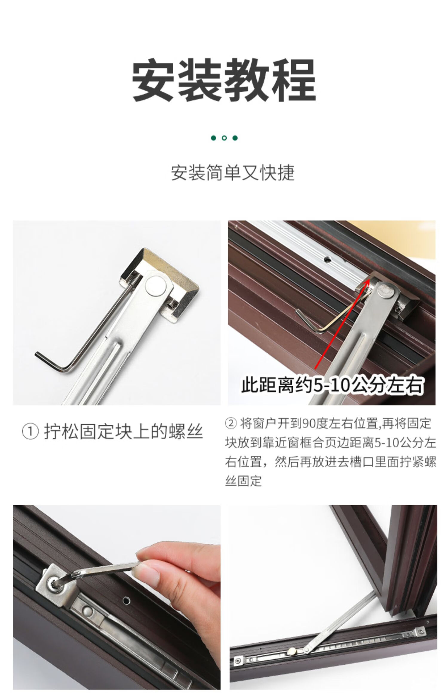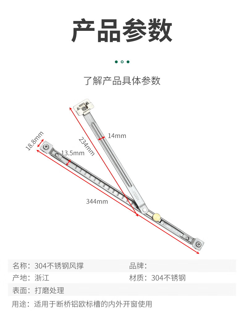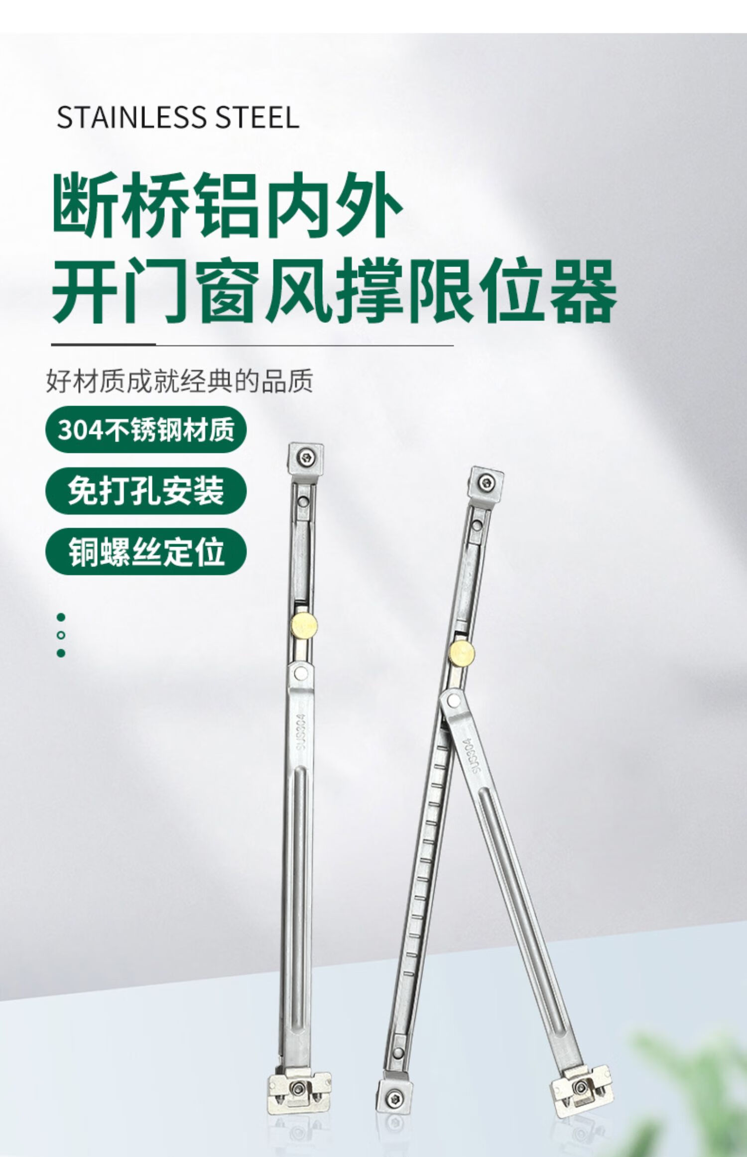 Thousand-speed wheel punch-free wind brace broken bridge aluminum door and window limiter retainer 304 stainless steel universal for internal and external windows 2 pieces