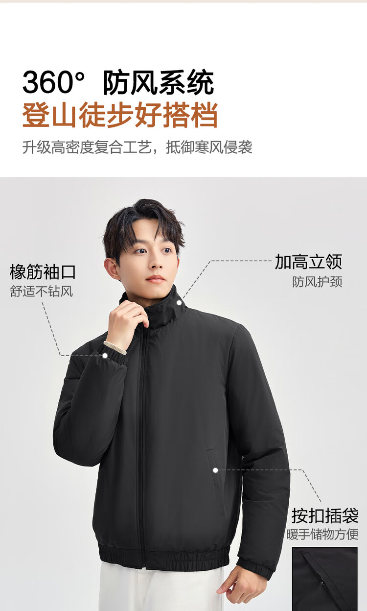 Giordano cotton jacket men's autumn and winter new style quilted windproof solid color stand-up collar long-sleeved cotton jacket 01075683