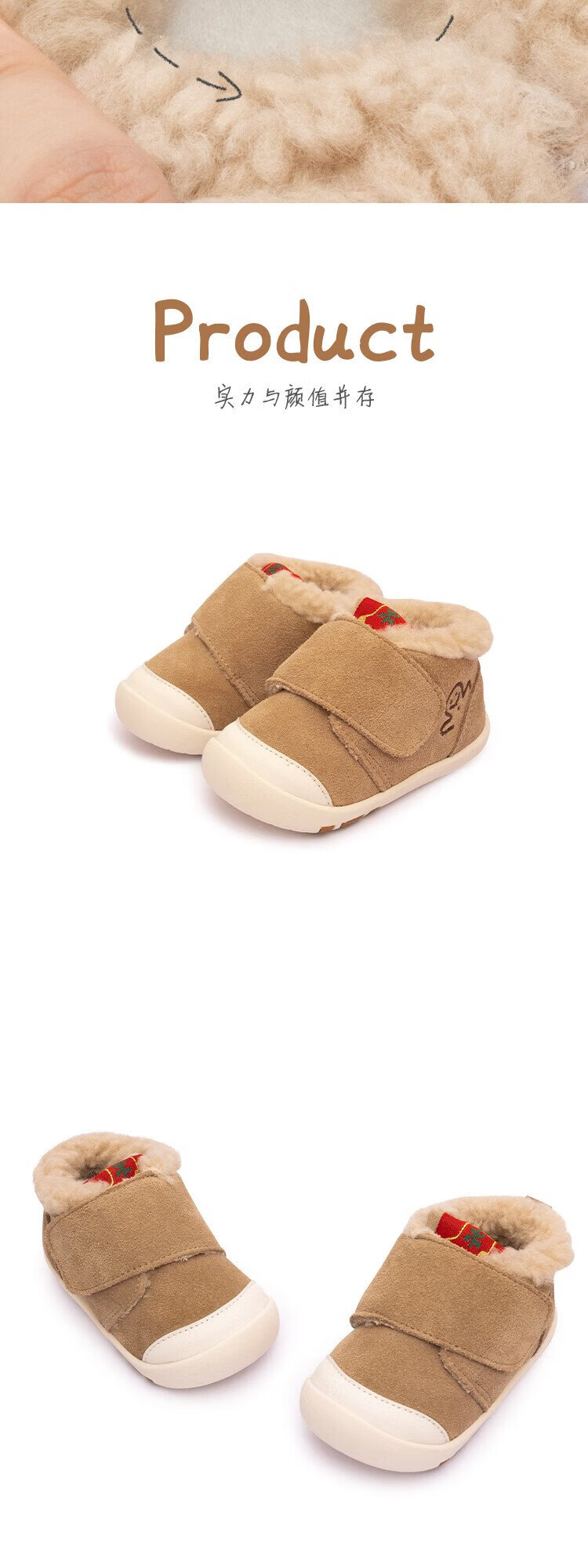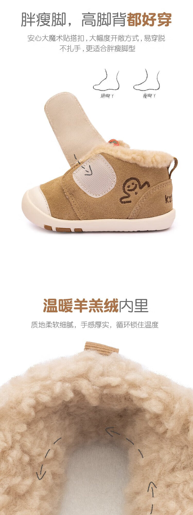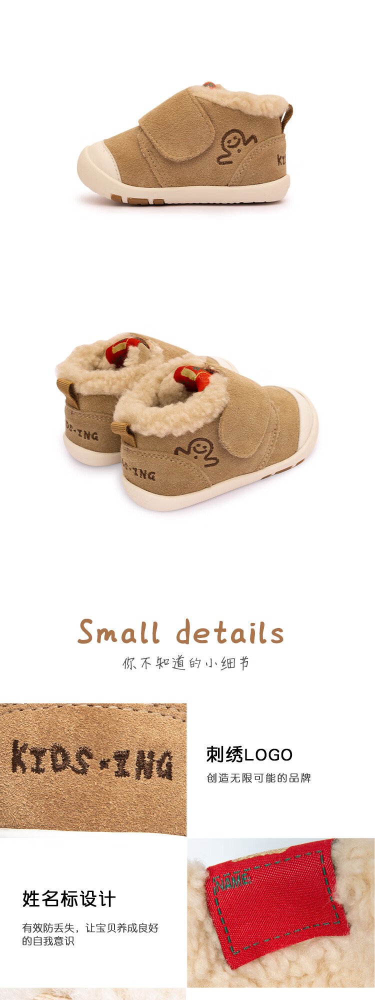 Kids.ing Kedi Star Toddler Shoes Winter Infant Cotton Shoes Men's and Women's Velvet Thickened Functional Shoes Children's Shoes Brown 22