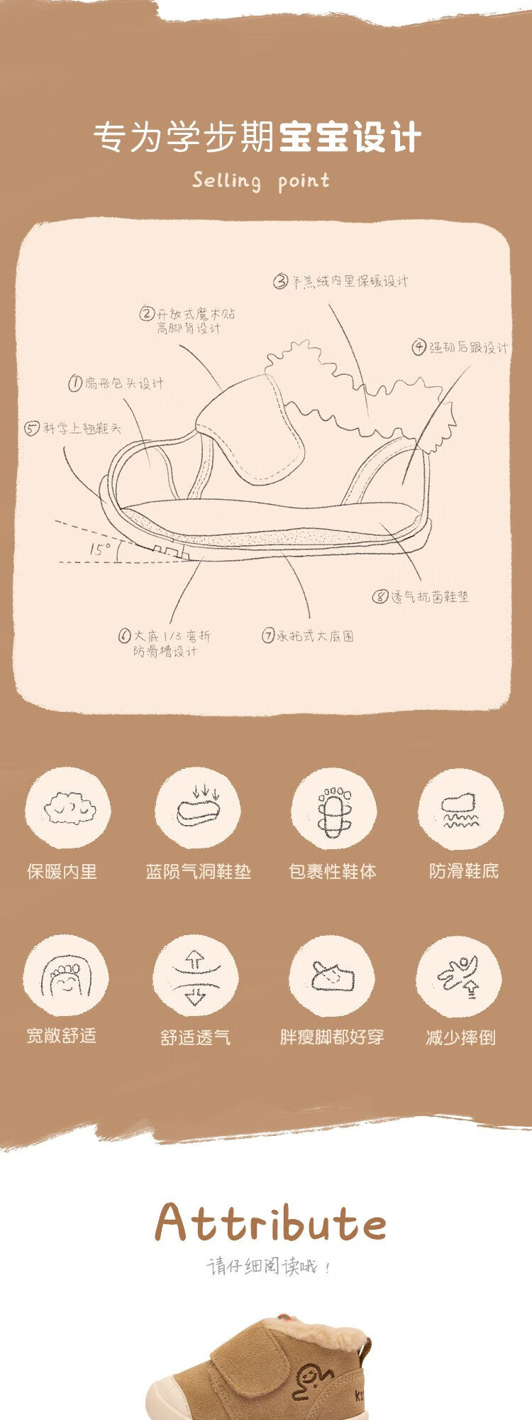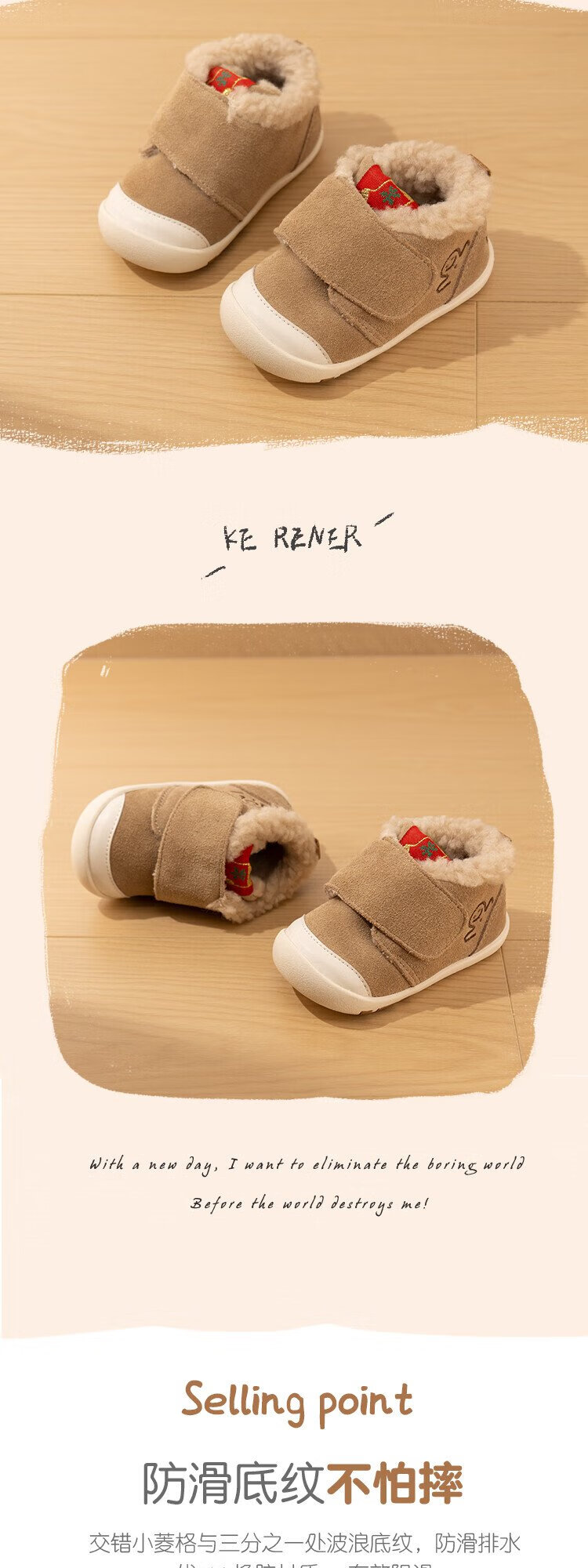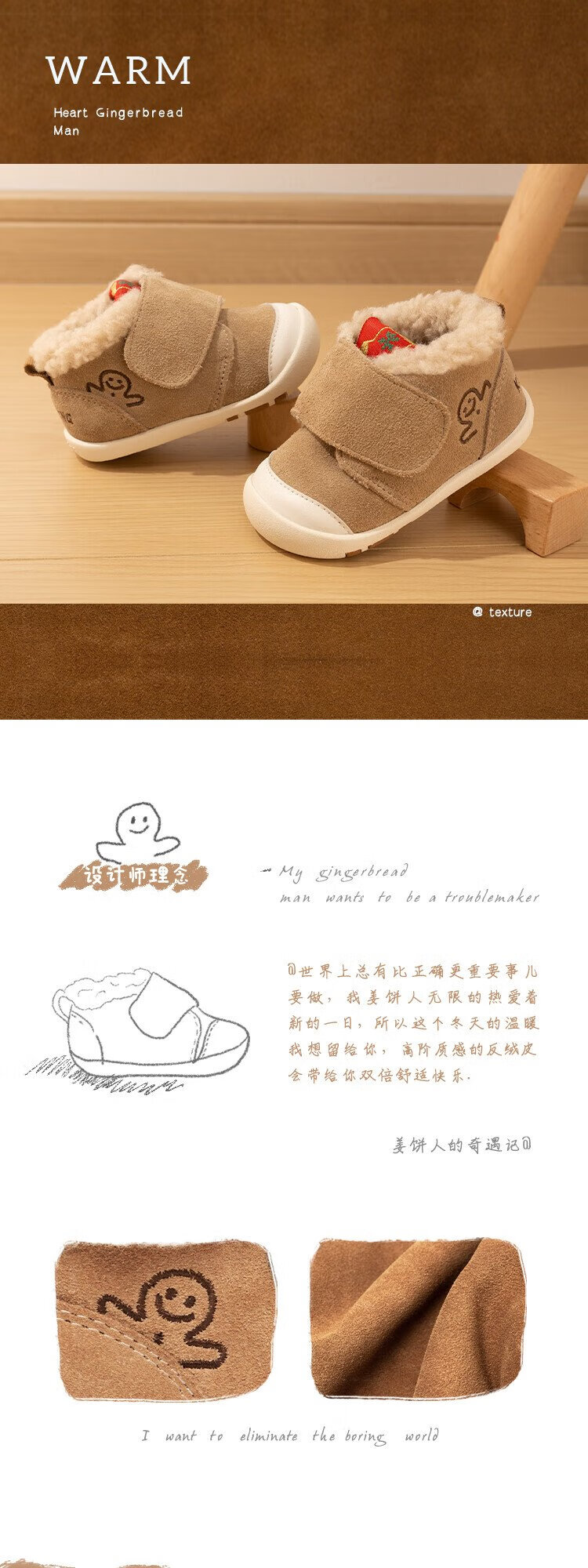 Kids.ing Kedi Star Toddler Shoes Winter Infant Cotton Shoes Men's and Women's Velvet Thickened Functional Shoes Children's Shoes Brown 22