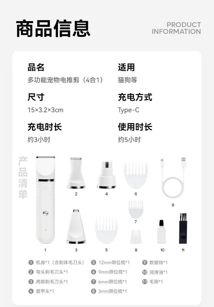 Zhenyoupet pet shaving machine four-in-one cat hair clipper special electric clipper for cat sole trimming dog foot hair clipping