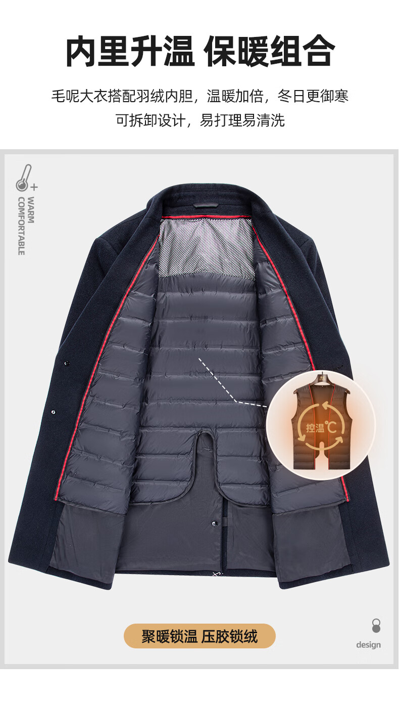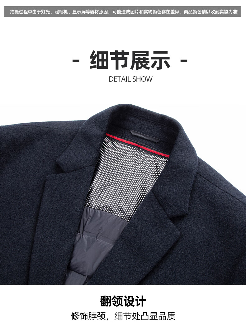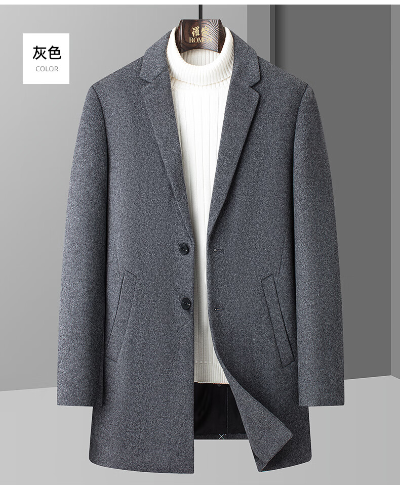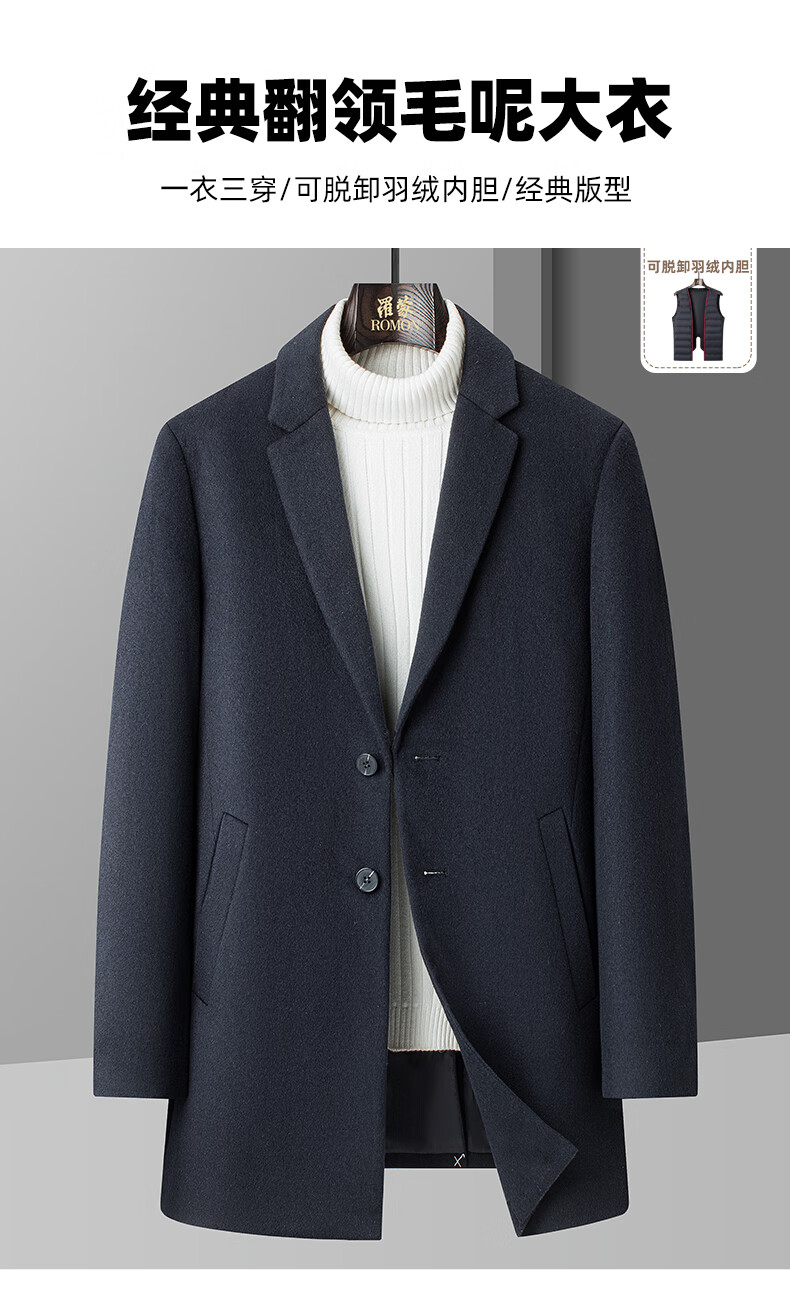 Romon Sheep Wool Removable Down Liner Shopping Mall Woolen Coat Men's Mid-Length Thickened Warm Jacket Gray L (175)