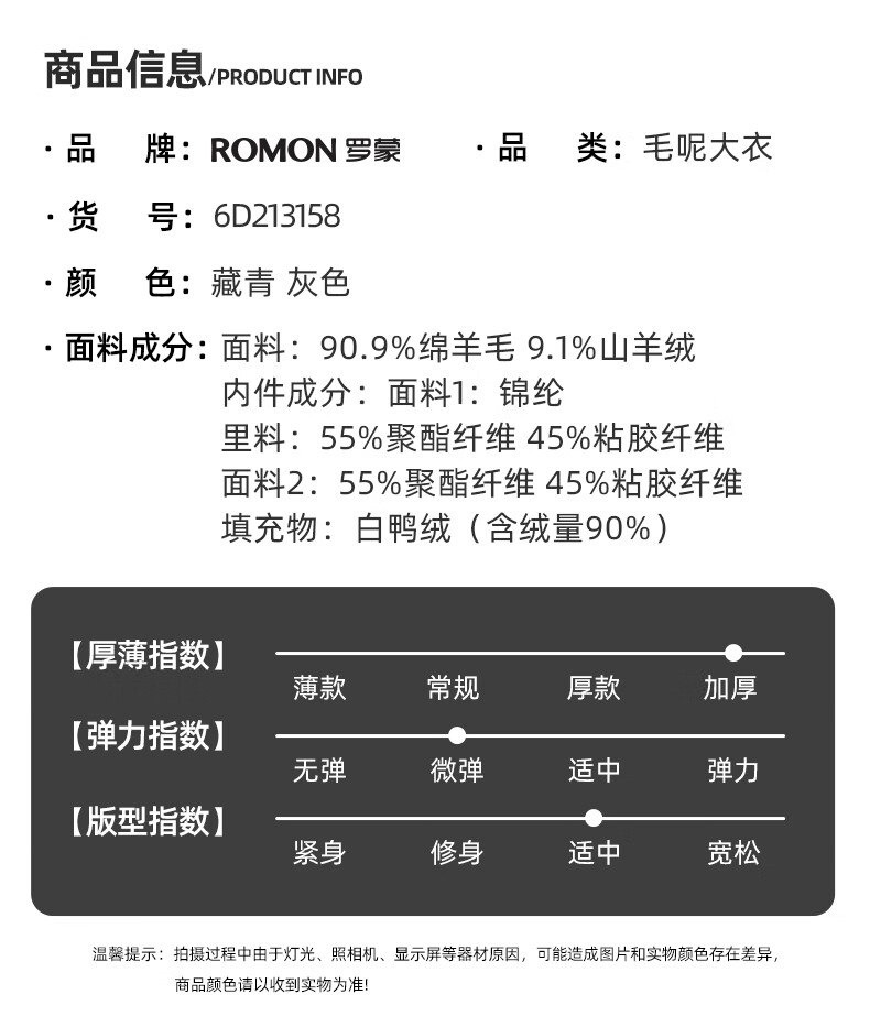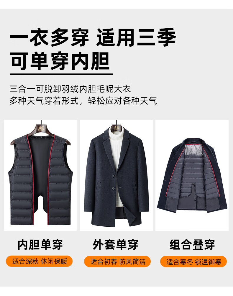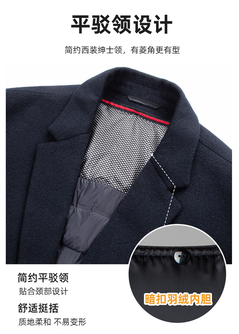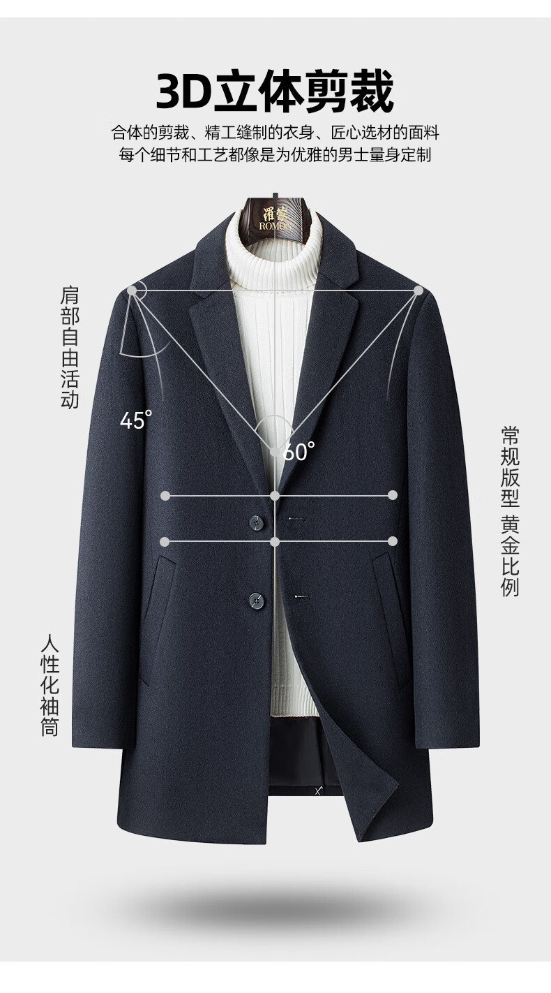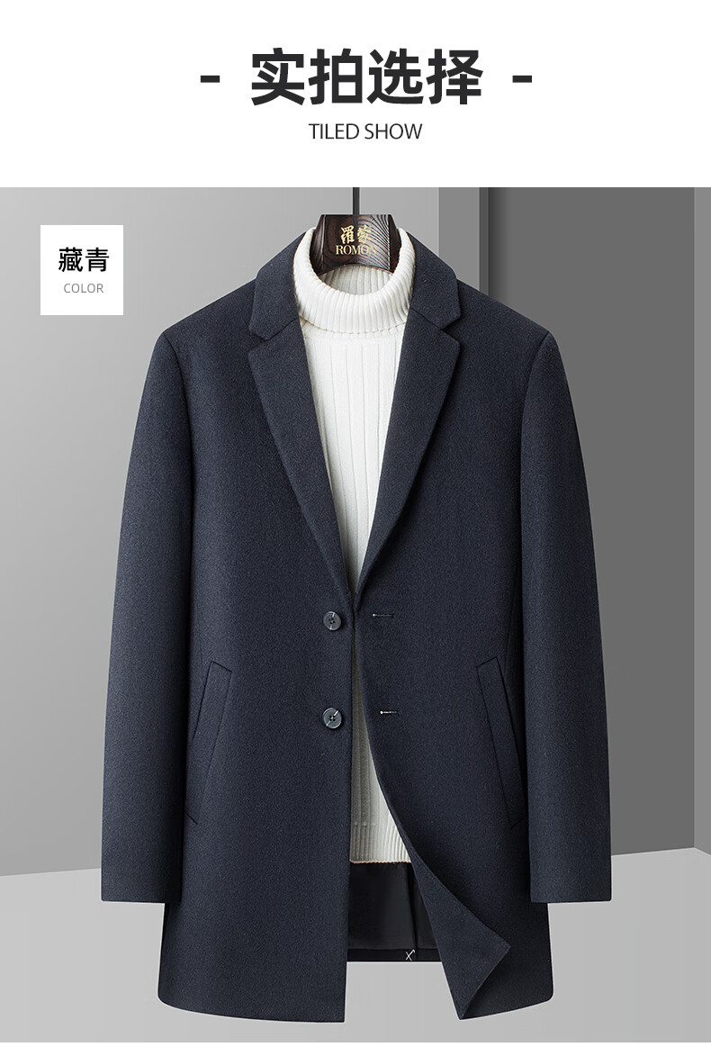 Romon Sheep Wool Removable Down Liner Shopping Mall Woolen Coat Men's Mid-Length Thickened Warm Jacket Gray L (175)
