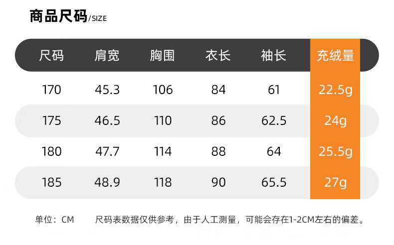 China (cm) 165 / 88-90 170 / 96-98 175 / 108-110 180 / 118-122 185 / 126-130