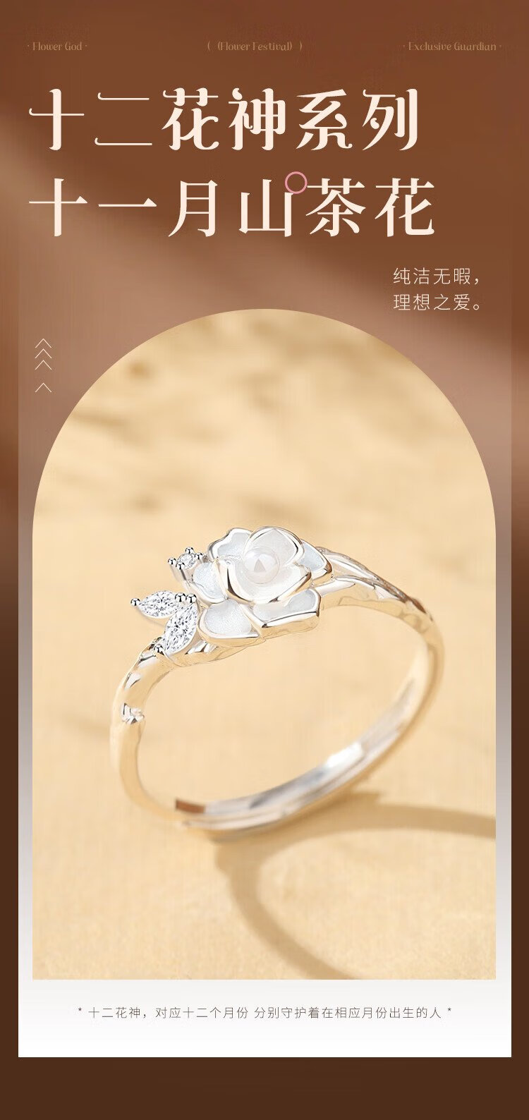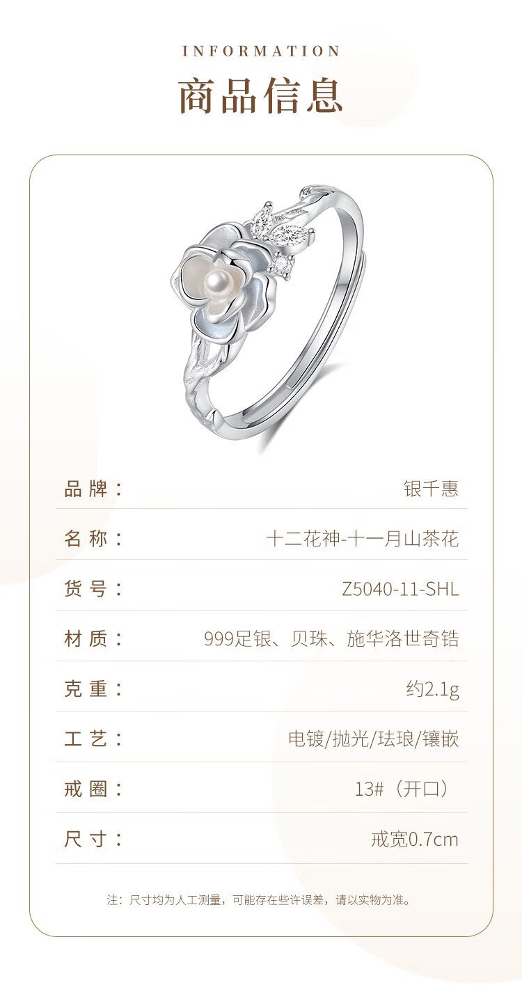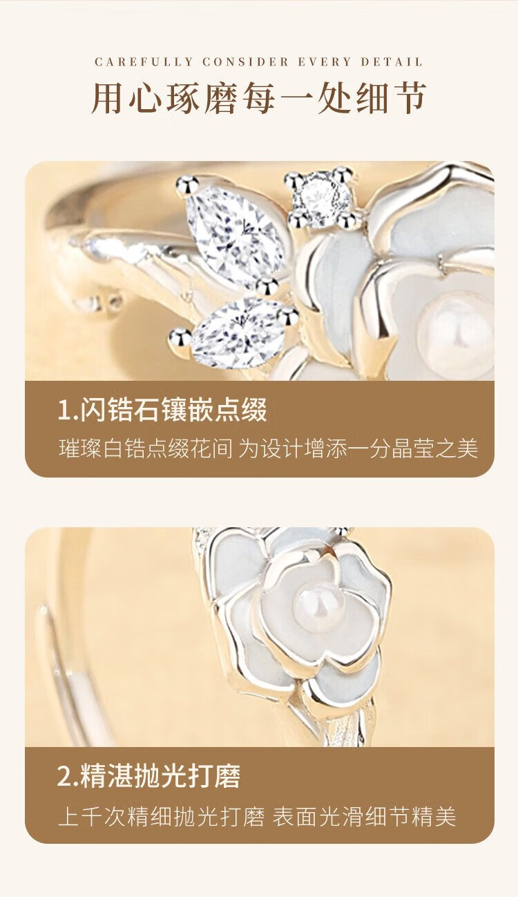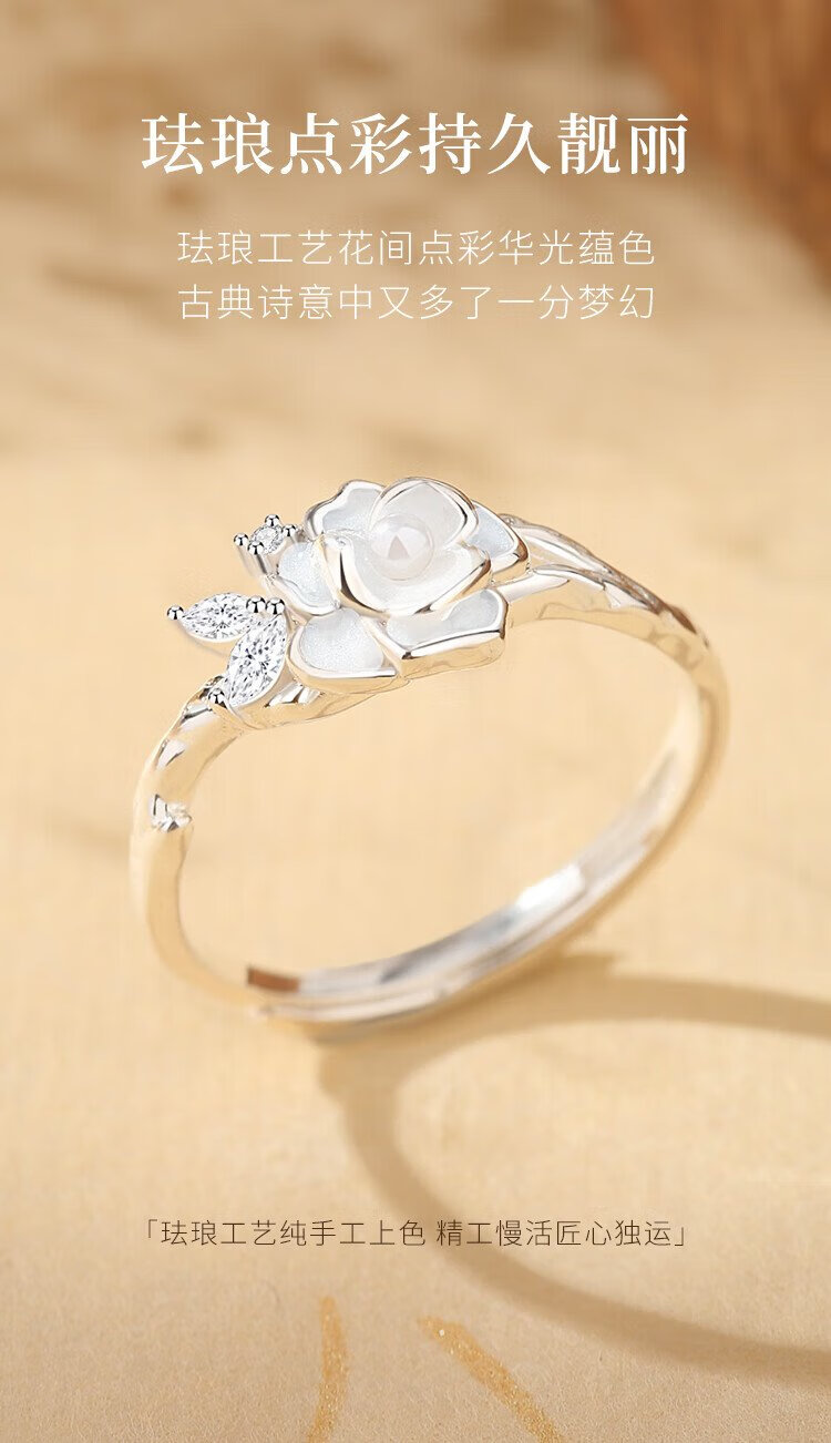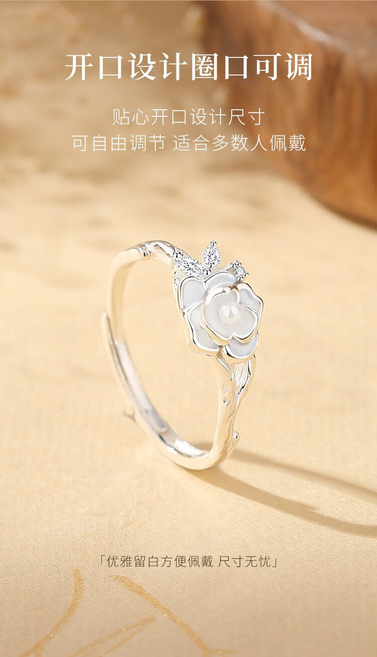 Gin Chie Swarovski zirconium 999 sterling silver ladies camellia ring light luxury commemorative birthday gift for girlfriend and wife