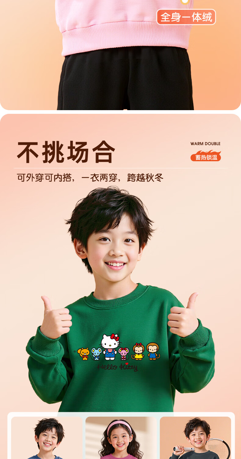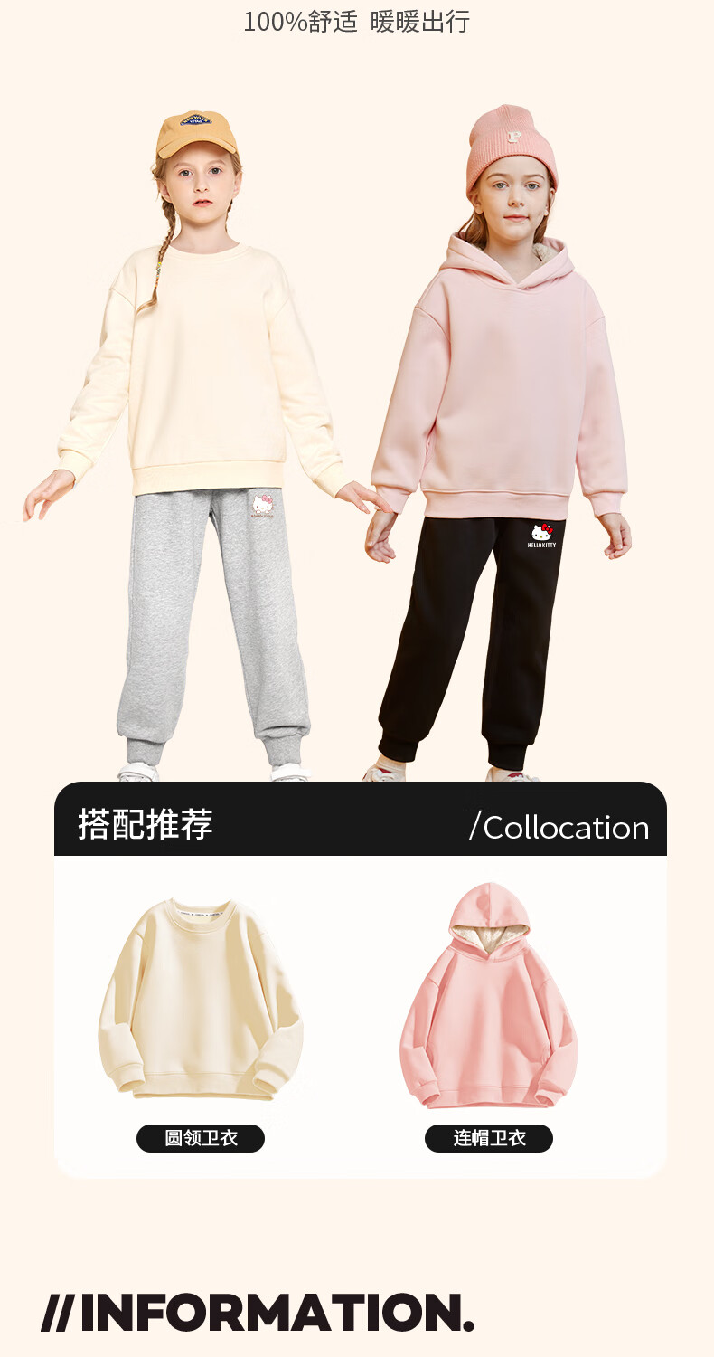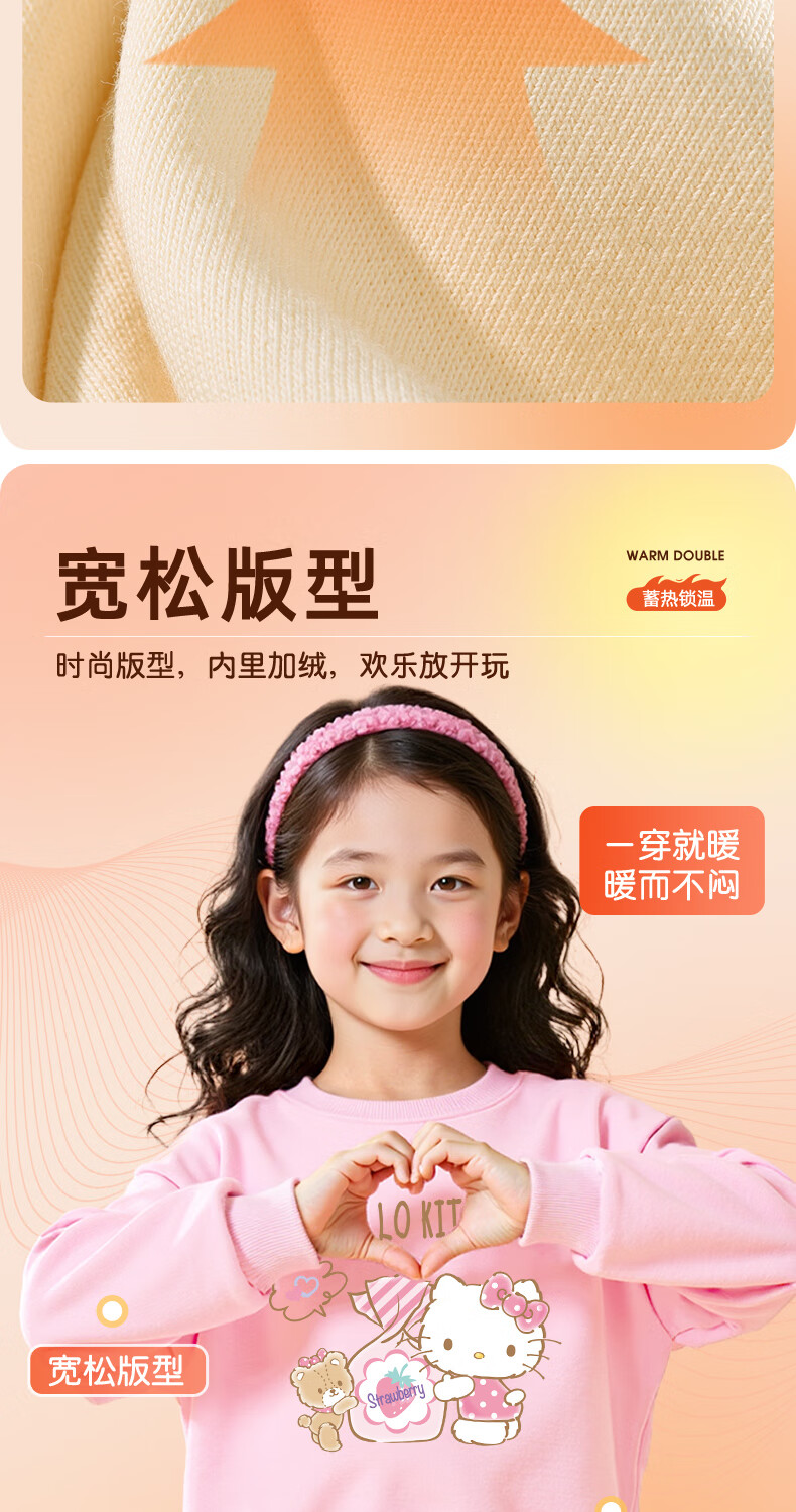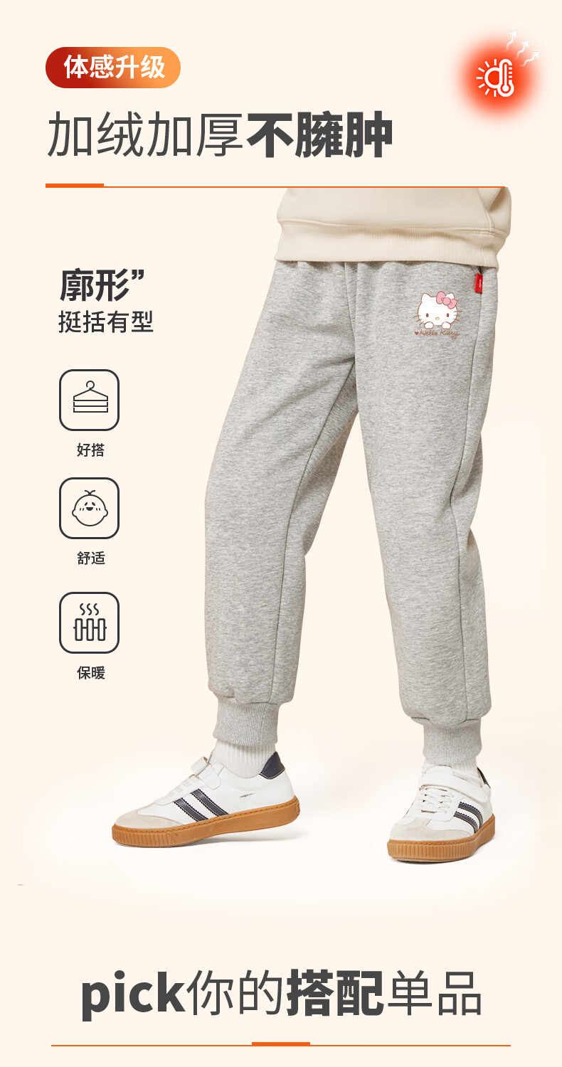 Hello Kitty Girls' Winter Suit 2025 New Autumn and Winter Plus Velvet Girls' Sweaters and Sweatpants Winter Clothes Children's Sportswear Two-piece Pack