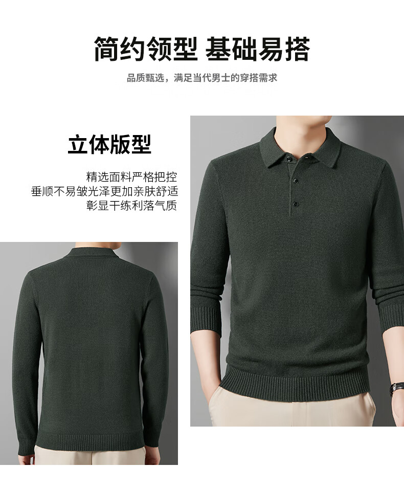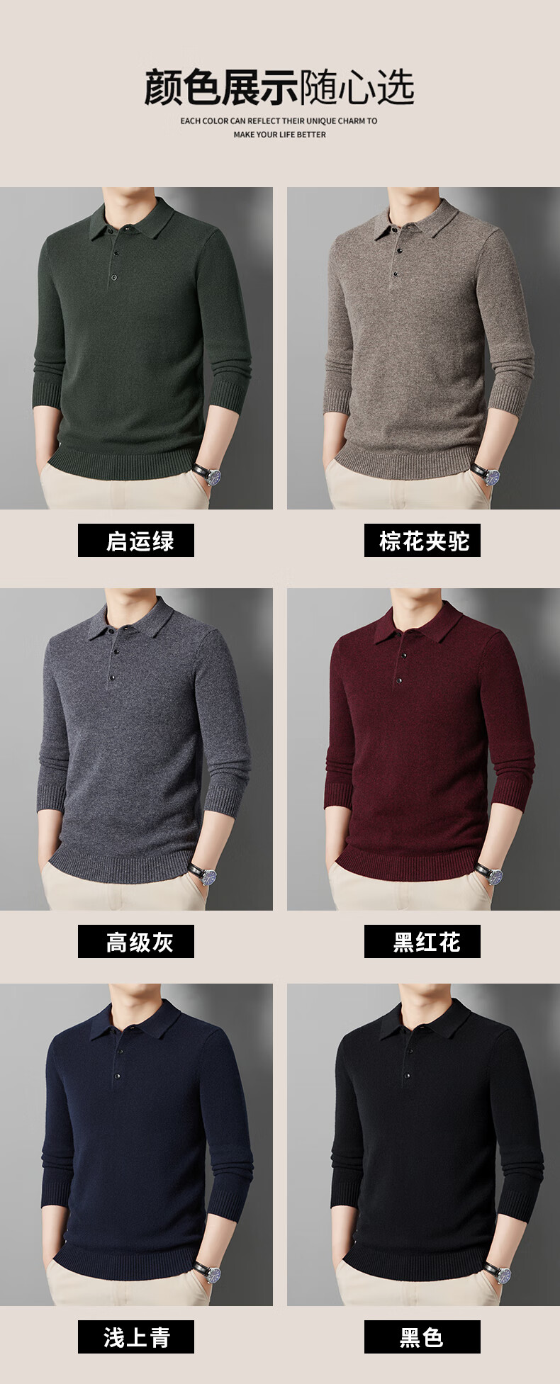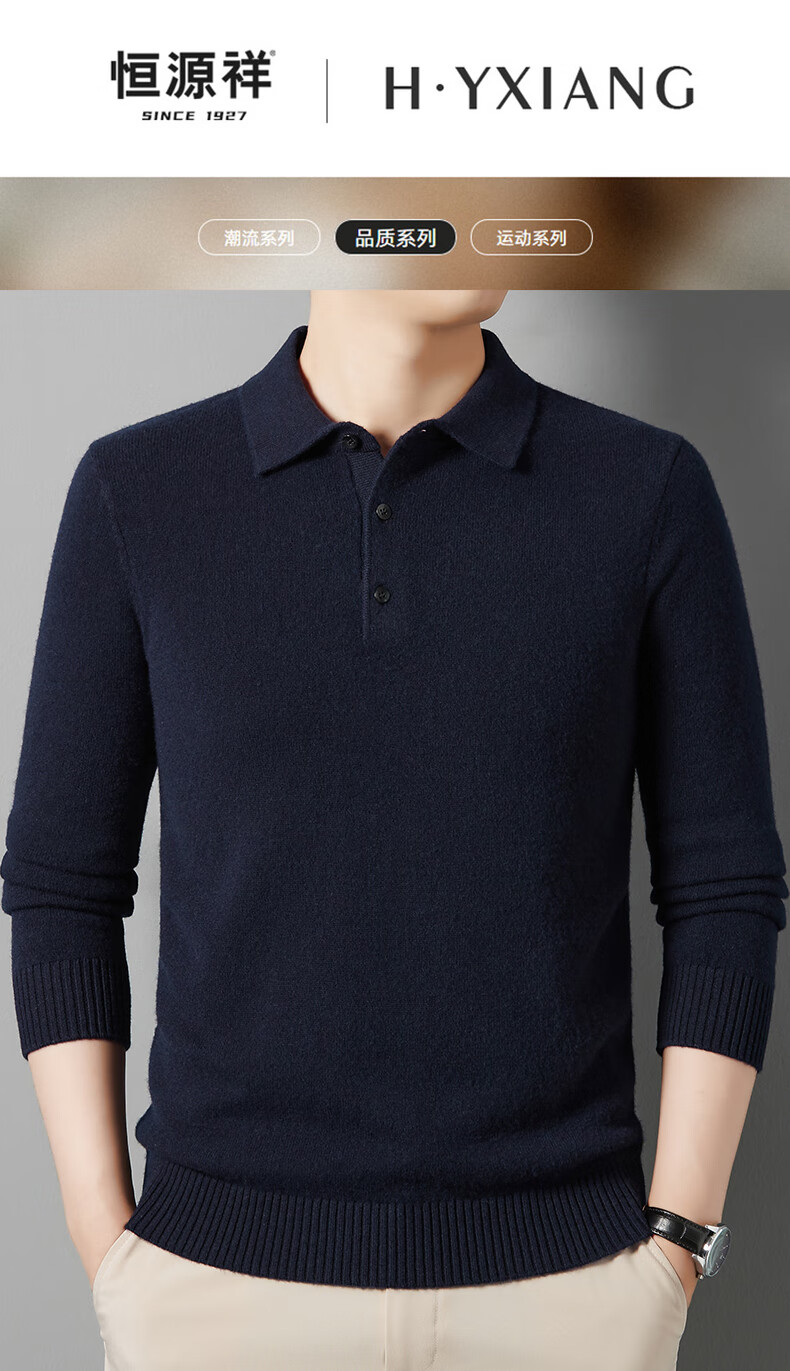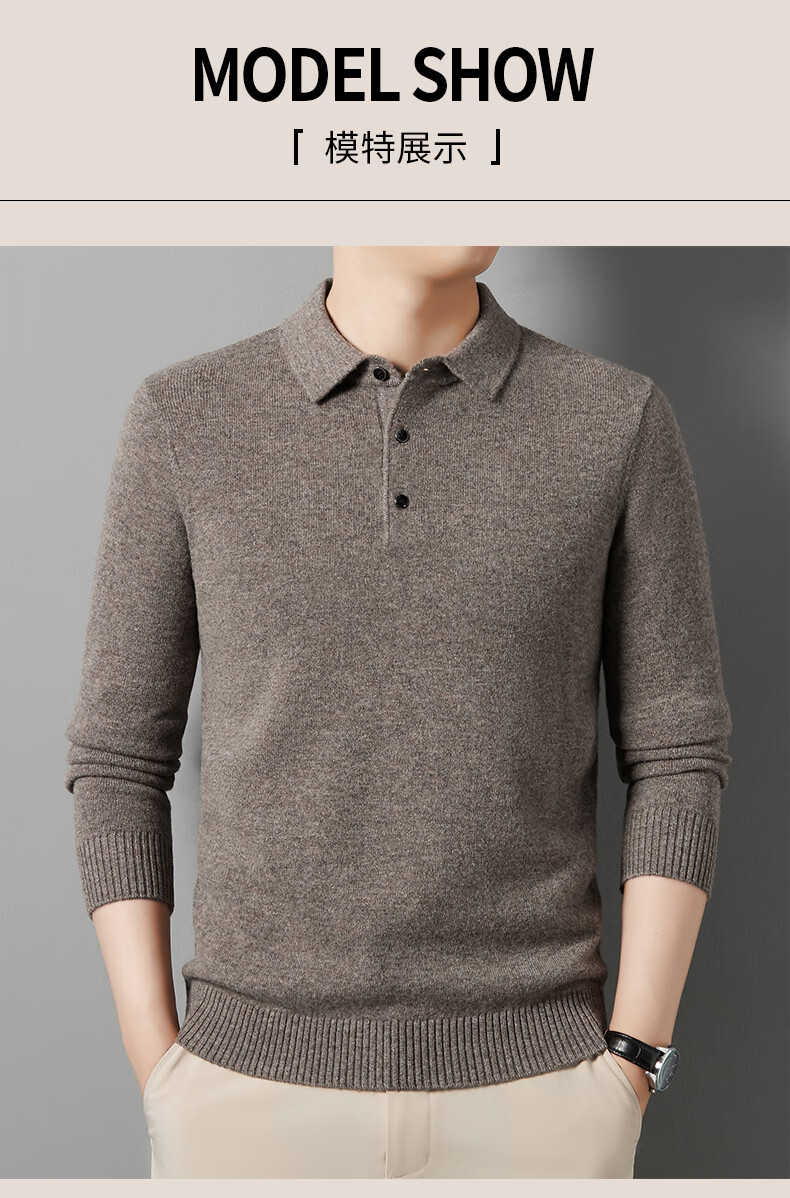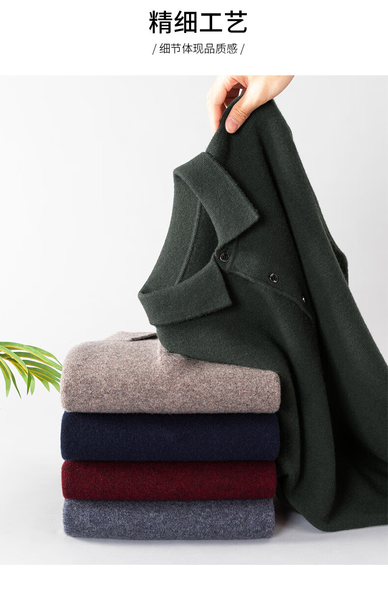 恒源祥纯羊毛衫男士秋冬加厚翻领针织衫商务休闲套头毛衣