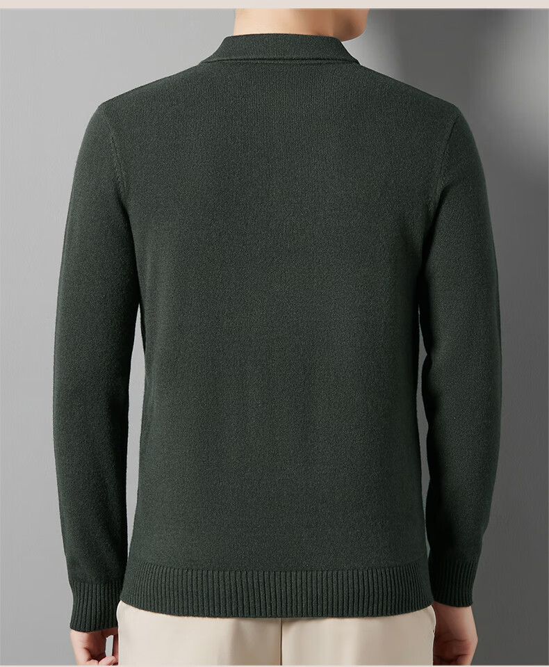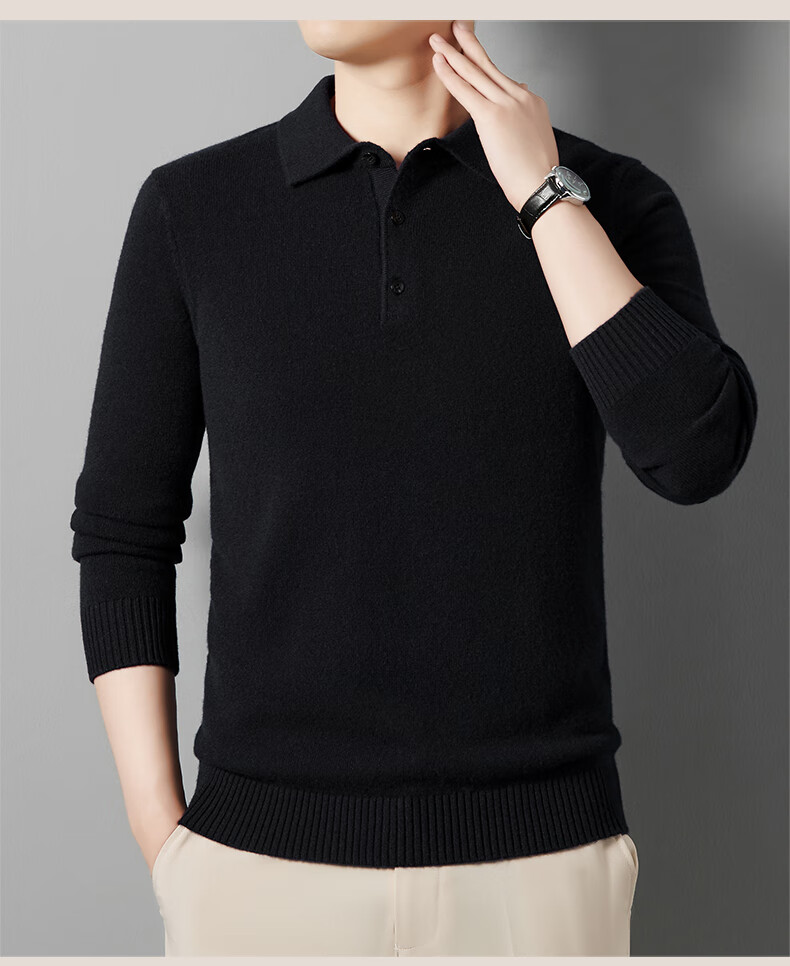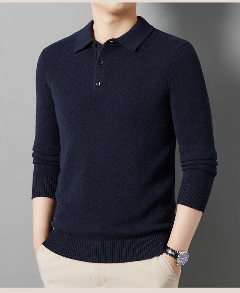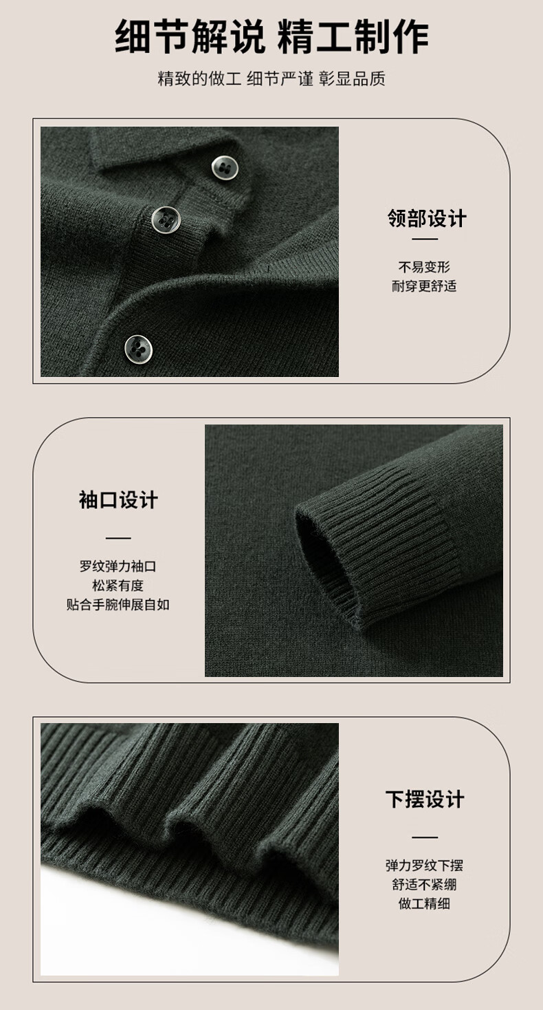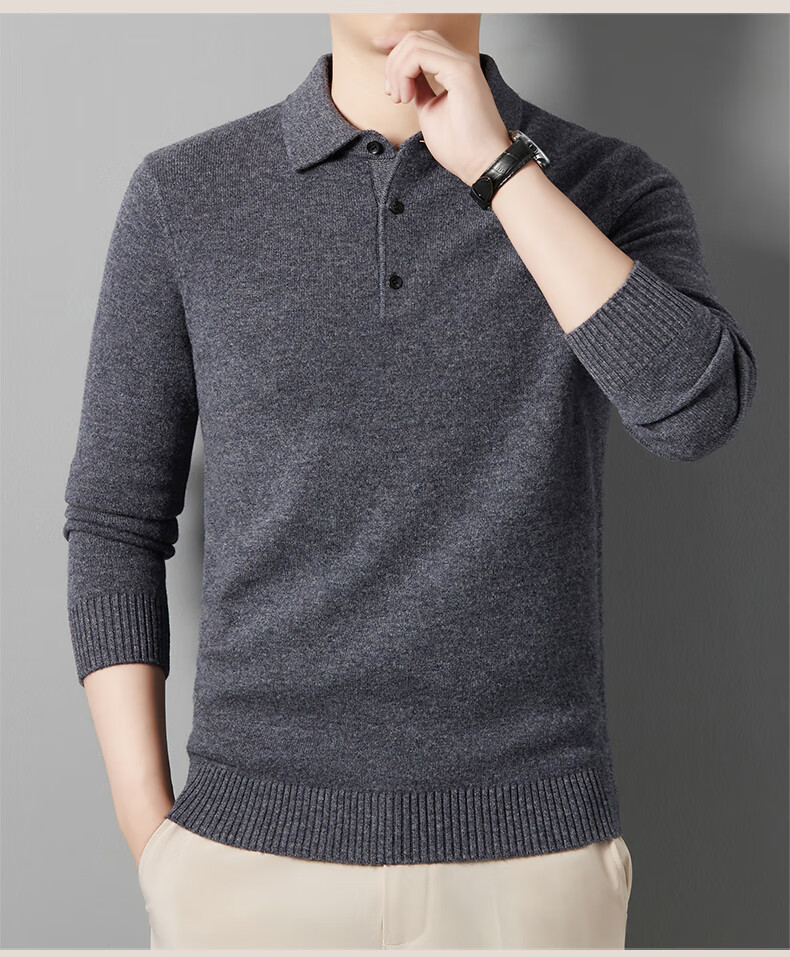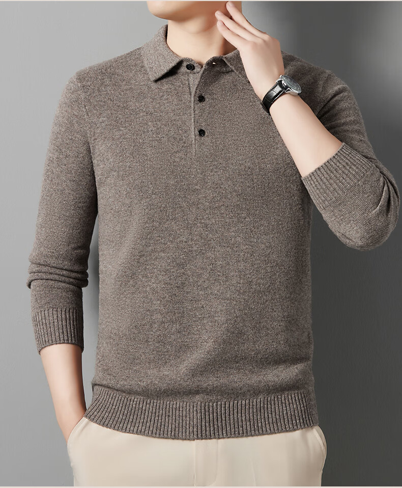 恒源祥纯羊毛衫男士秋冬加厚翻领针织衫商务休闲套头毛衣