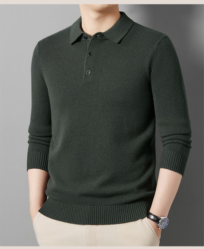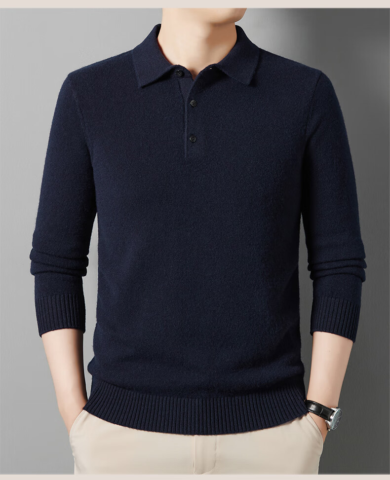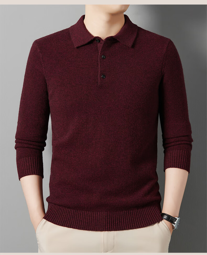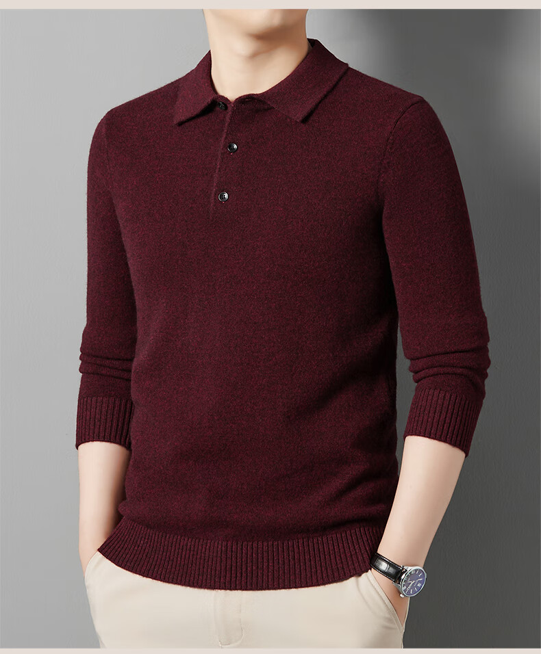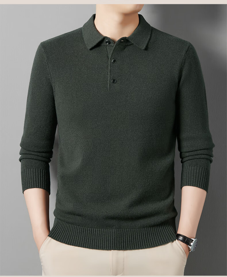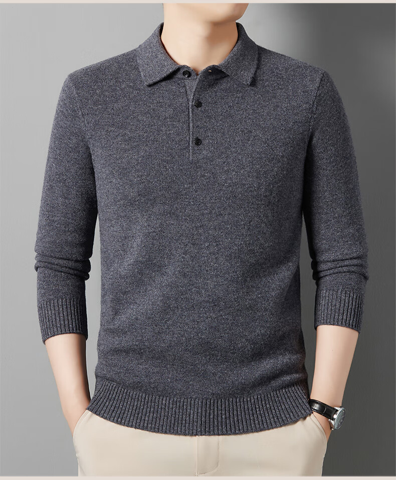 恒源祥纯羊毛衫男士秋冬加厚翻领针织衫商务休闲套头毛衣