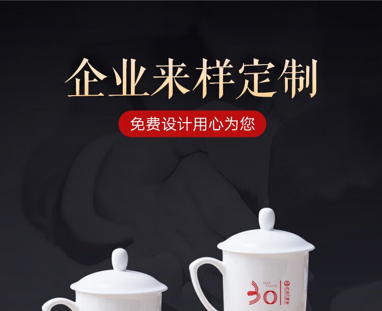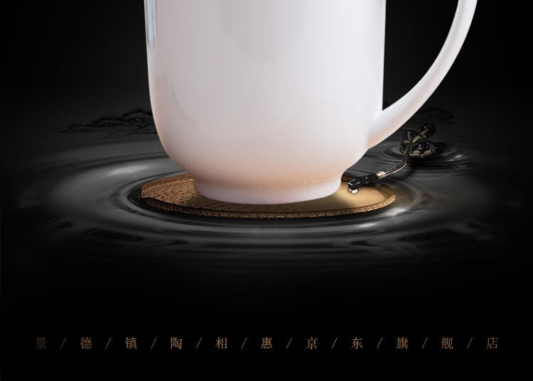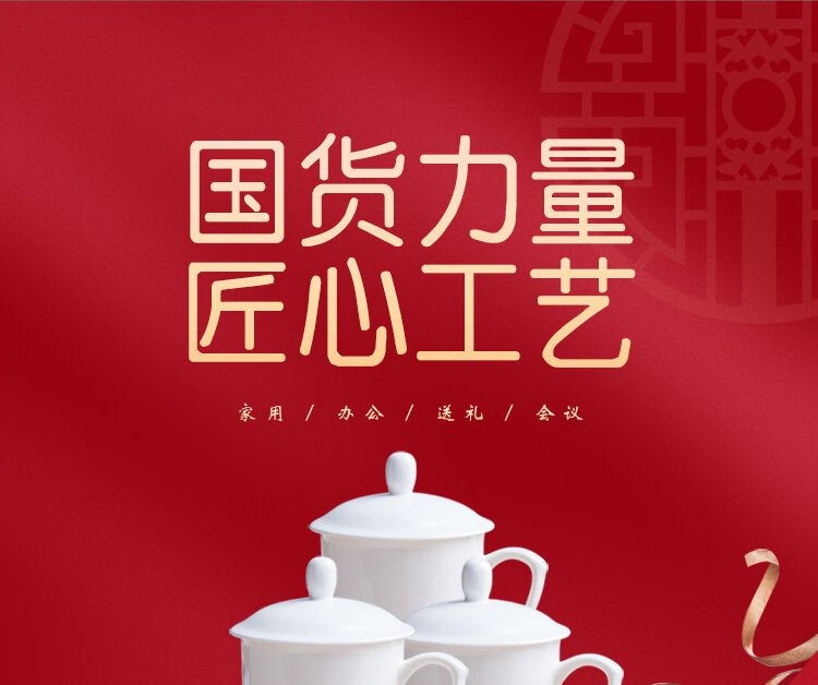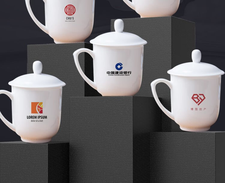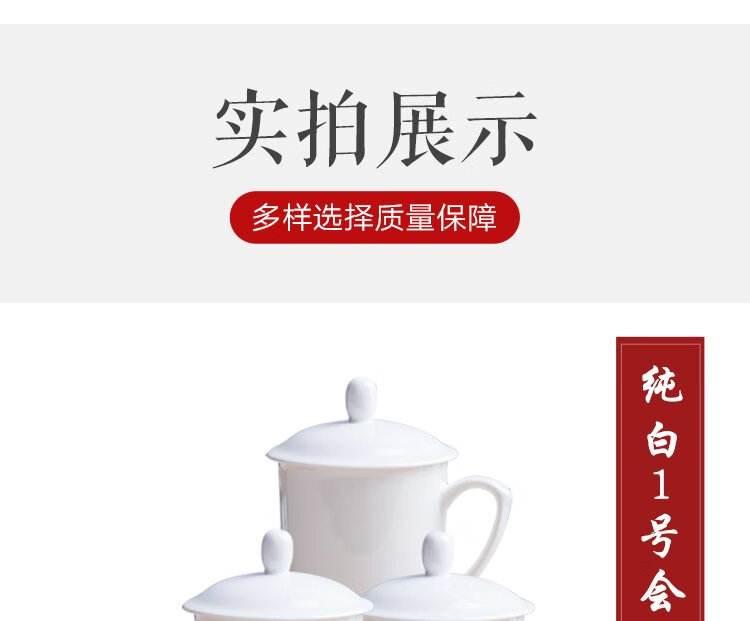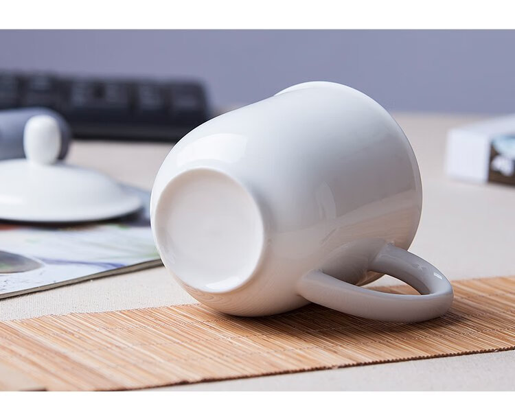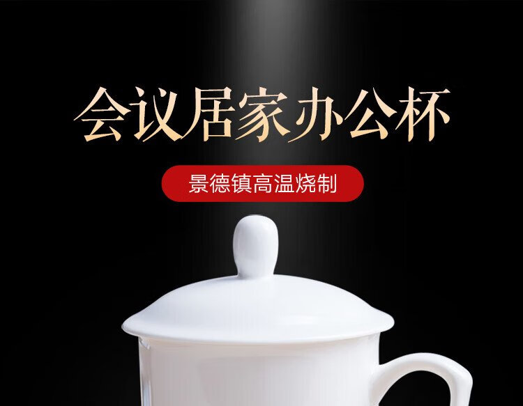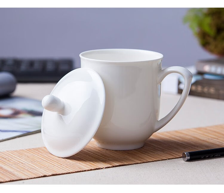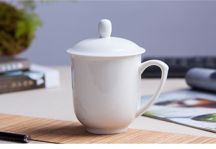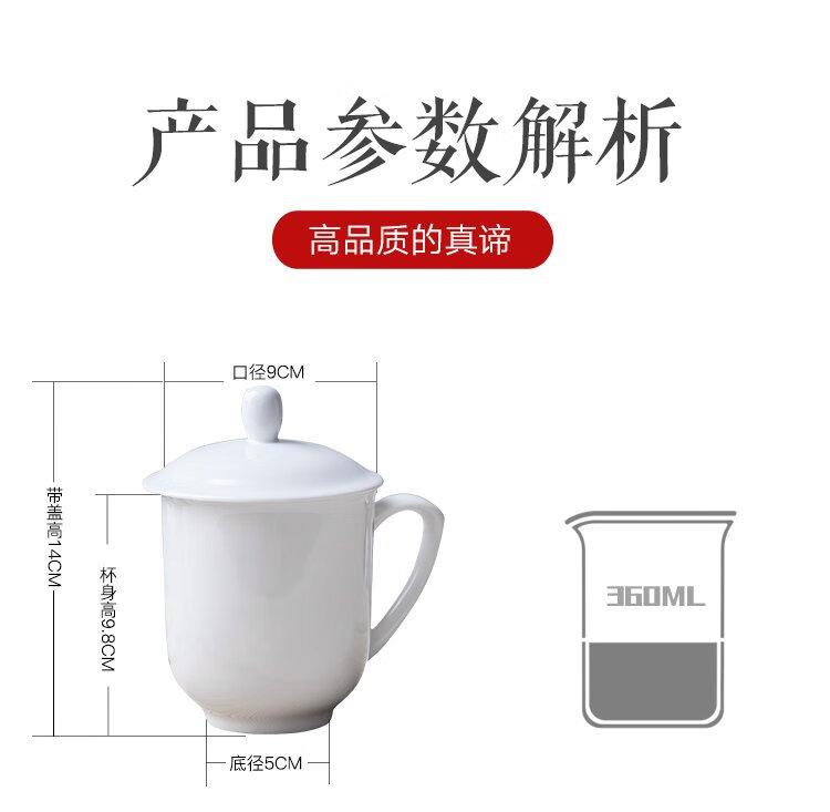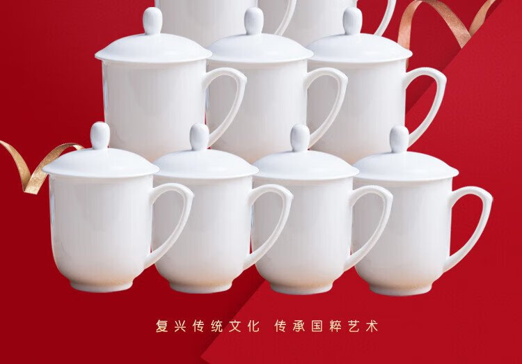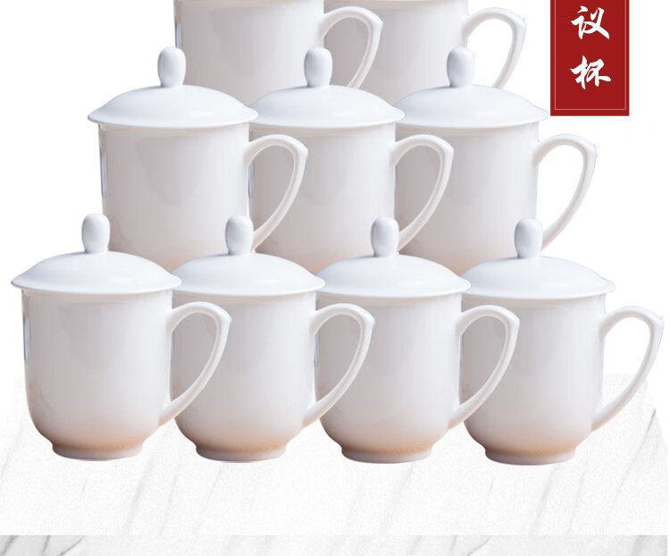 Tao Xianghui ceramic tea cup with lid office meeting water cup 10-piece set pure white business cup meeting cup 360ml
