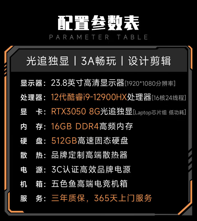 Five Color Fish 16-core desktop computer console game design office commercial home complete set (Core i9-12900HX RTX3050 16G 512G) 23.8 inches