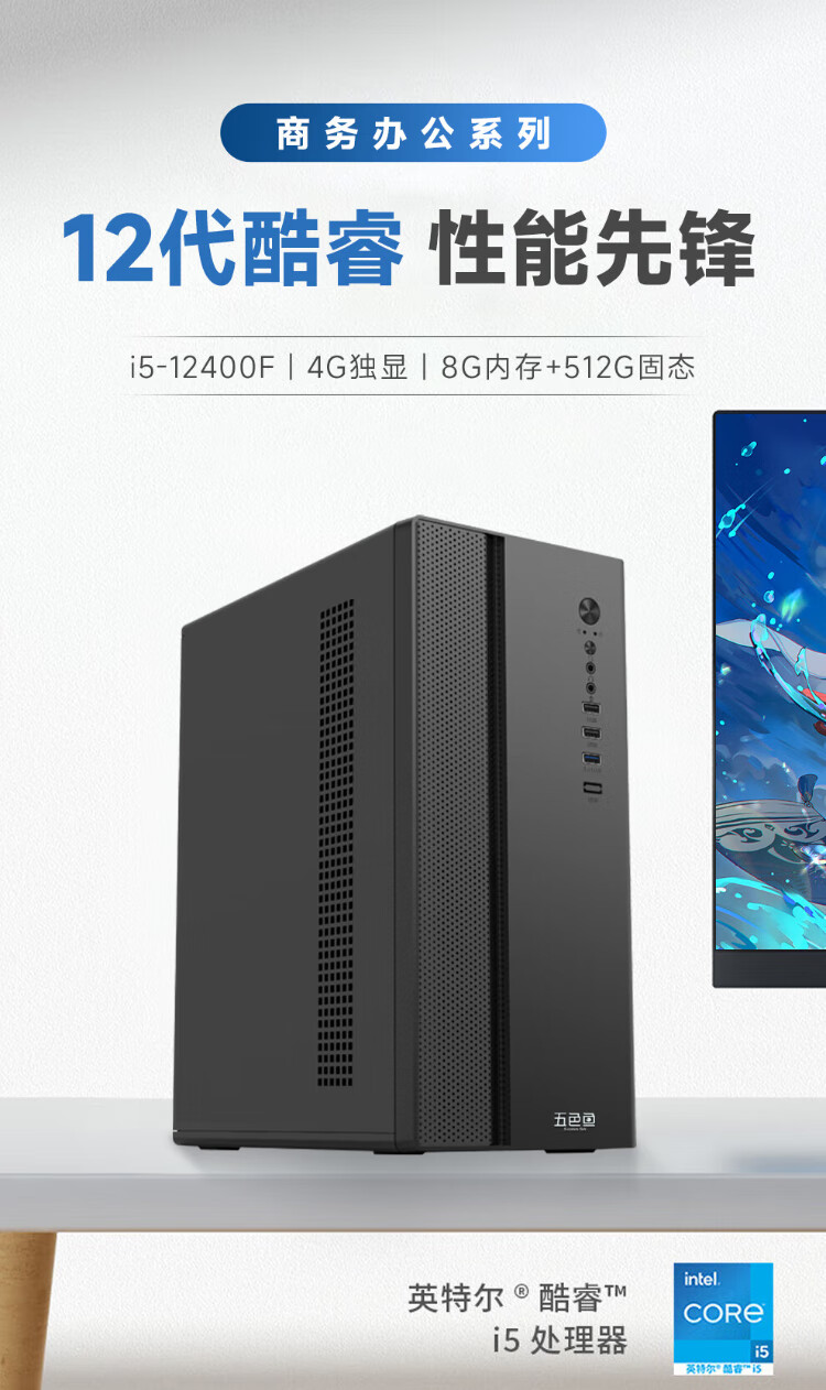 Five Color Fish Desktop Computer Host Game Office Home Mini Desktop Machine (Core i5-12400F 8G 512G 4G Independent Display Dual Band WiFi) 27 inches