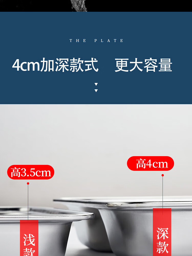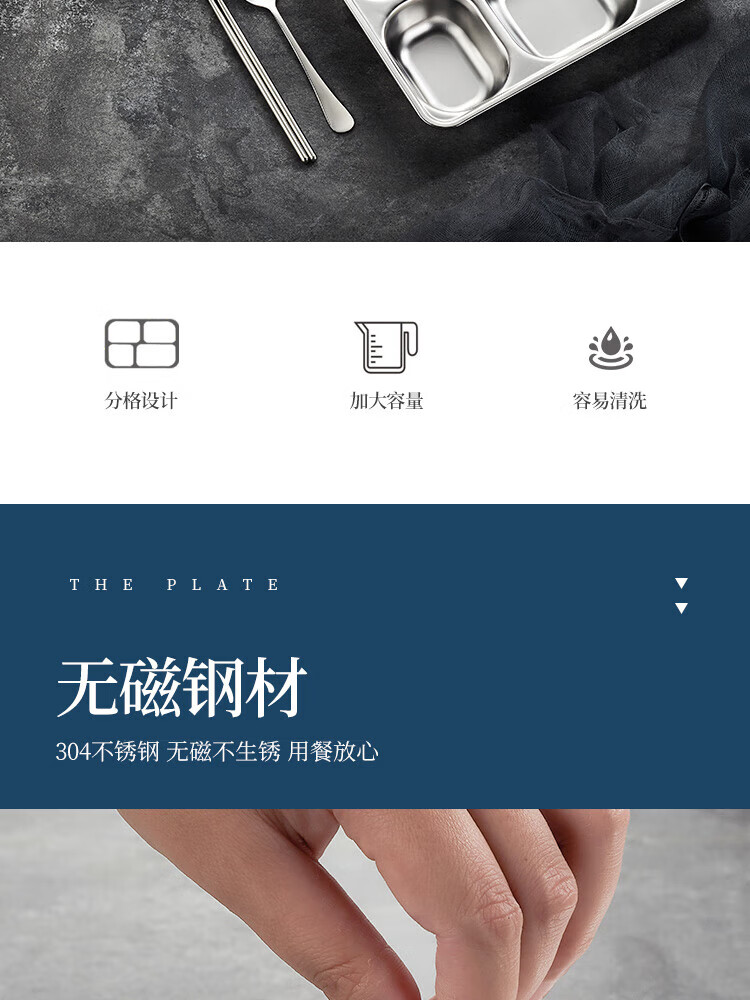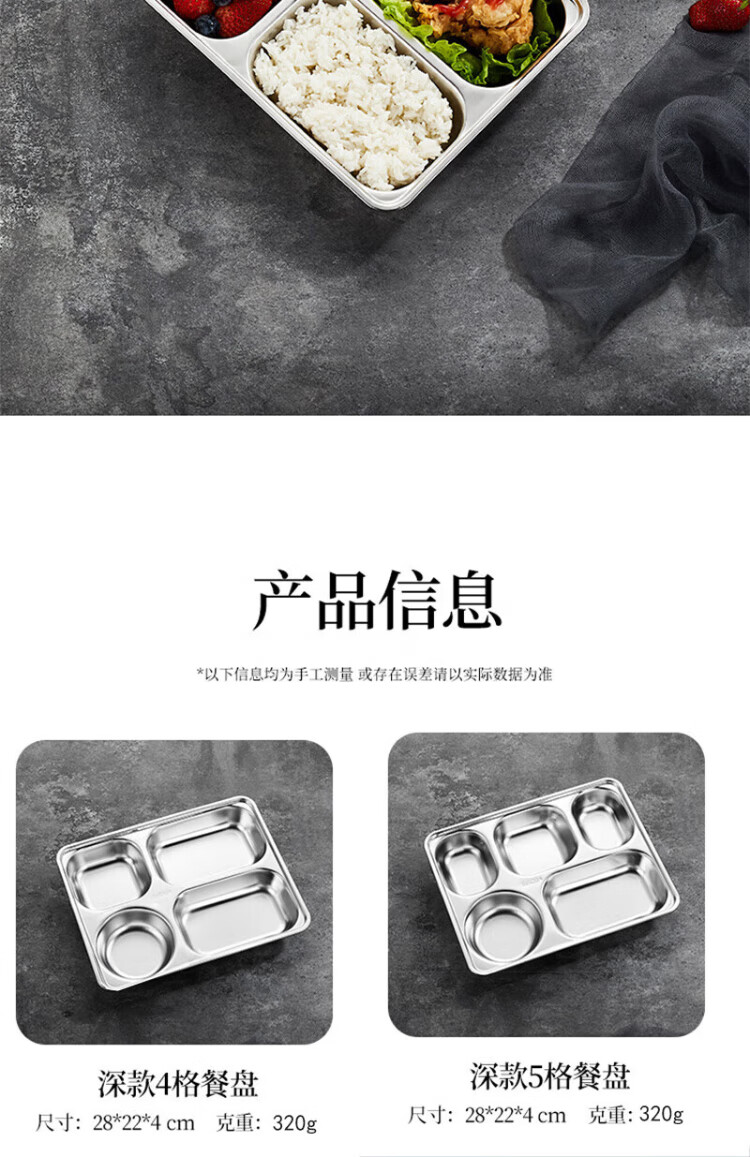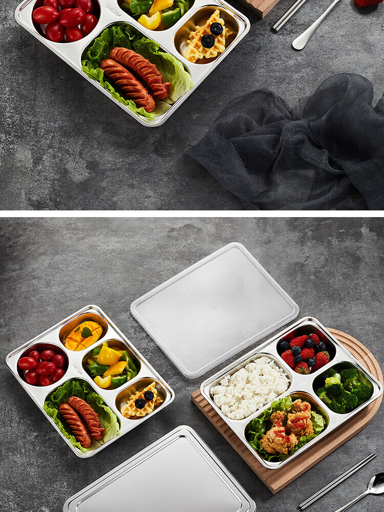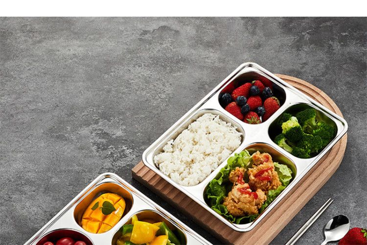 Venus 304 stainless steel partitioned fast food tray canteen adult four-grid and five-grid rectangular rice tray fast food box deepened and thickened