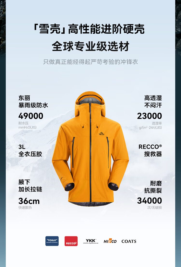 Pelliot Cheng Yi same style snow shell jacket for men and women outdoor hard shell waterproof jacket mountaineering suit 105301056 yellow XL