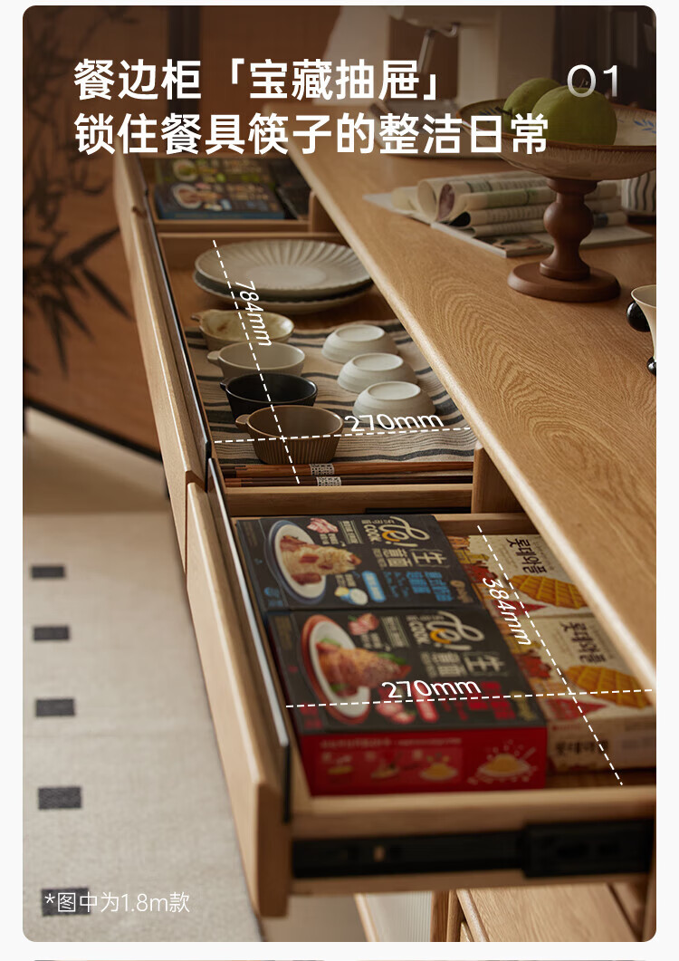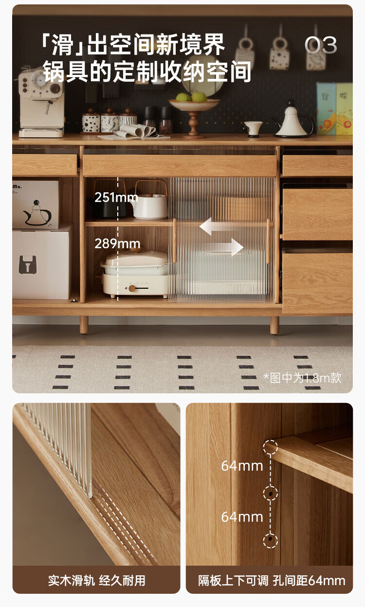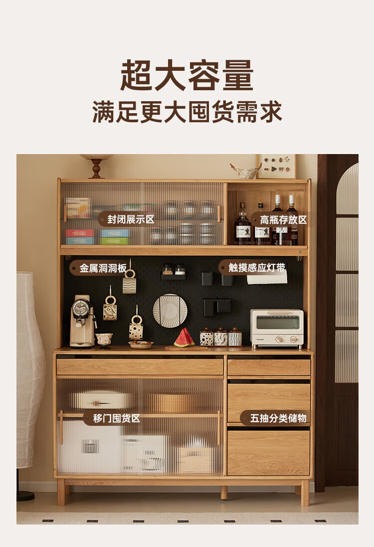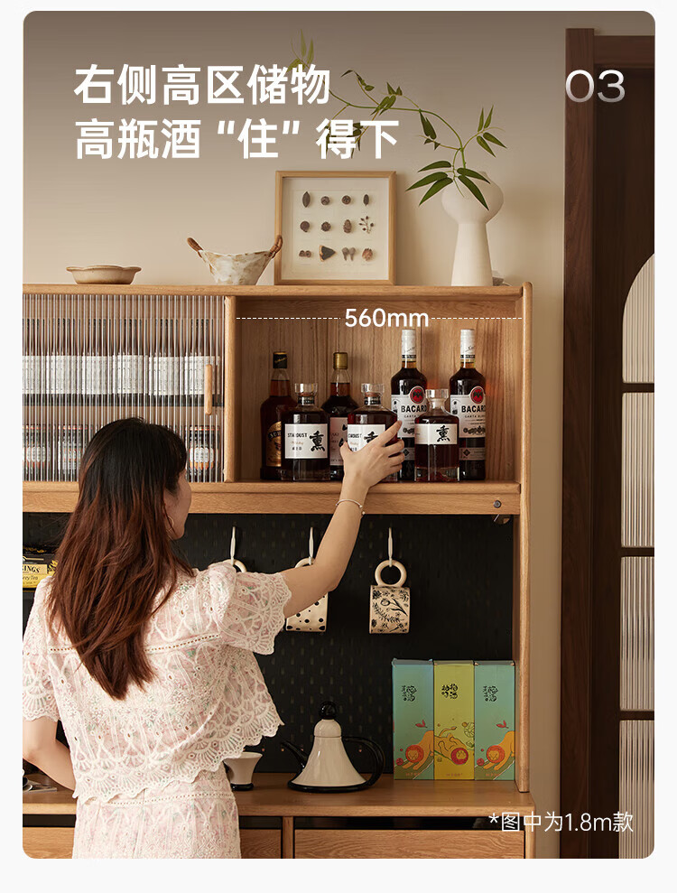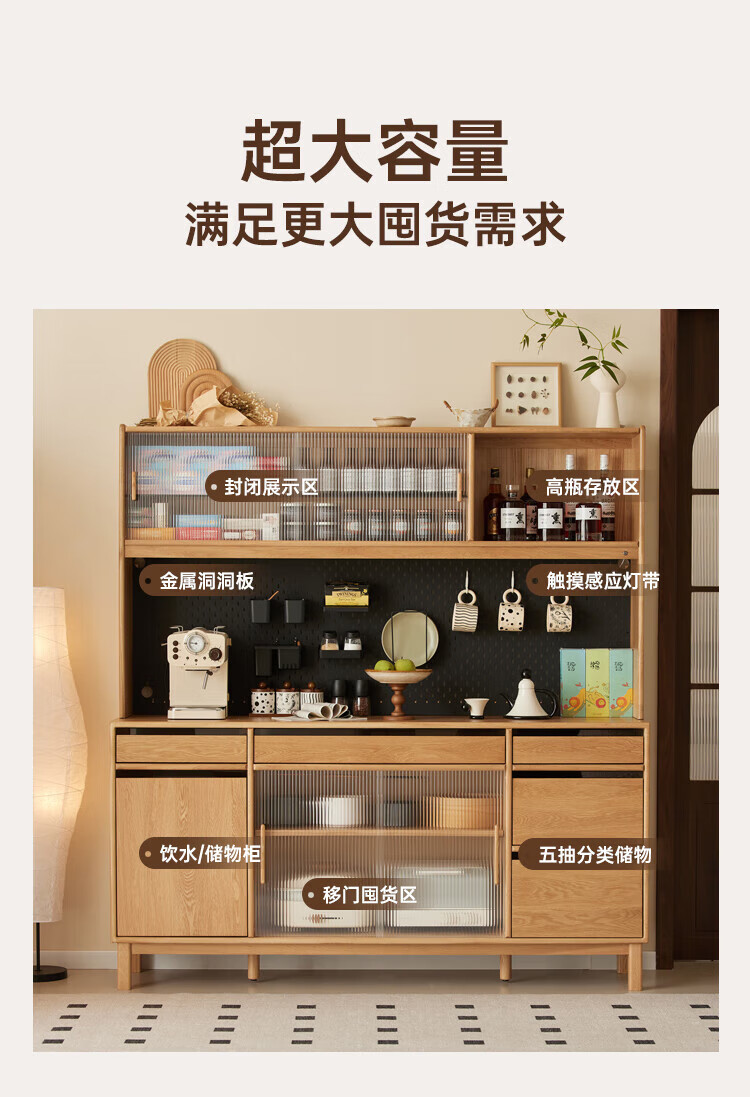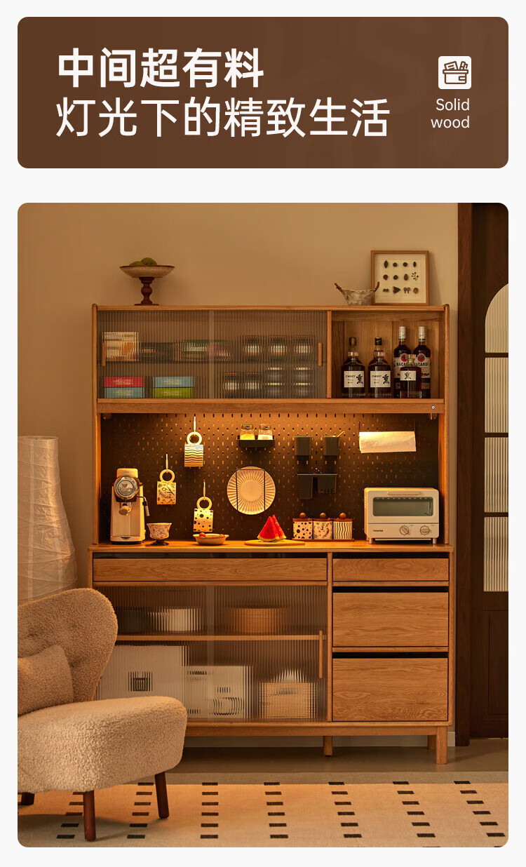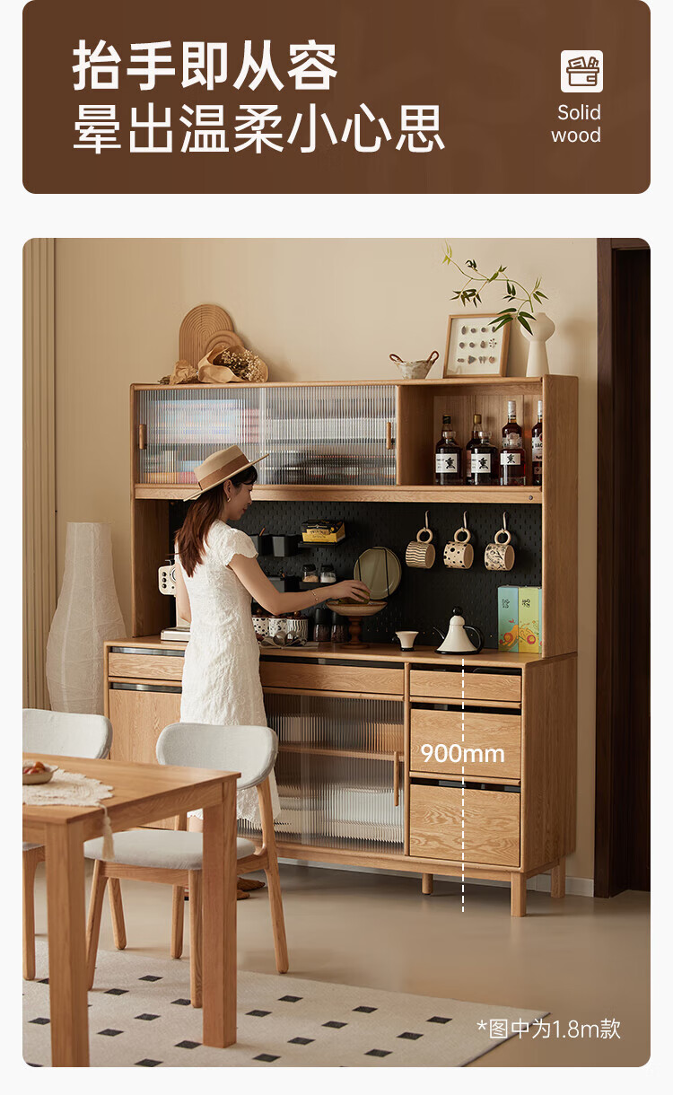 Original element solid wood sideboard integrated household modern simple storage cabinet white oak tea cabinet 1.8m with electric rail Q6142