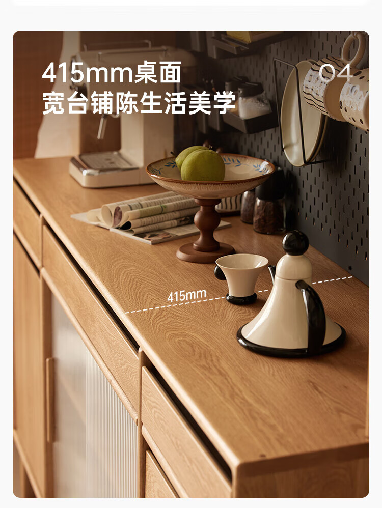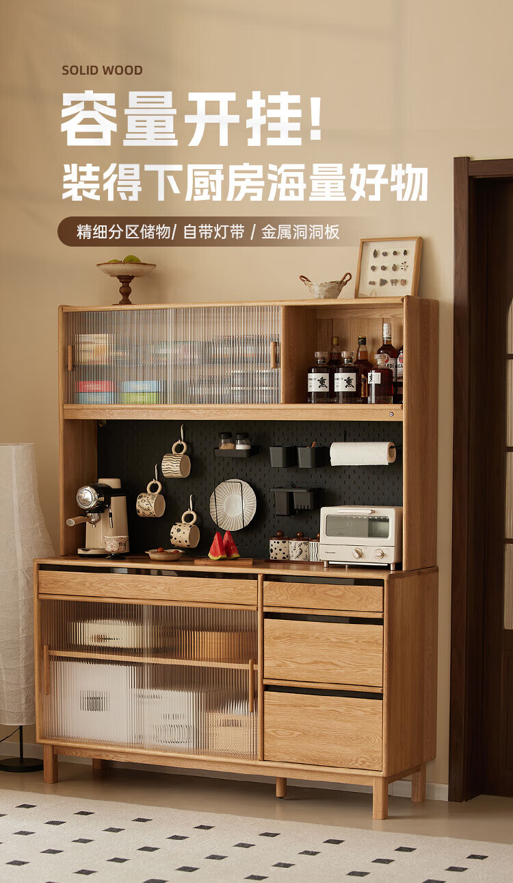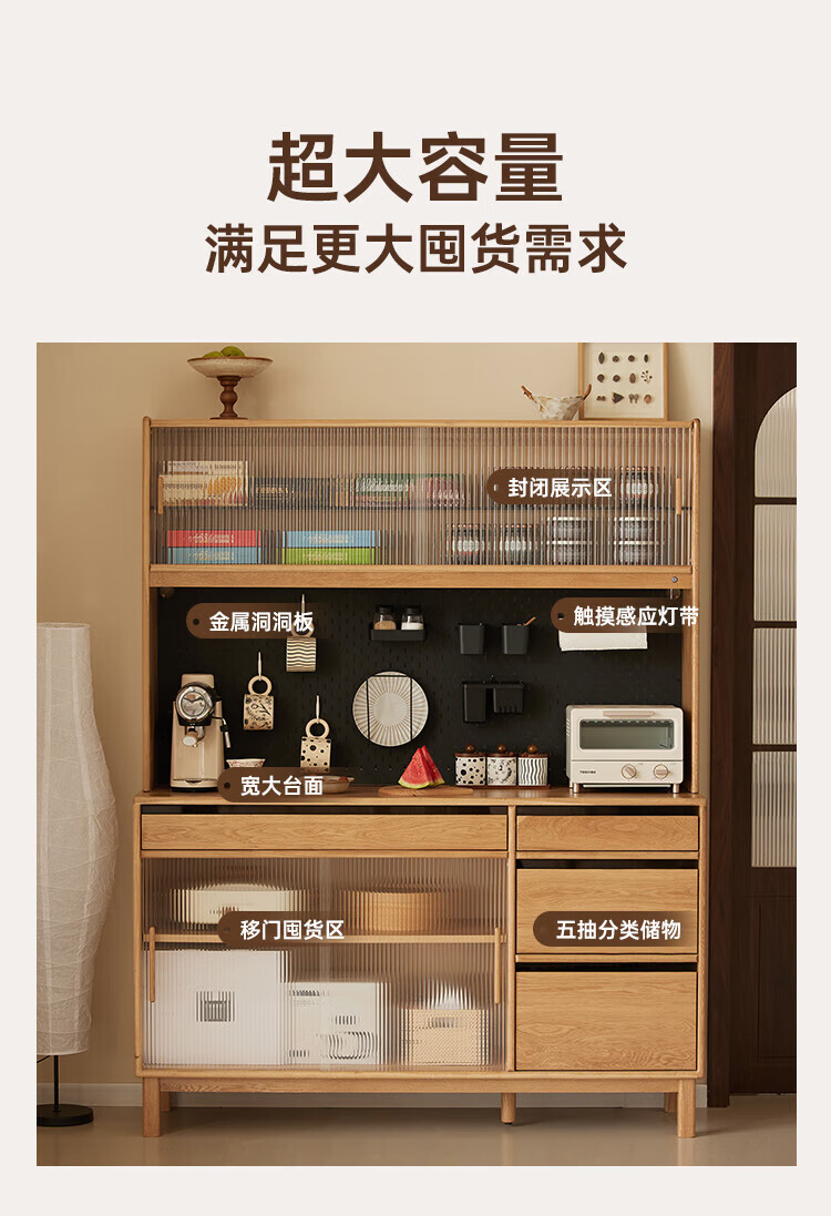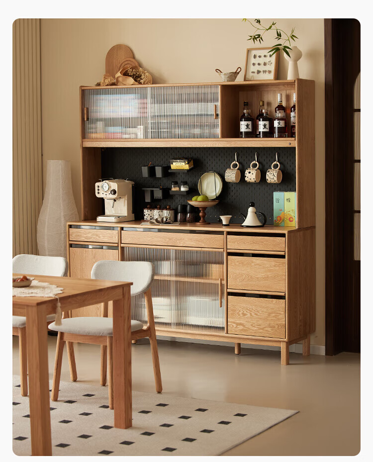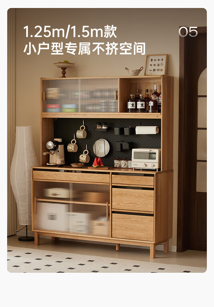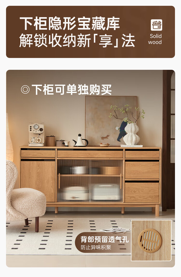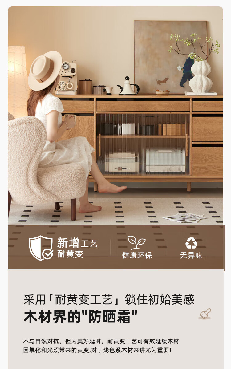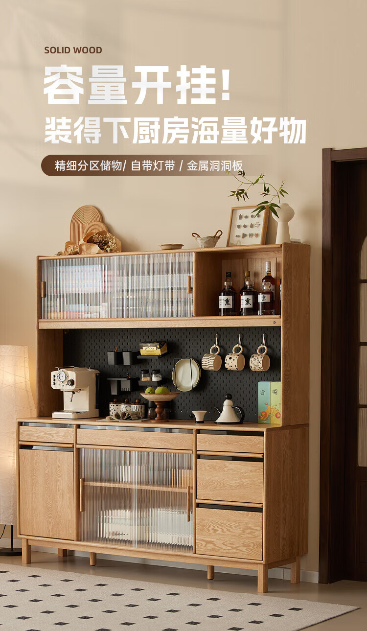 Original element solid wood sideboard integrated household modern simple storage cabinet white oak tea cabinet 1.8m with electric rail Q6142