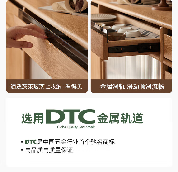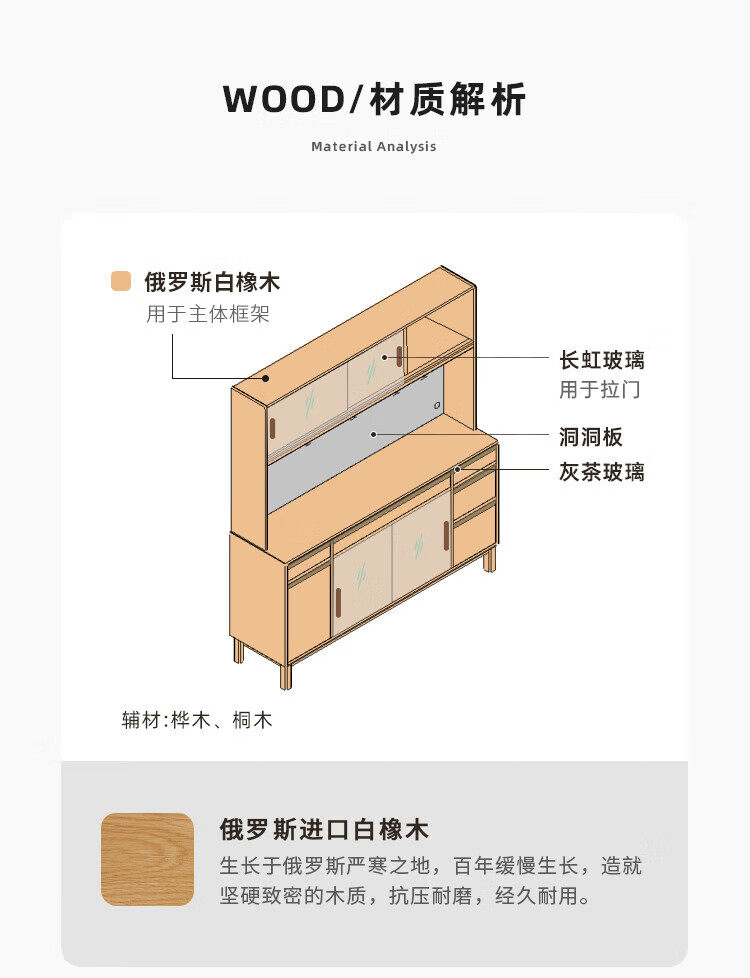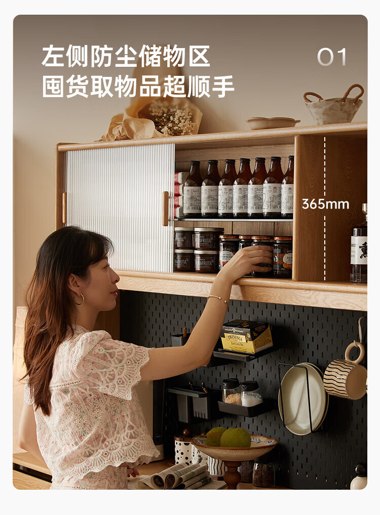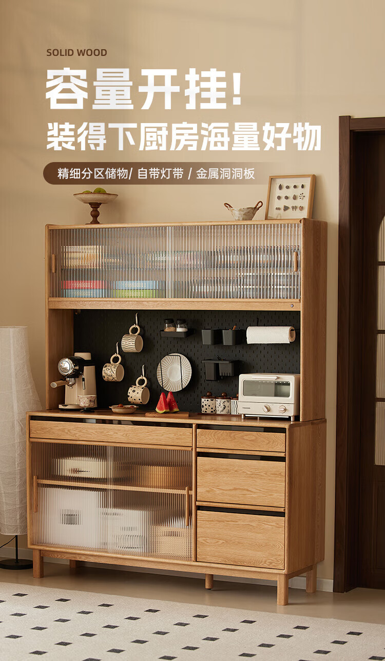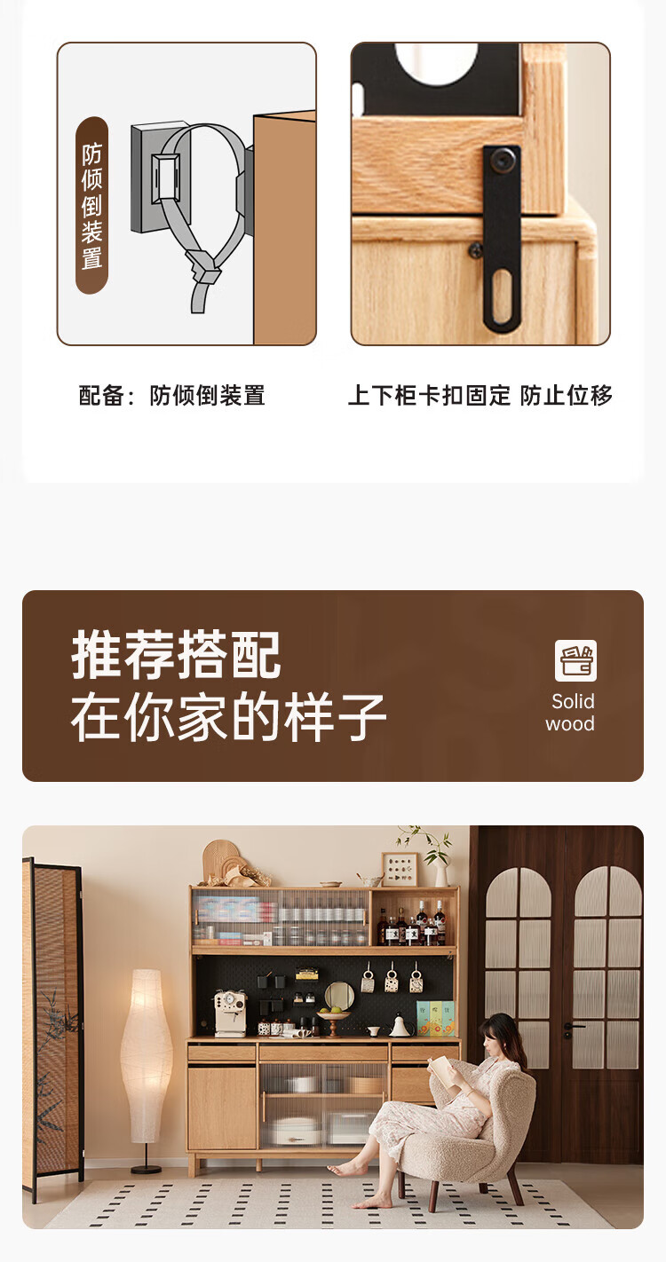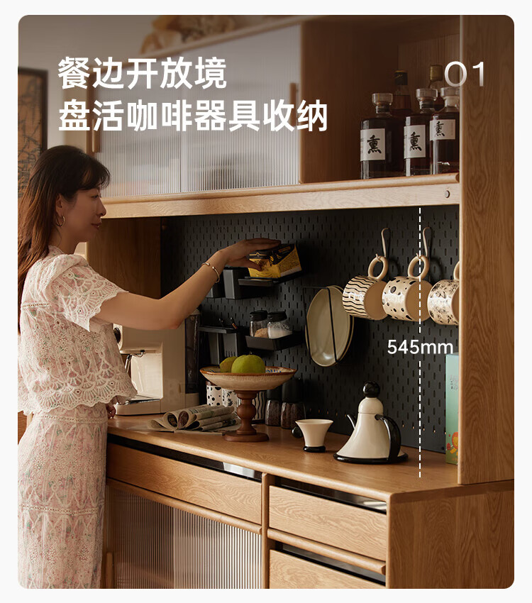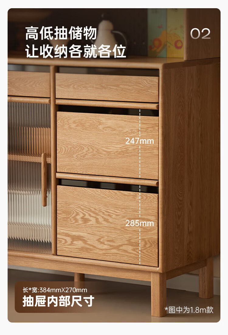 Original element solid wood sideboard integrated household modern simple storage cabinet white oak tea cabinet 1.8m with electric rail Q6142