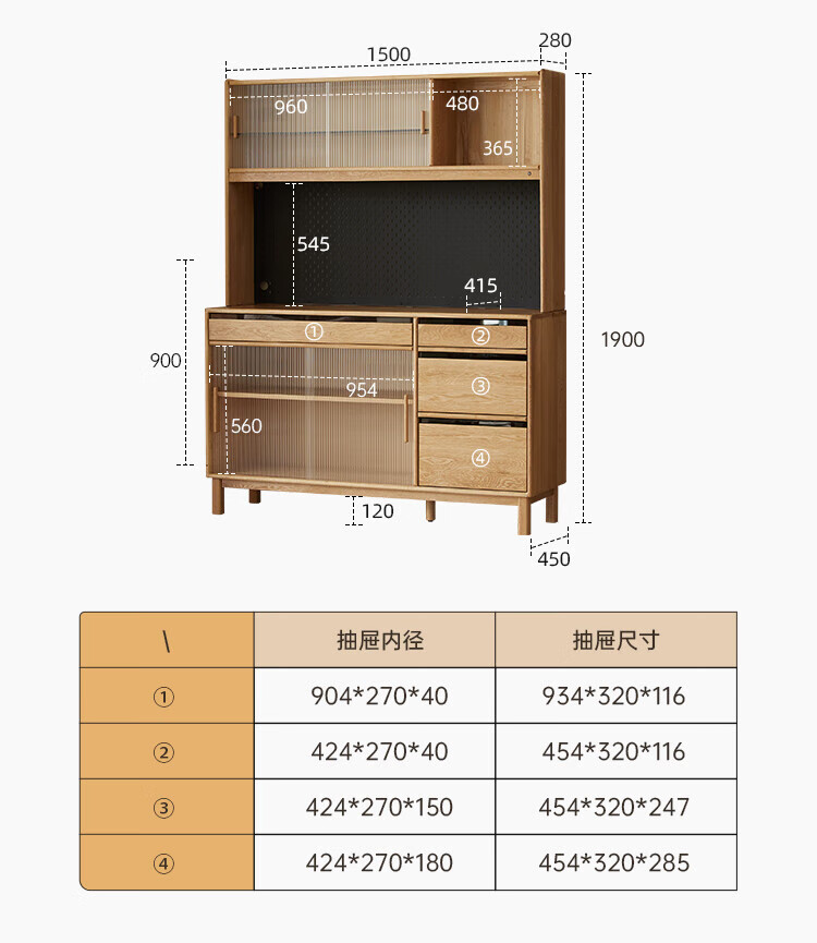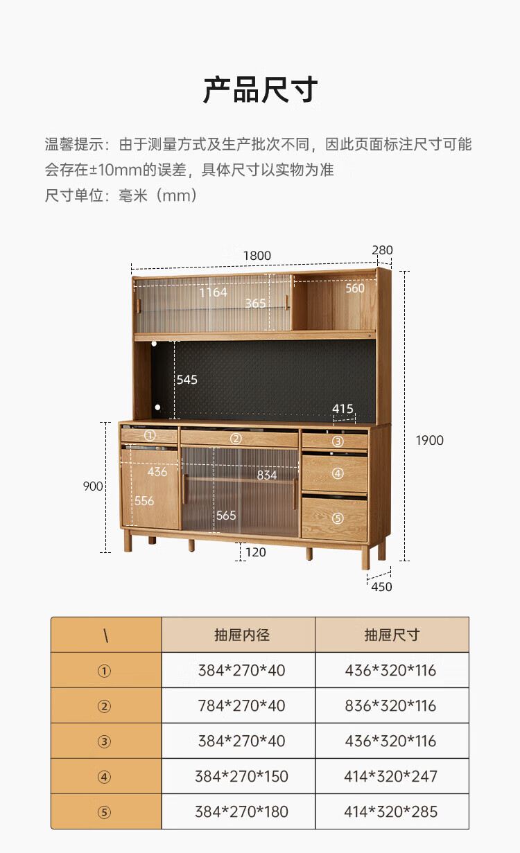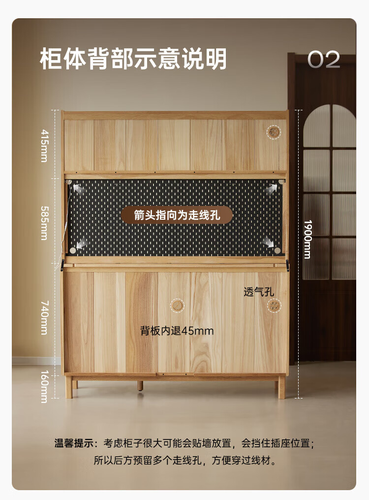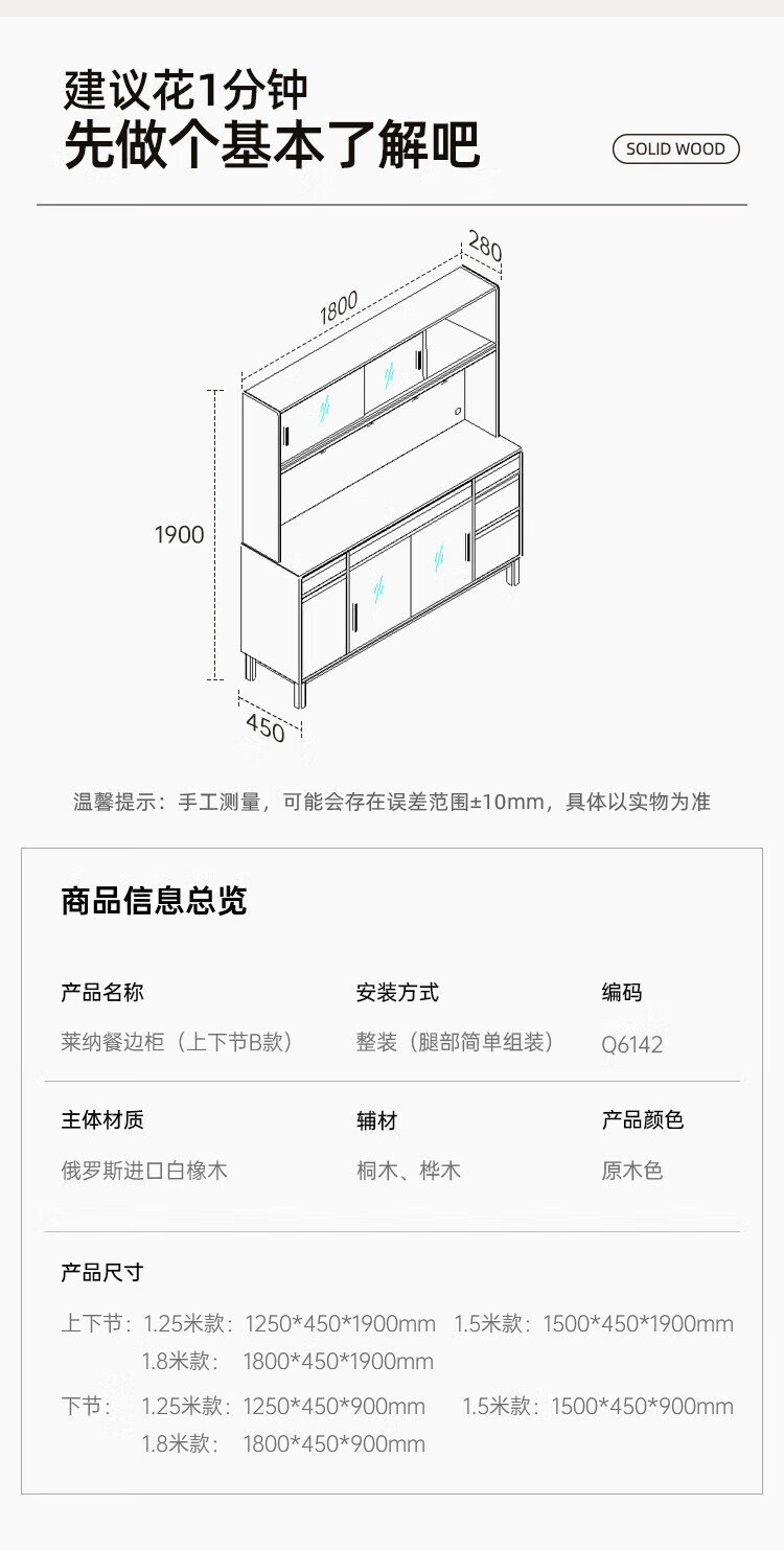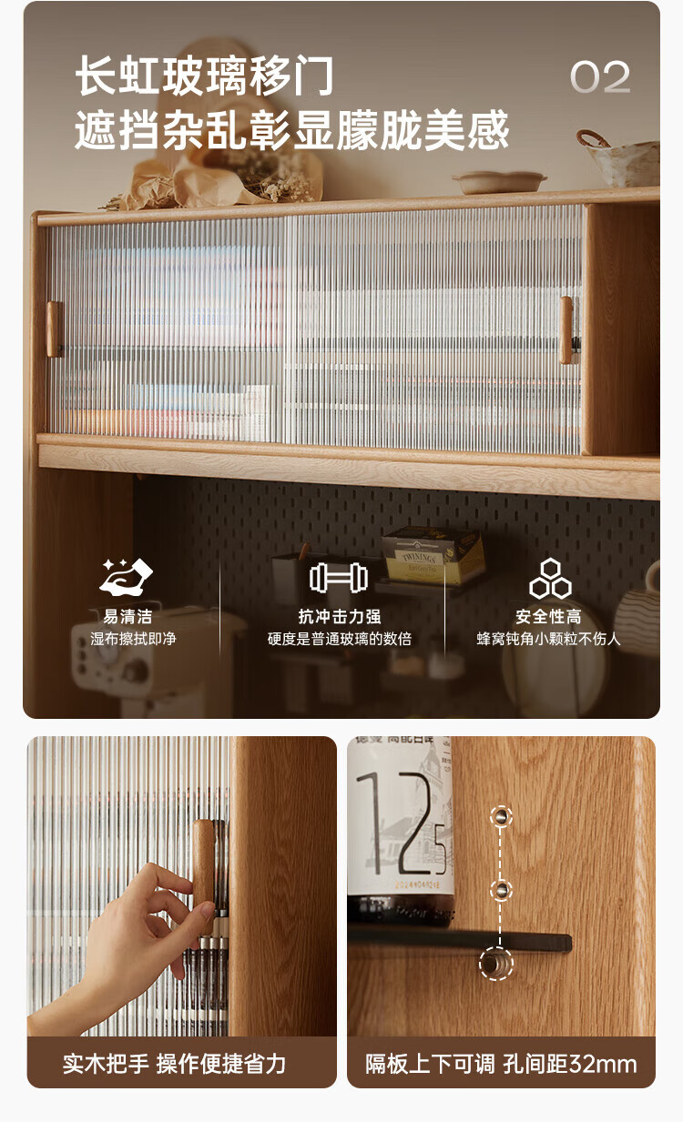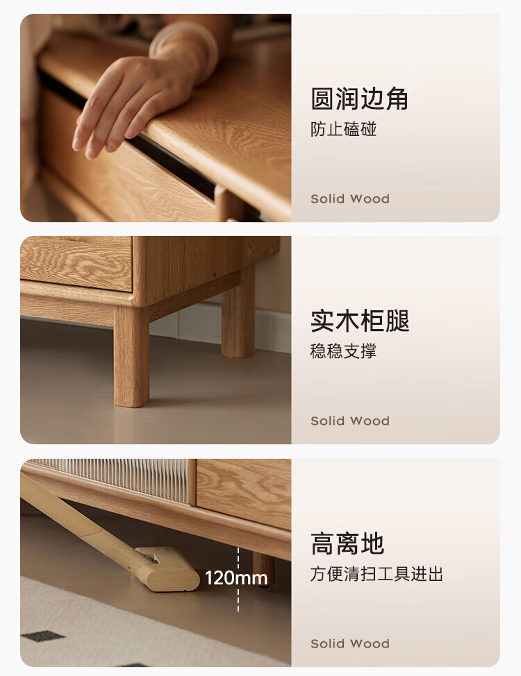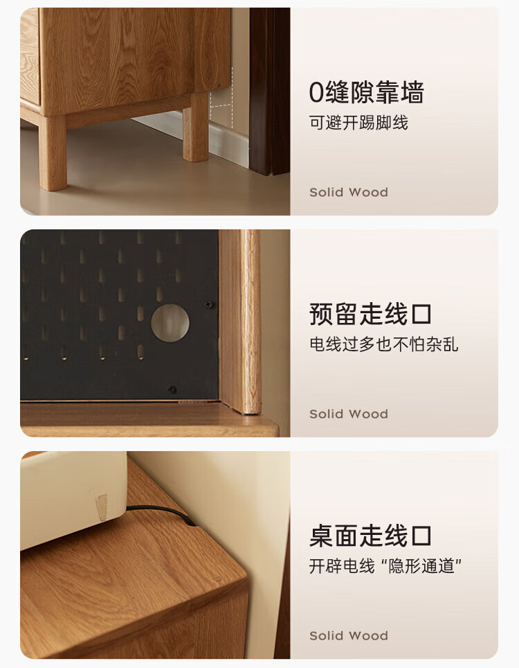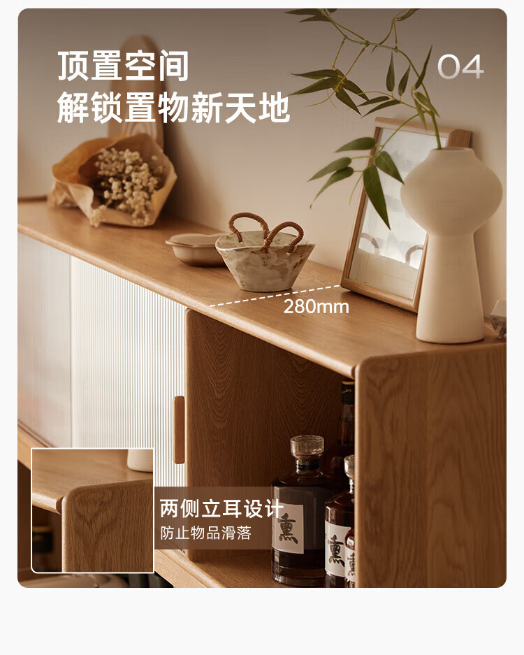 Original element solid wood sideboard integrated household modern simple storage cabinet white oak tea cabinet 1.8m with electric rail Q6142