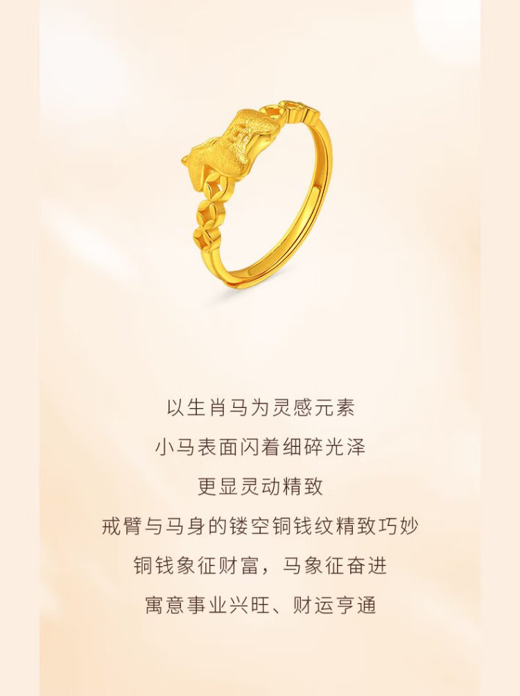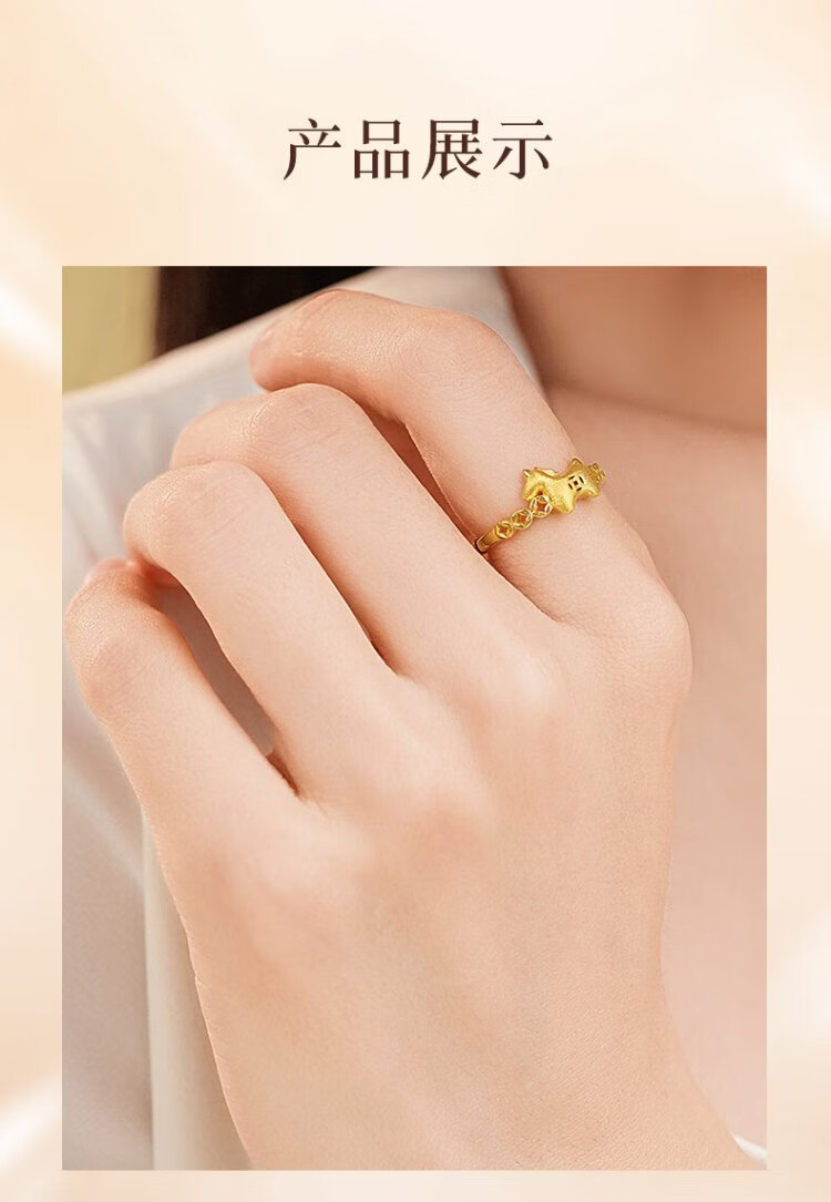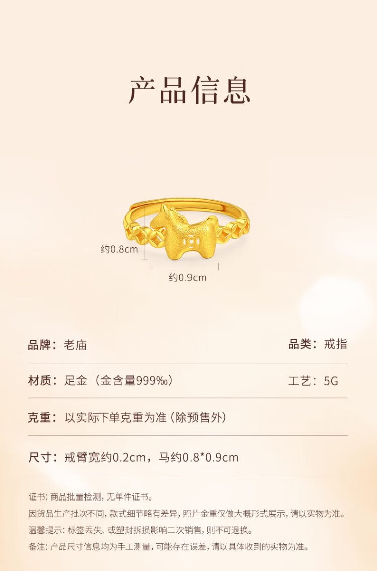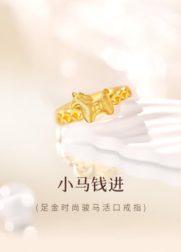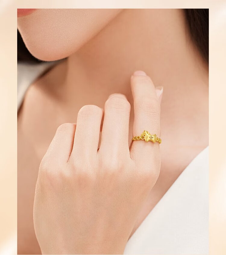Laomiao gold solid gold pony ring live mouth ring 5G exquisite pony fashion guardian immediately make money and look white