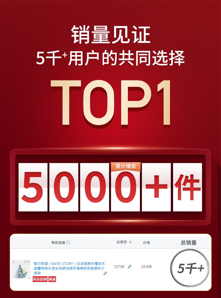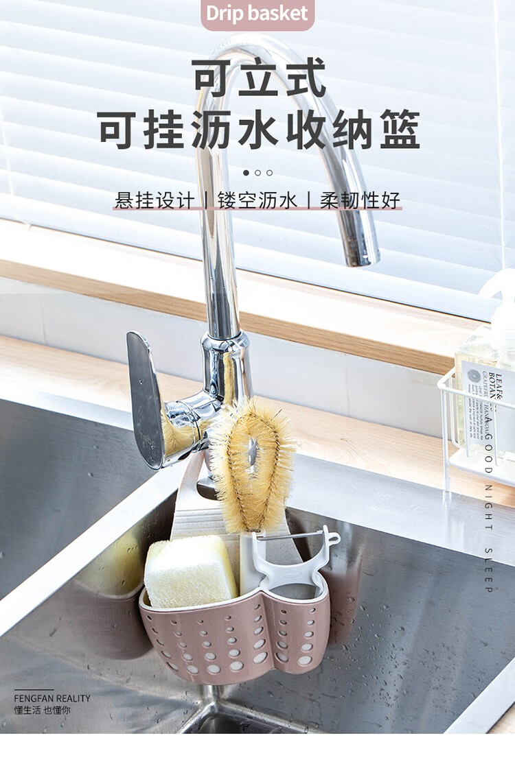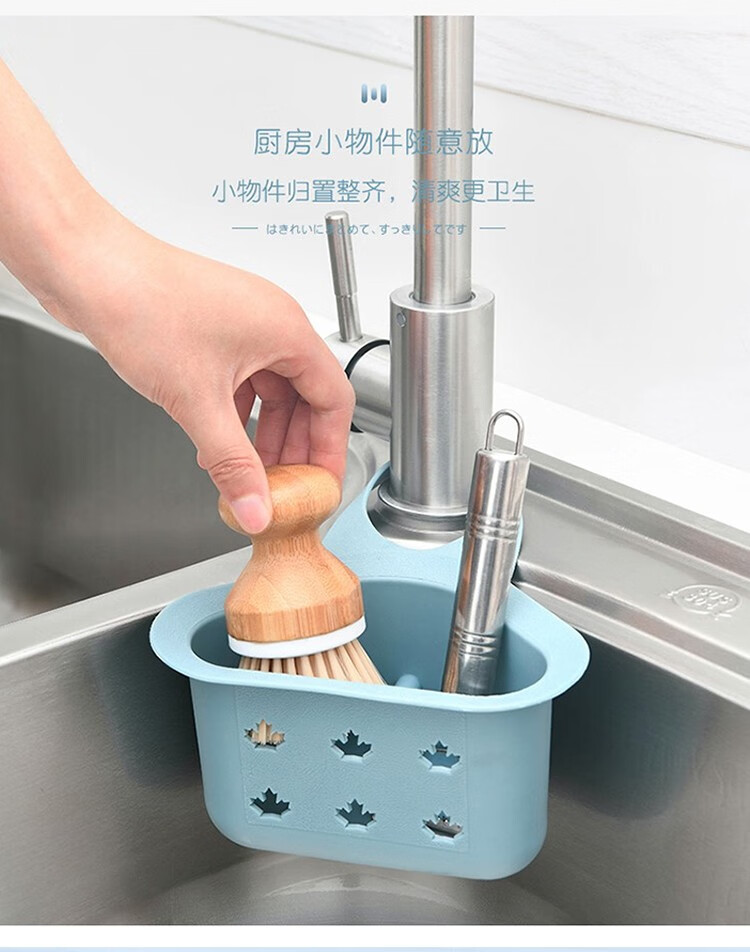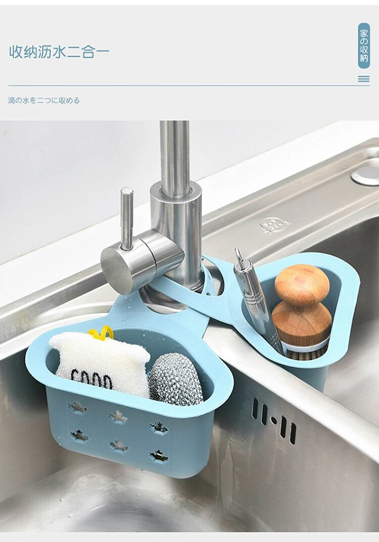 Home KATEI STORY Japanese kitchen sink drain basket storage rack faucet wash basin rag sponge storage rack plastic small hanging rack blue