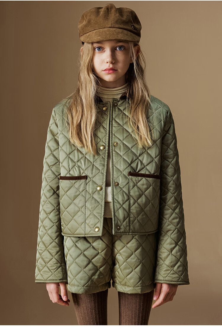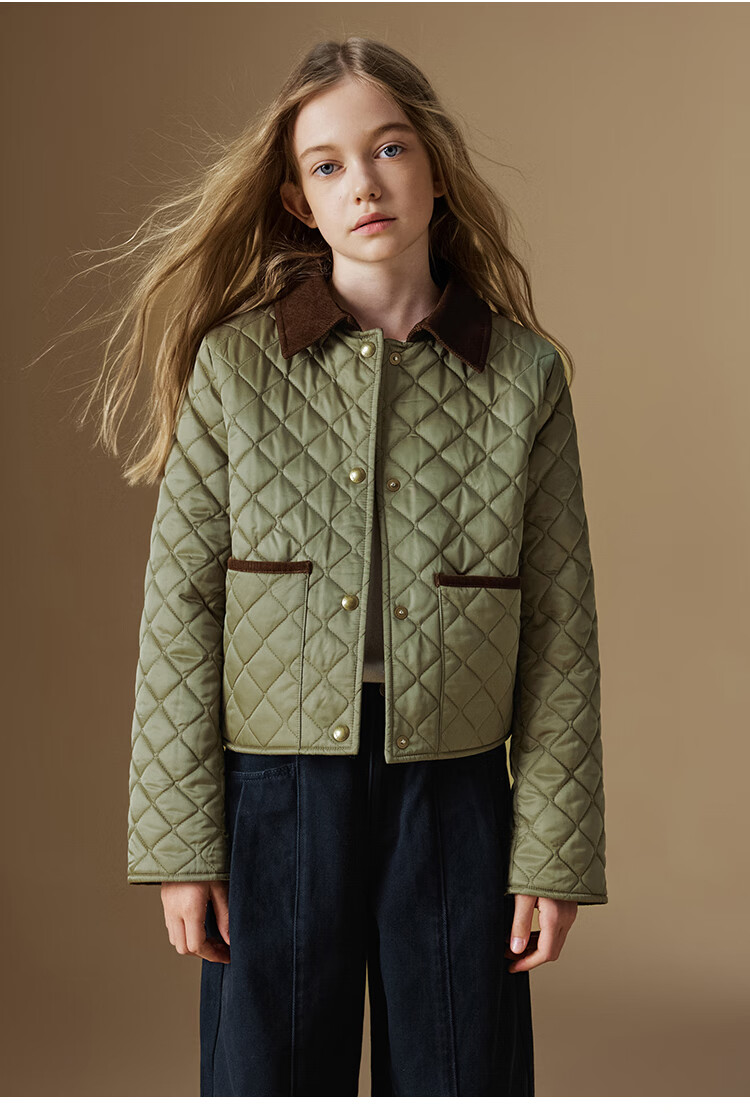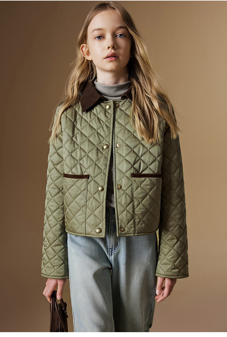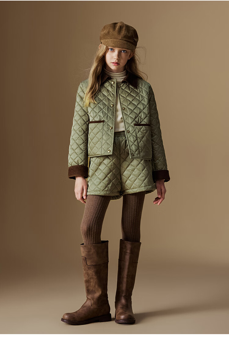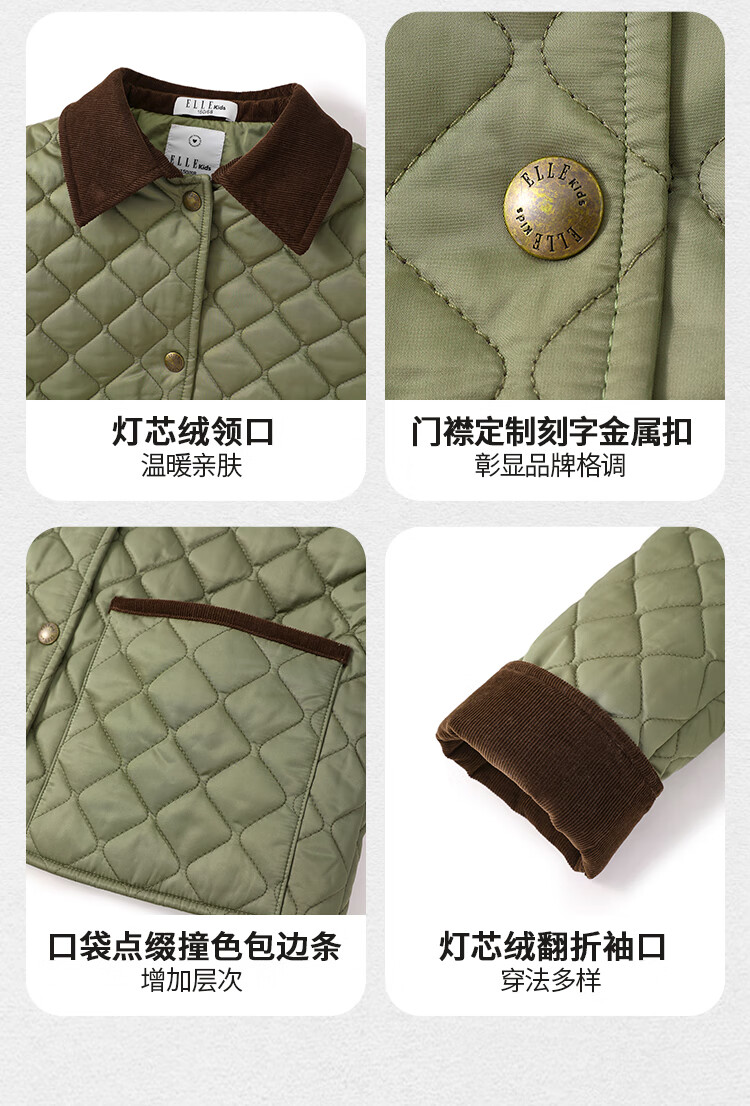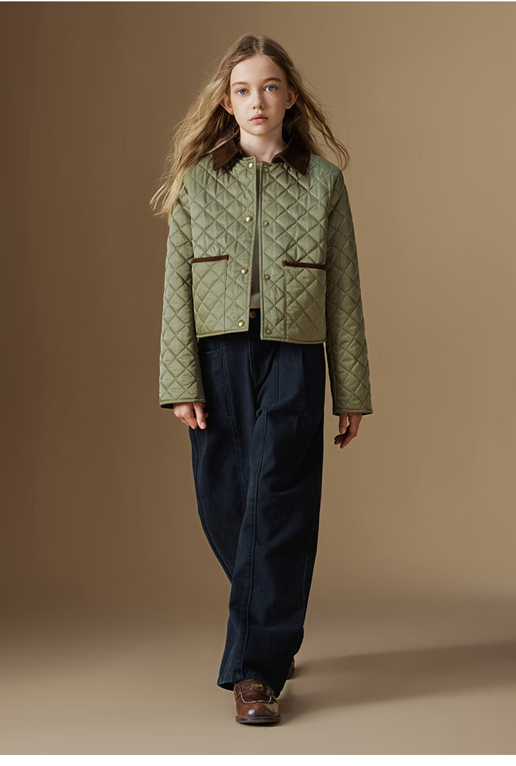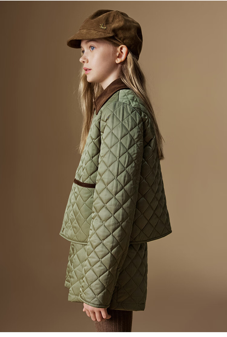 ELLE KIDS Retro Bath Style Girls Winter Cotton Jacket Contrast Color Lapel Front Shoulder Retro Fashionable Quilted Cotton Jacket