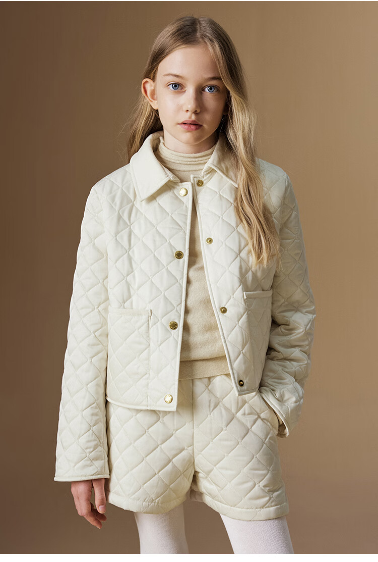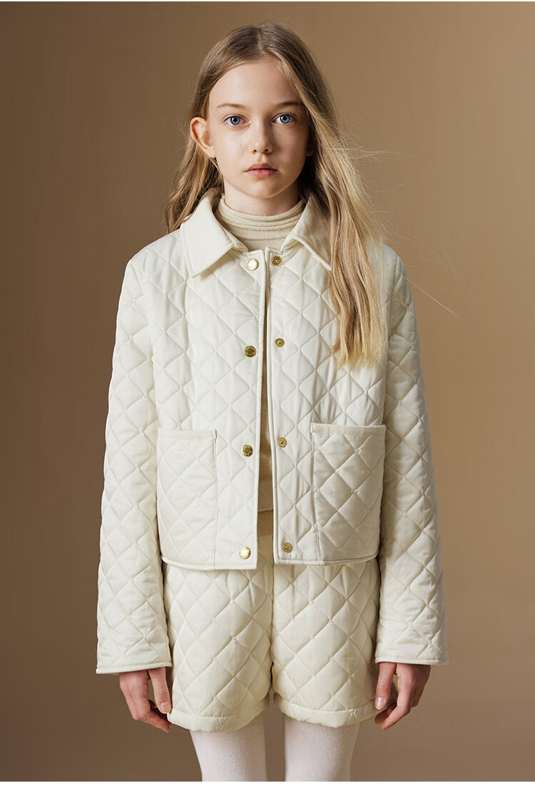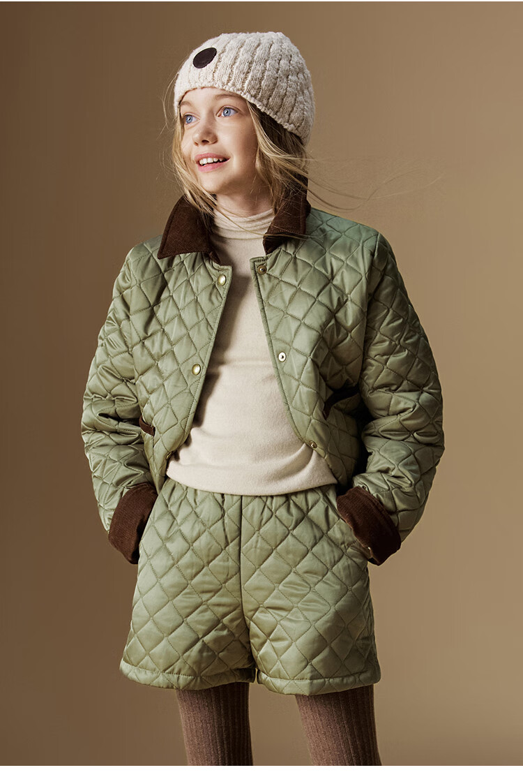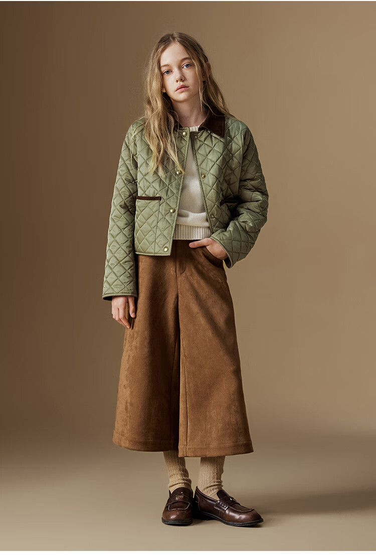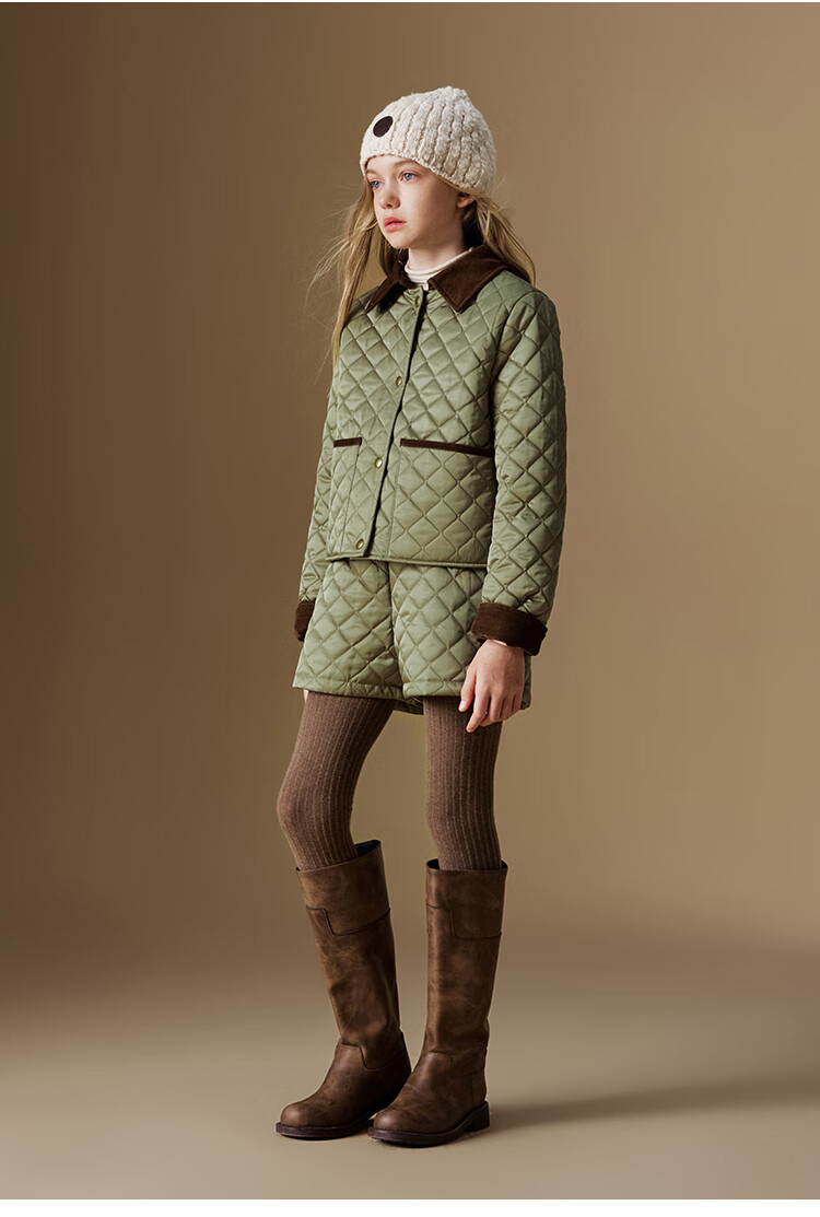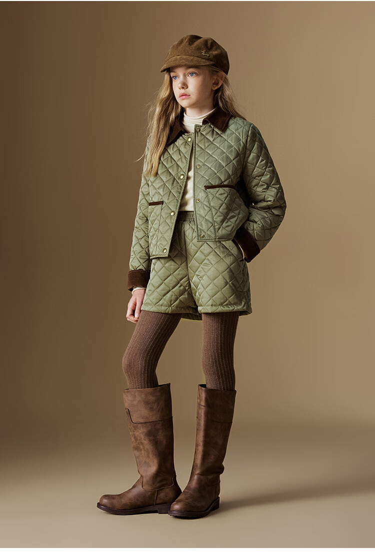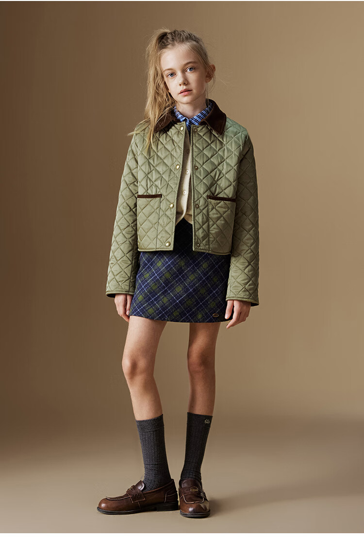 ELLE KIDS Retro Bath Style Girls Winter Cotton Jacket Contrast Color Lapel Front Shoulder Retro Fashionable Quilted Cotton Jacket